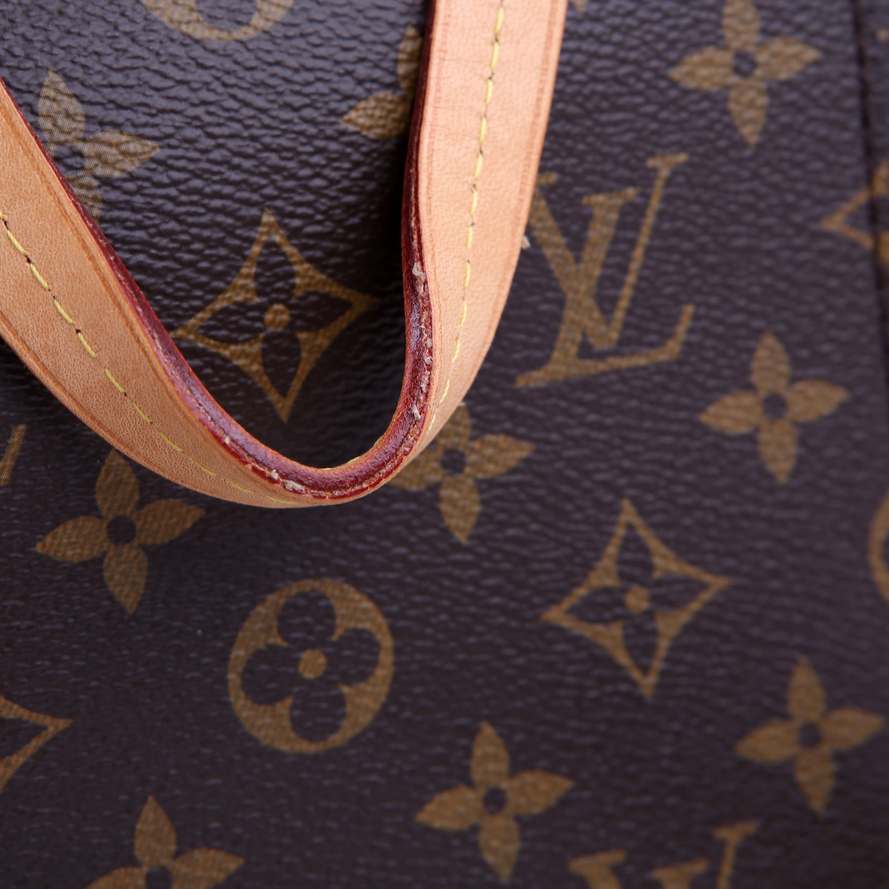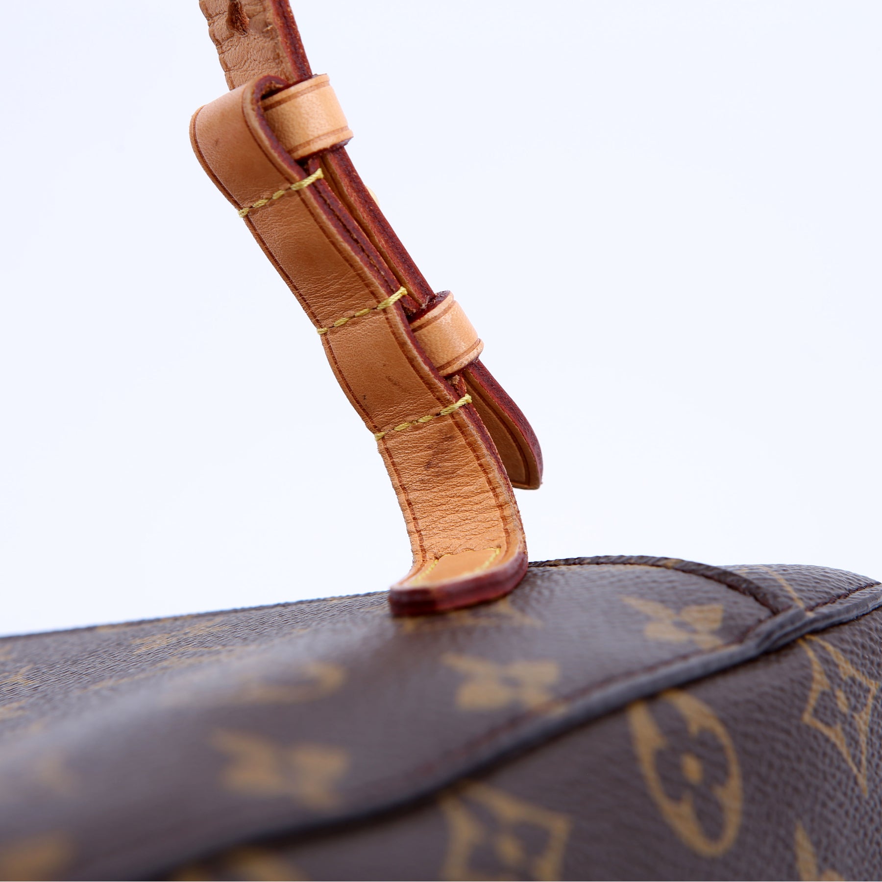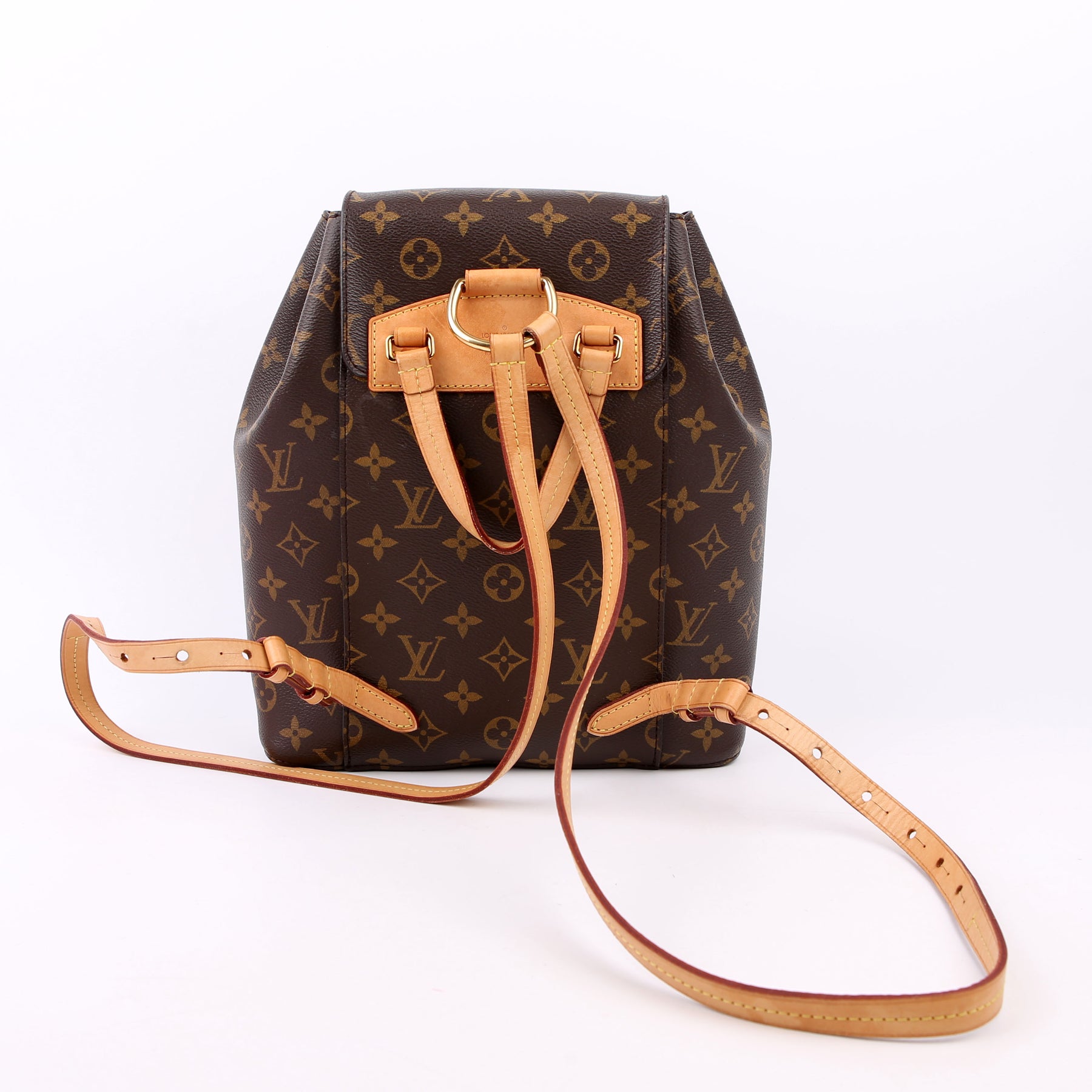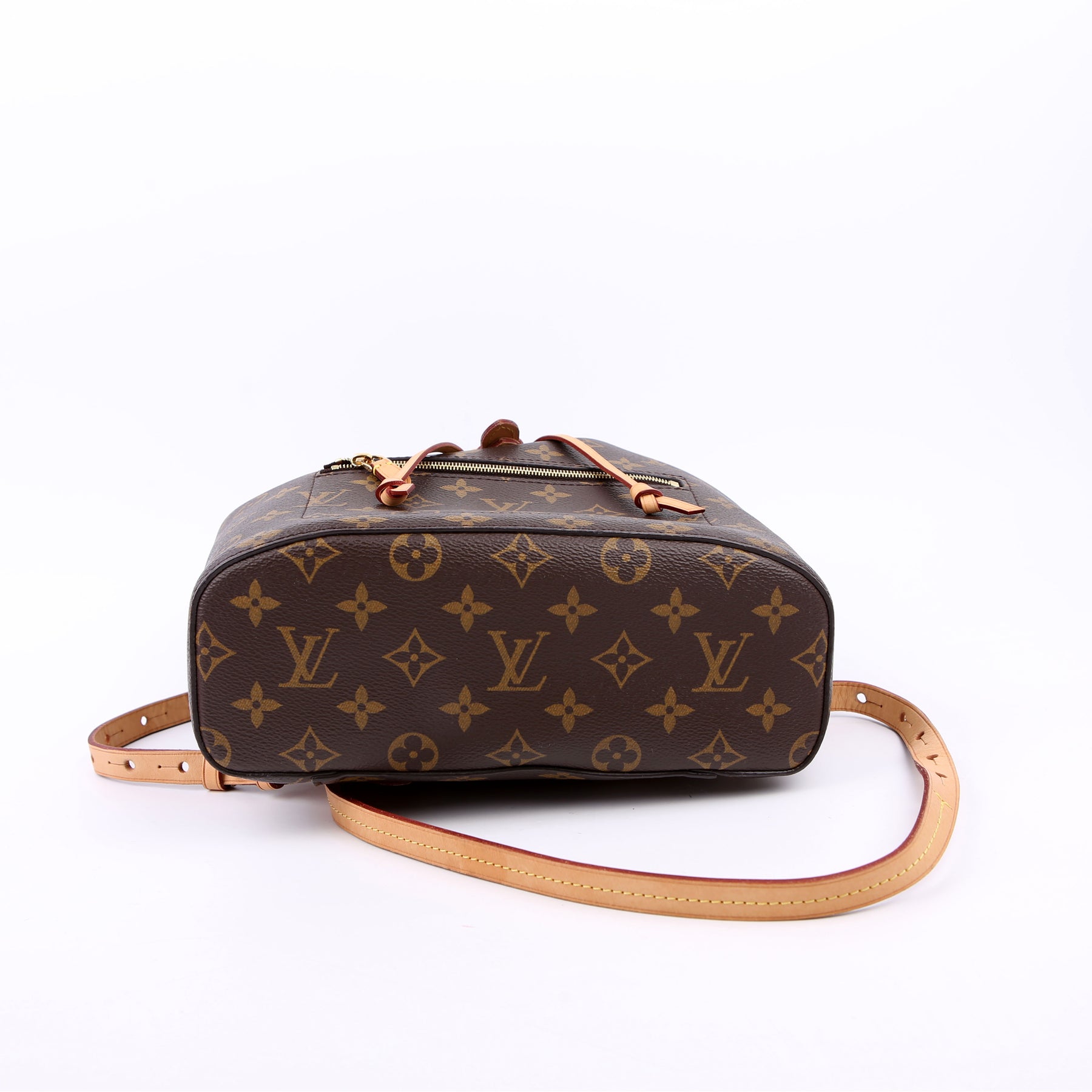 This pre-owned Louis Vuitton Montsouris NM is guaranteed 100% authentic. The exterior is in the classic Louis Vuitton Monogram coated canvas.