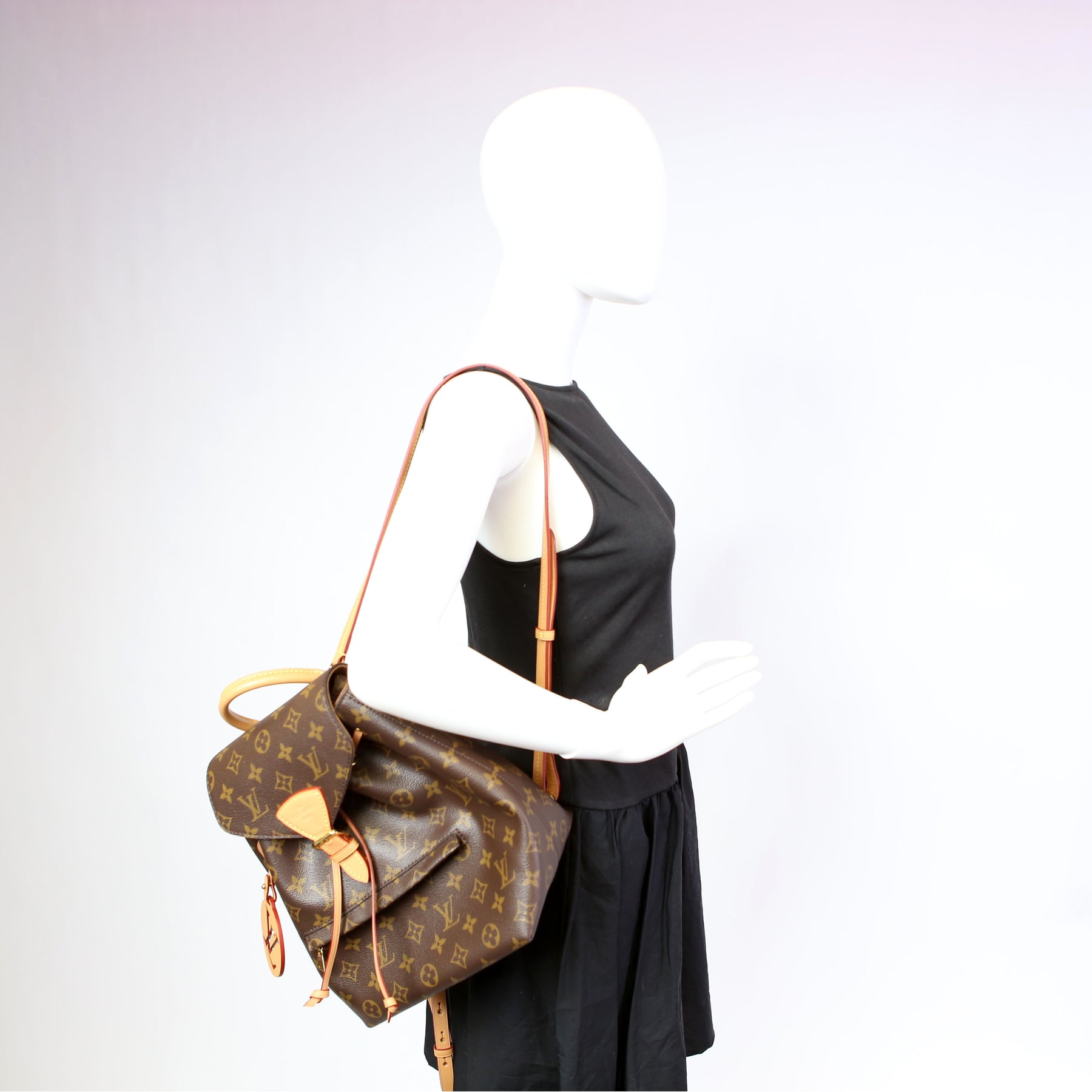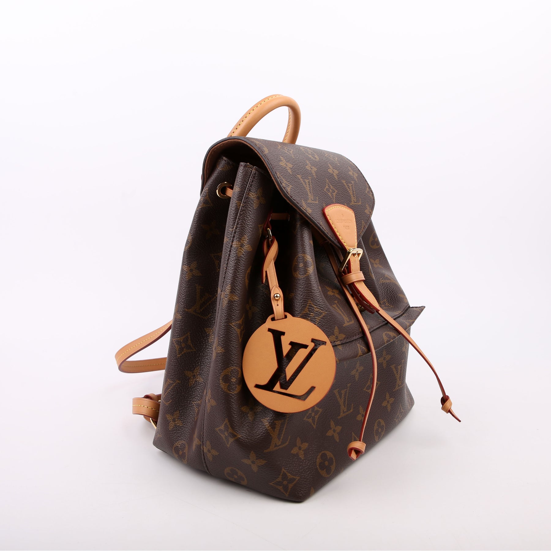 This pre-owned Louis Vuitton Montsouris PM NM is guaranteed 100% authentic. The exterior is in the classic Louis Vuitton Monogram coated canvas.