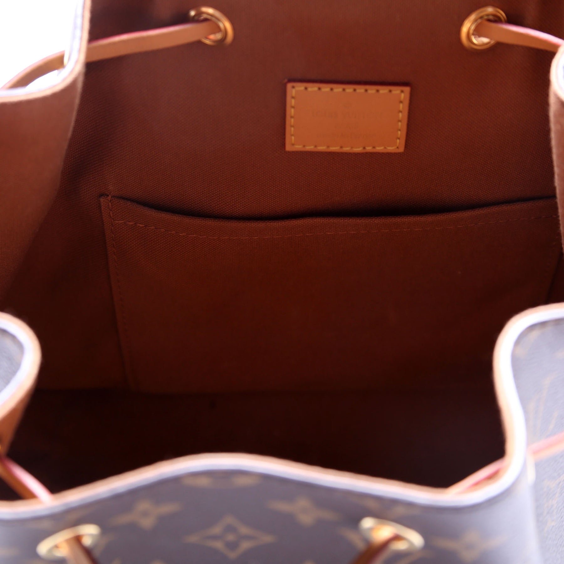 This pre-owned Louis Vuitton Montsouris NM PM is guaranteed 100% authentic. The exterior is in the classic Louis Vuitton Monogram coated canvas.