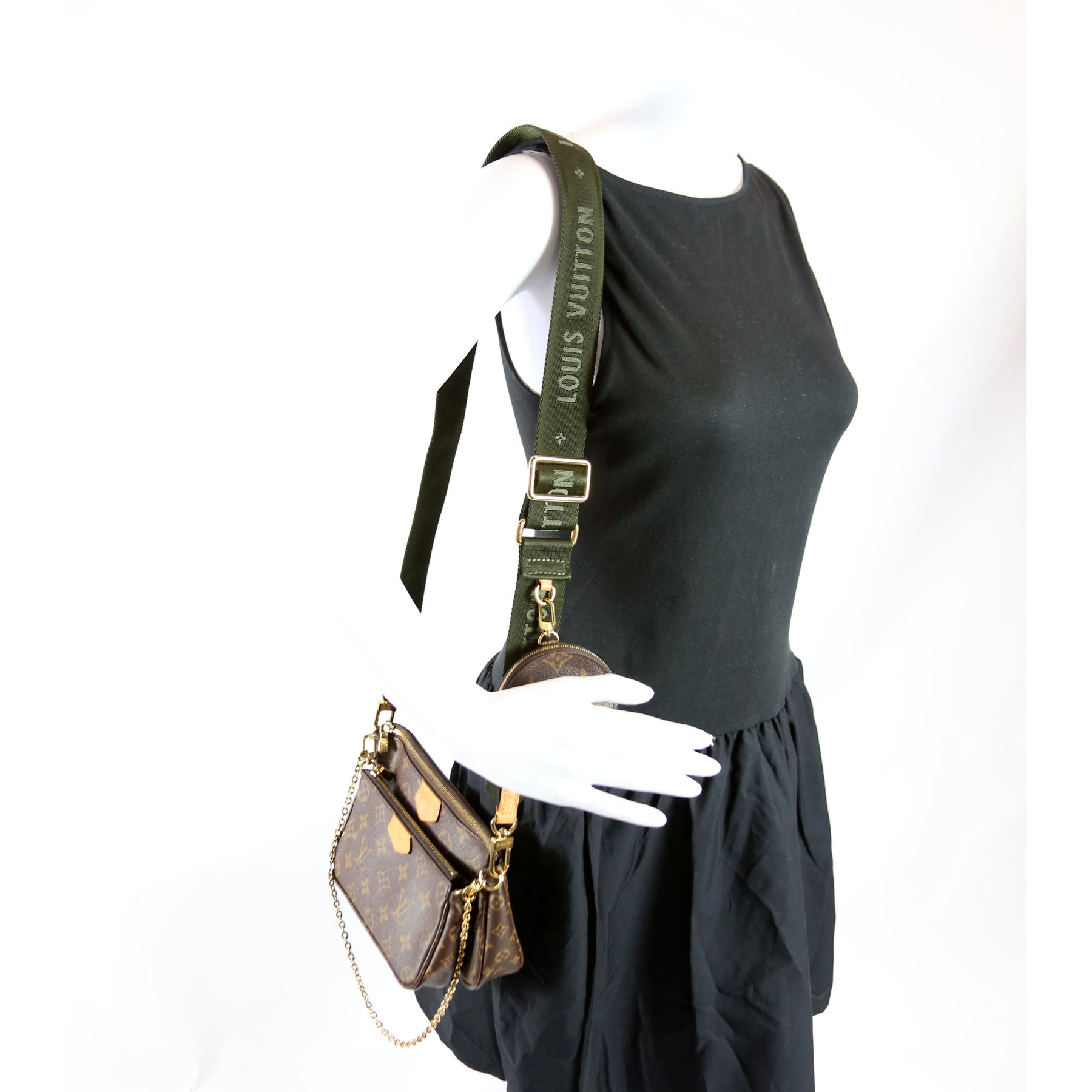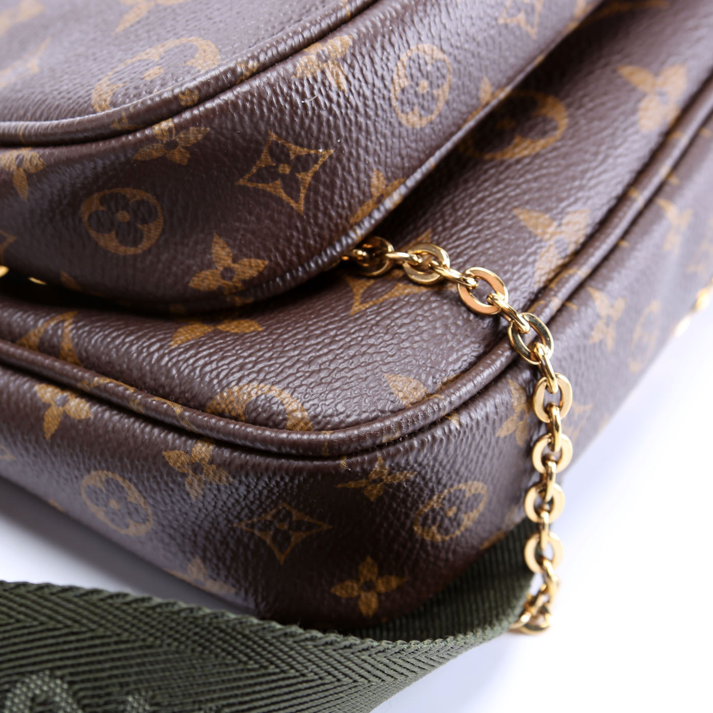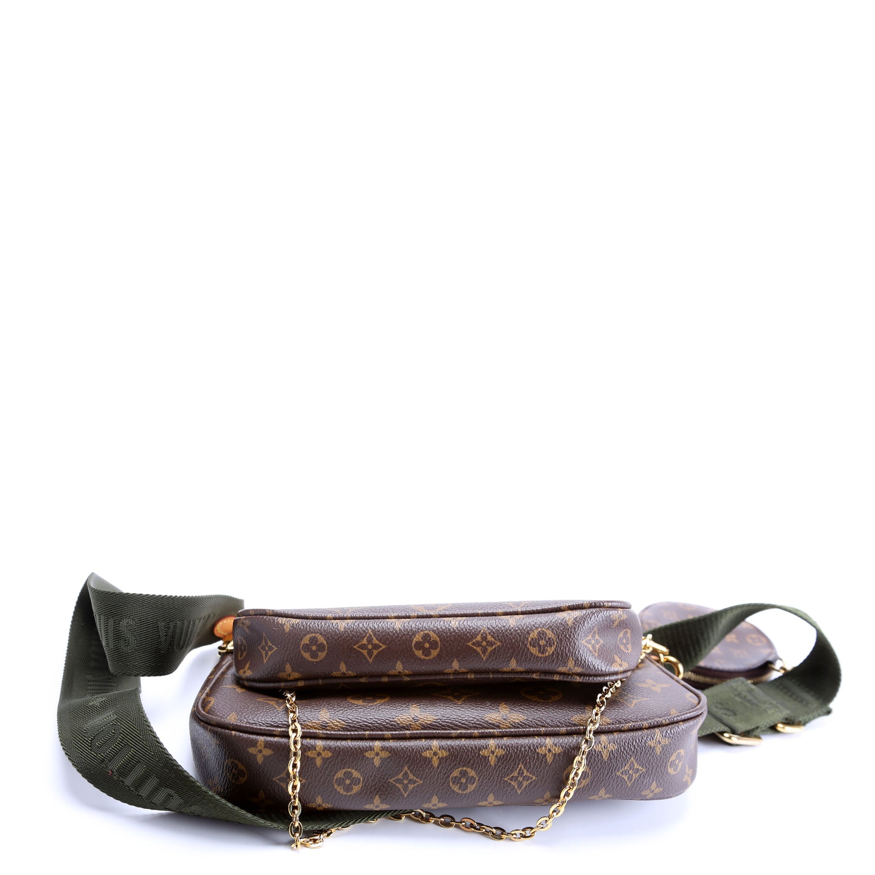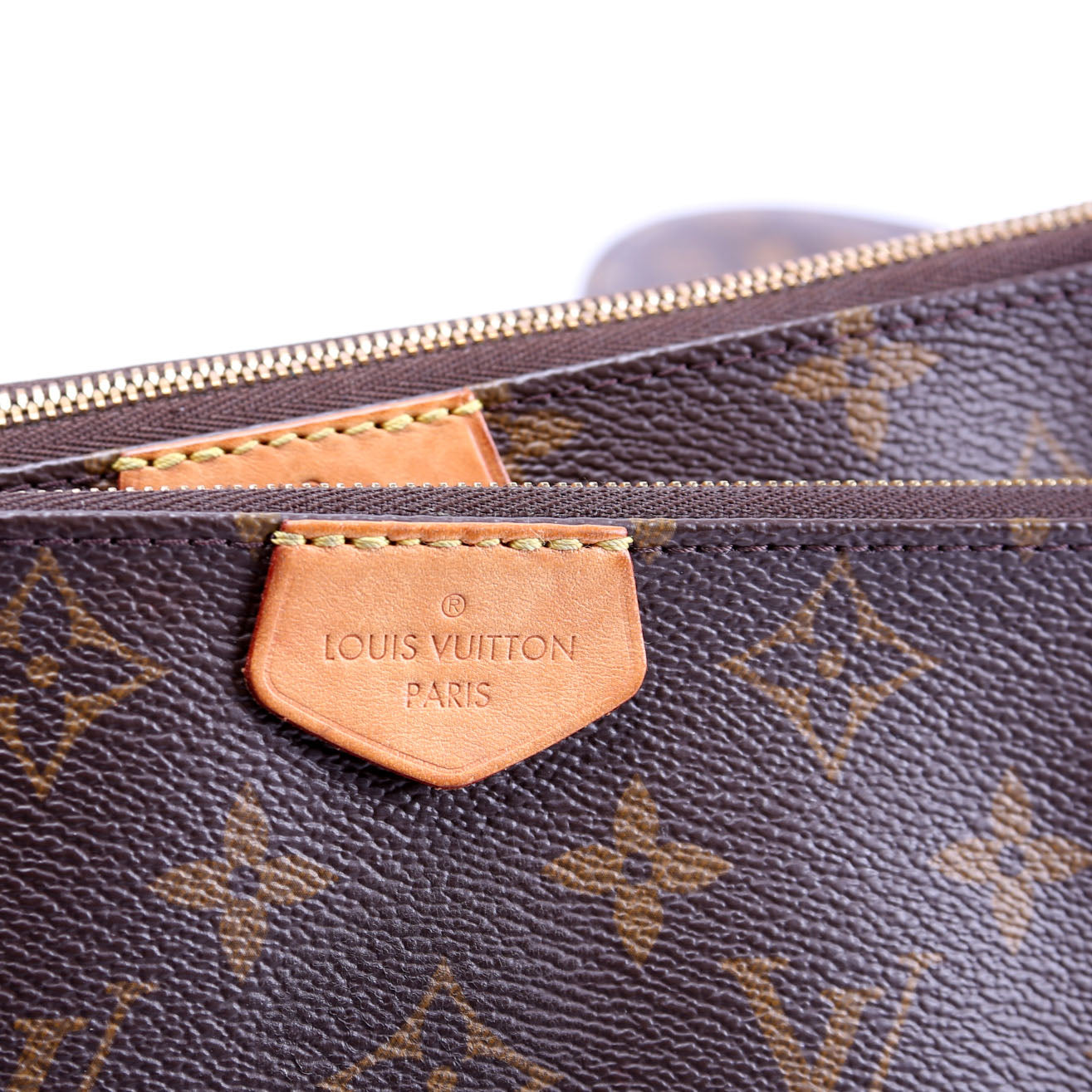 This pre-owned Louis Vuitton Multi Pochette is guaranteed 100% authentic. The exterior is in the classic Louis Vuitton Monogram coated canvas.