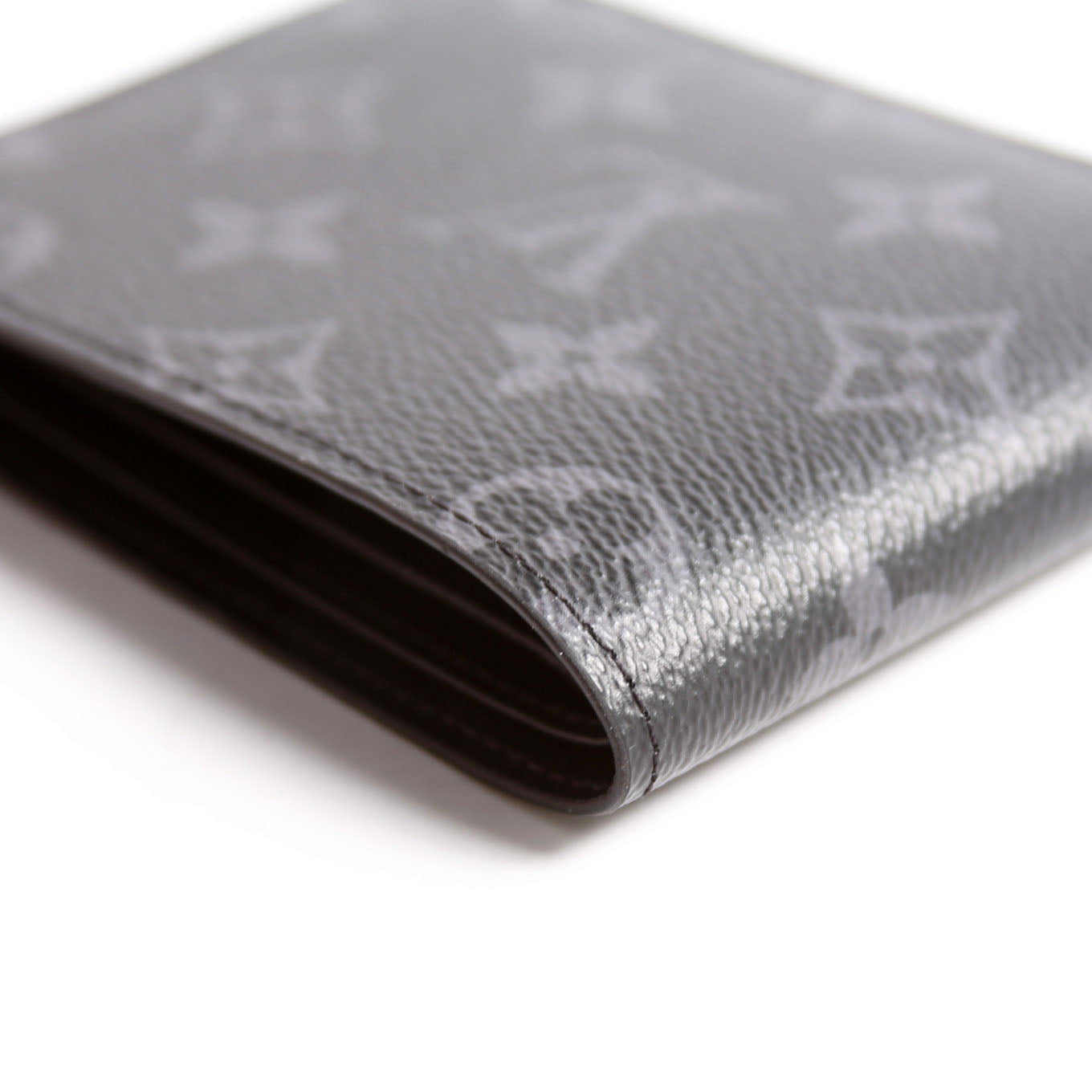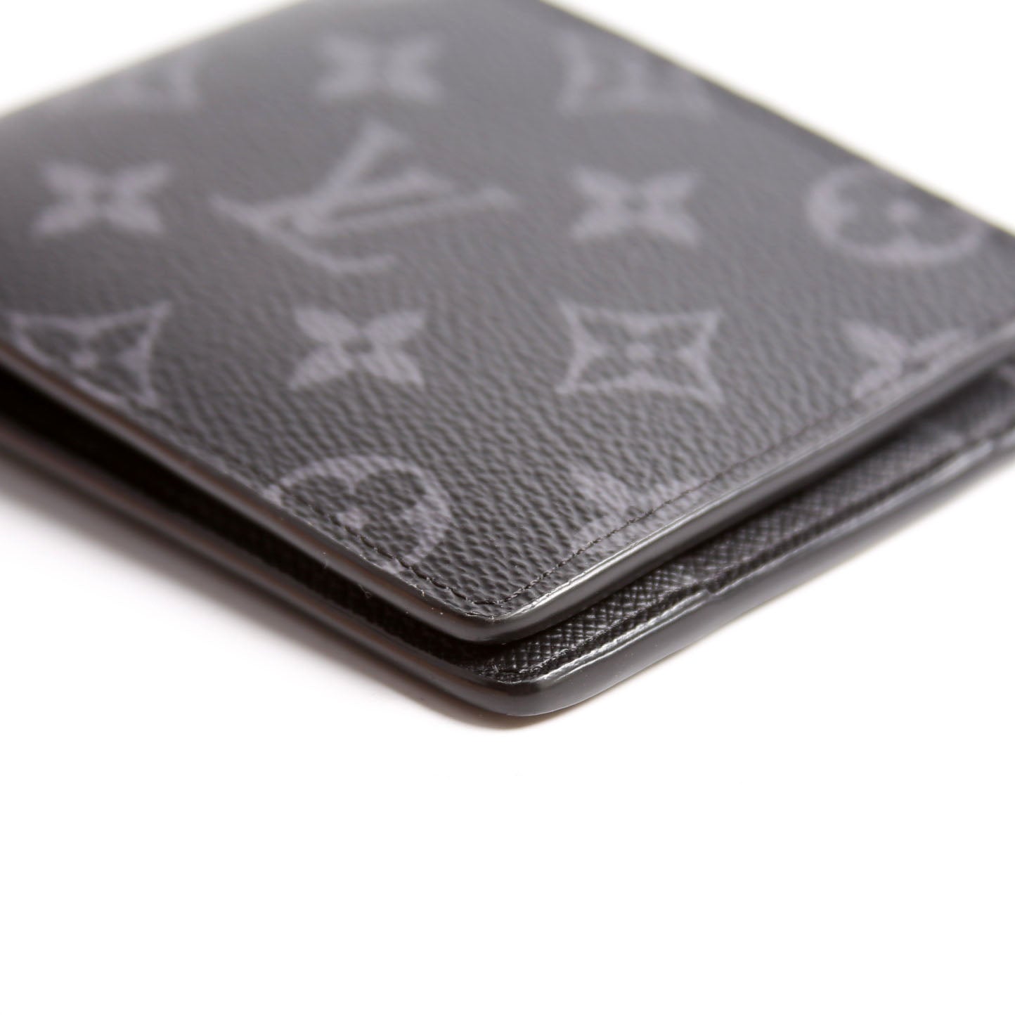 This pre-owned Louis Vuitton Multiple Wallet is guaranteed 100% authentic. The exterior is in the classic Eclipse Monogram coated canvas.