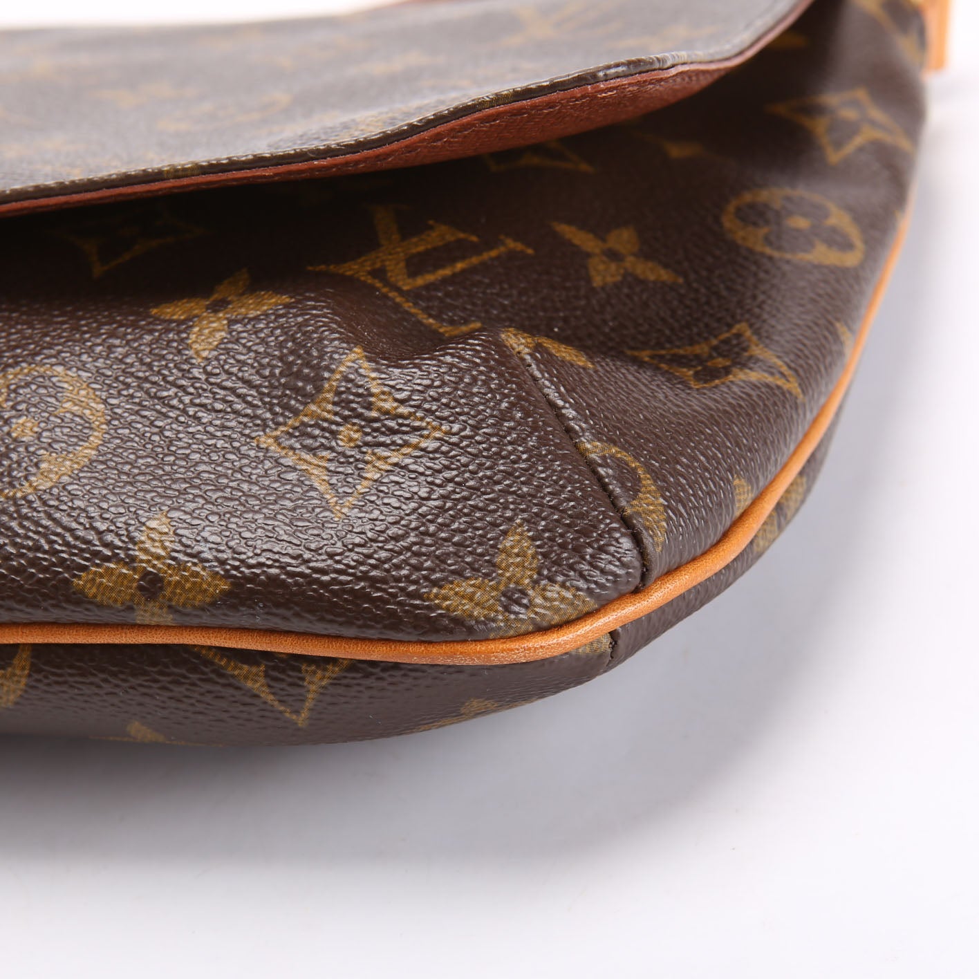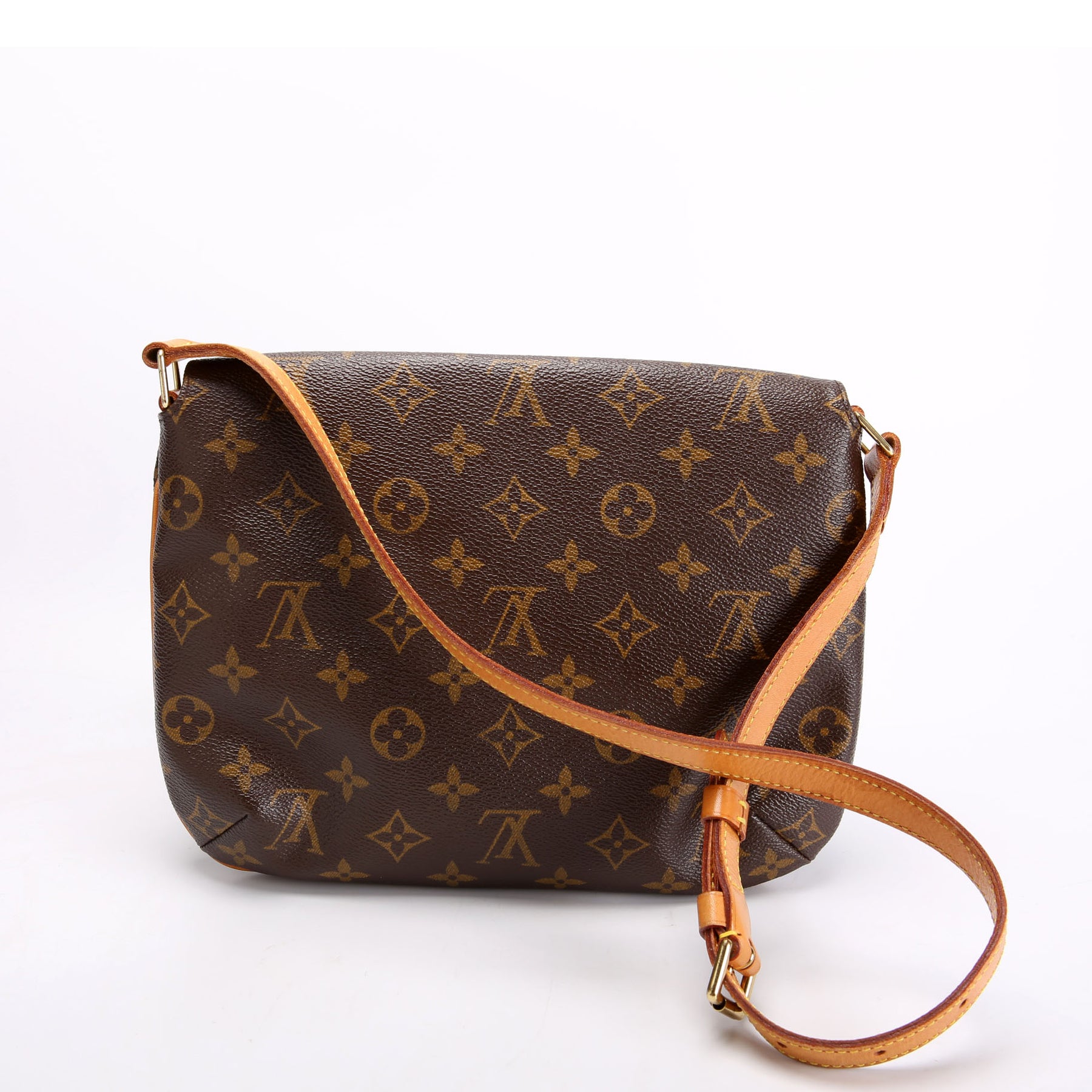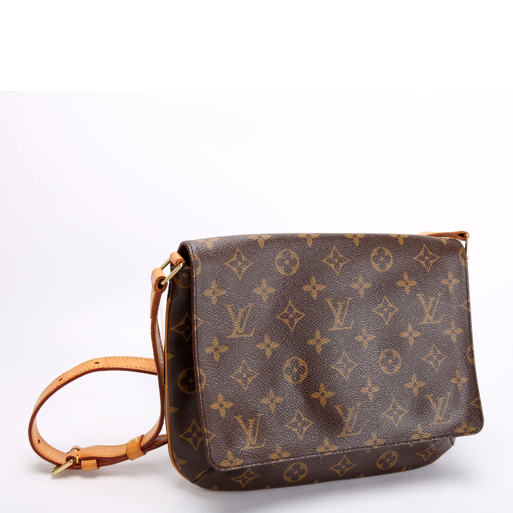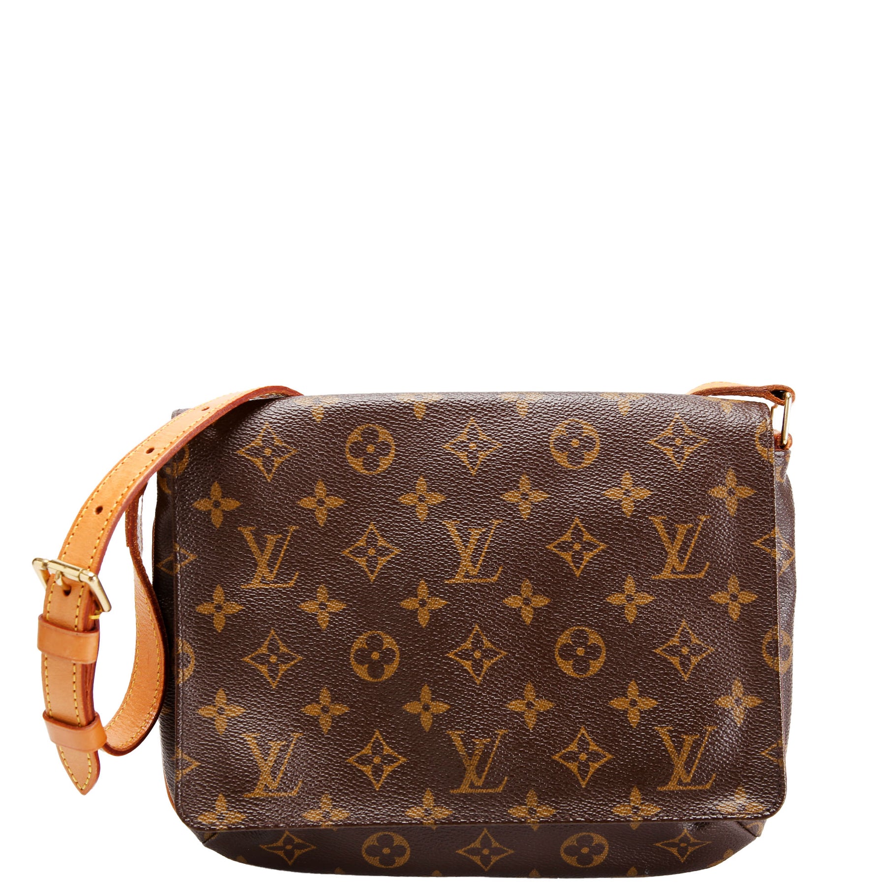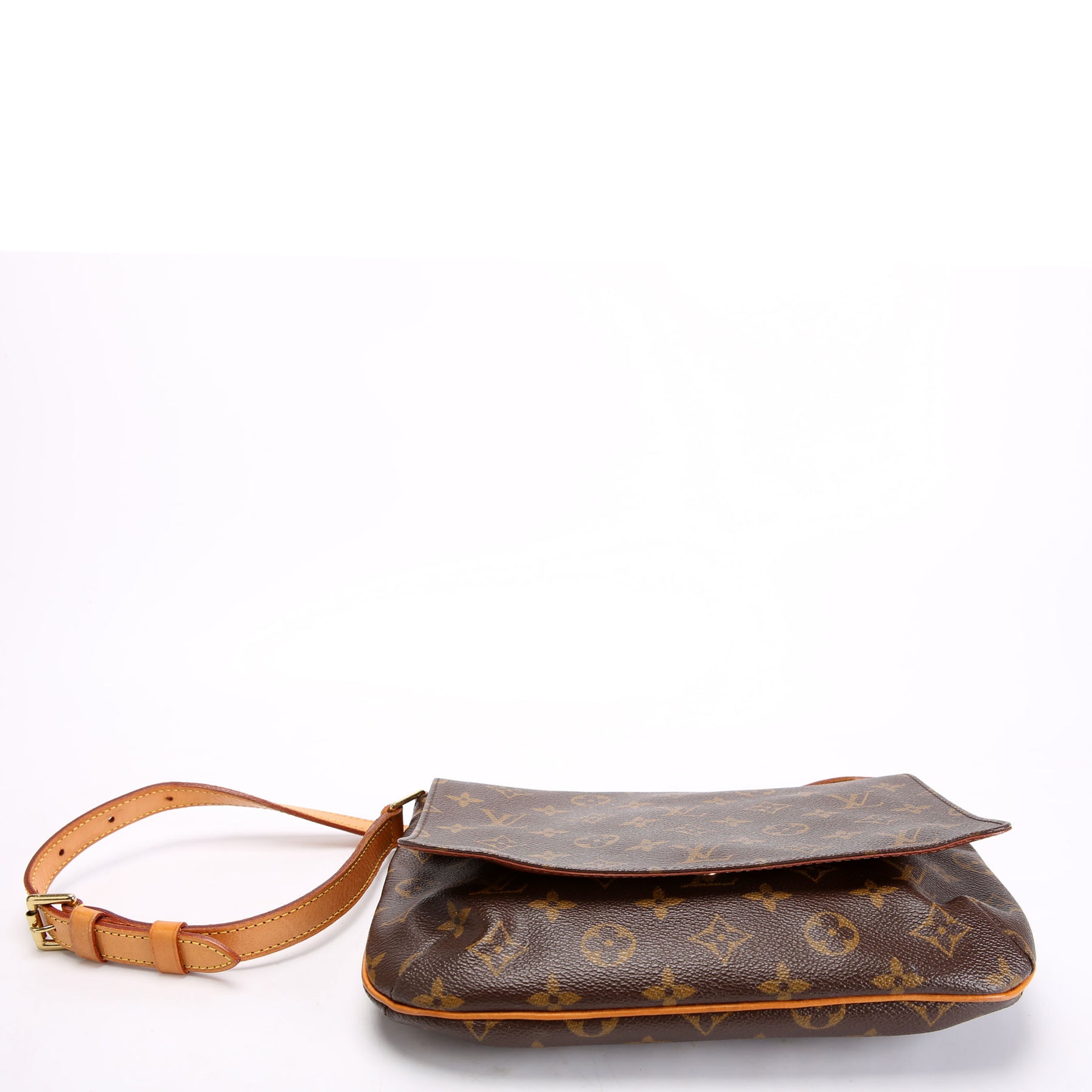 This pre-owned Louis Vuitton Musette Tango Short is guaranteed 100% authentic. The exterior is in the classic Louis Vuitton Monogram coated canvas.
