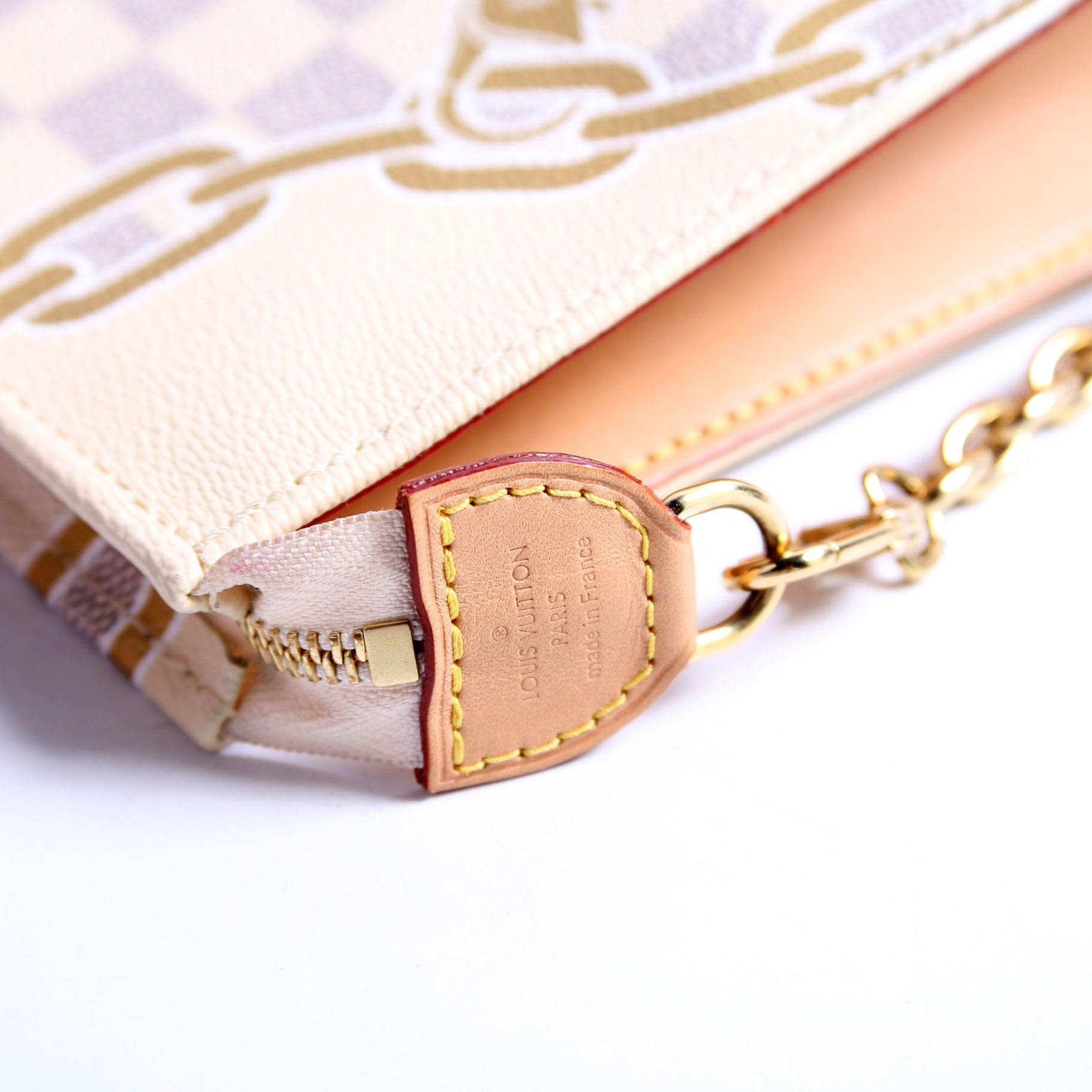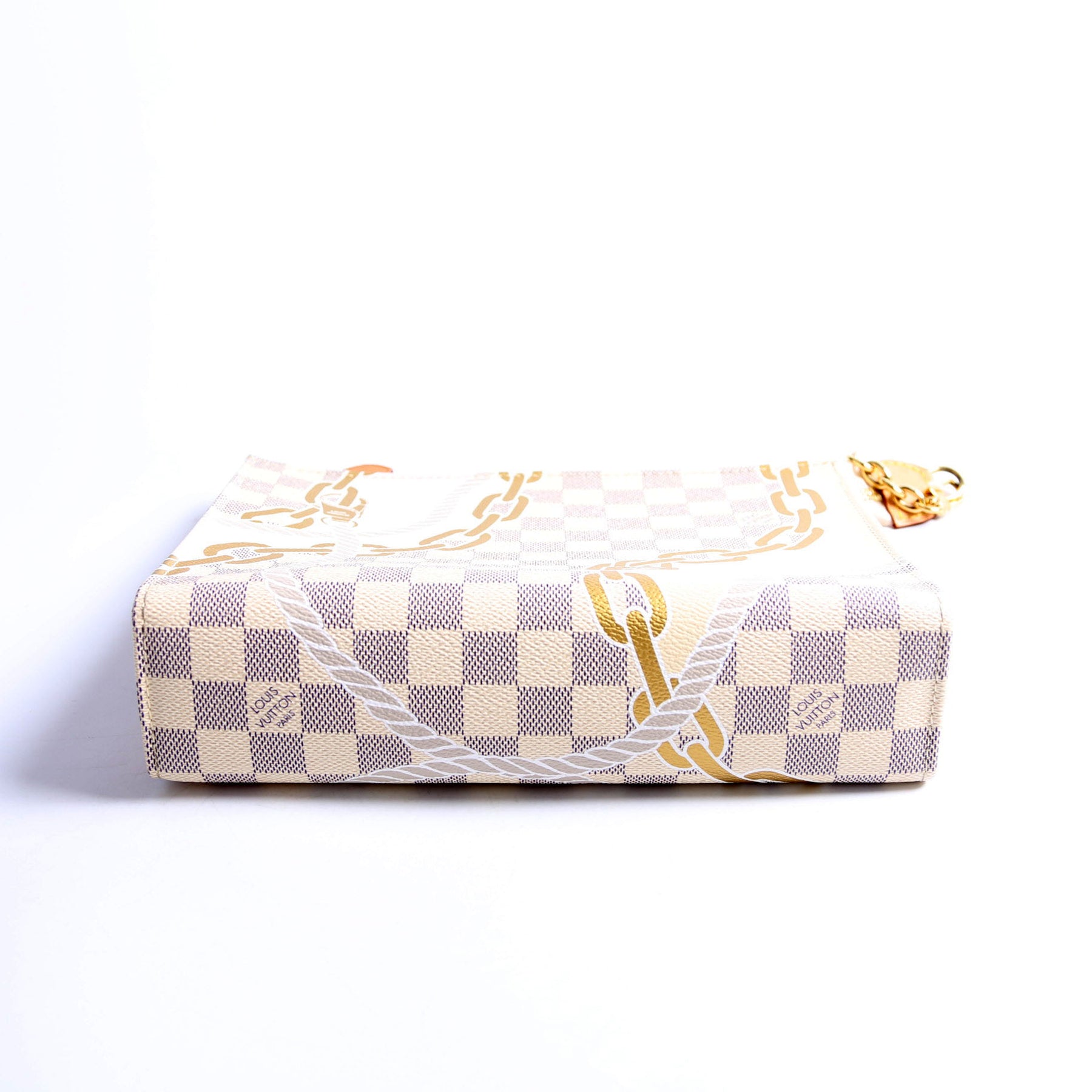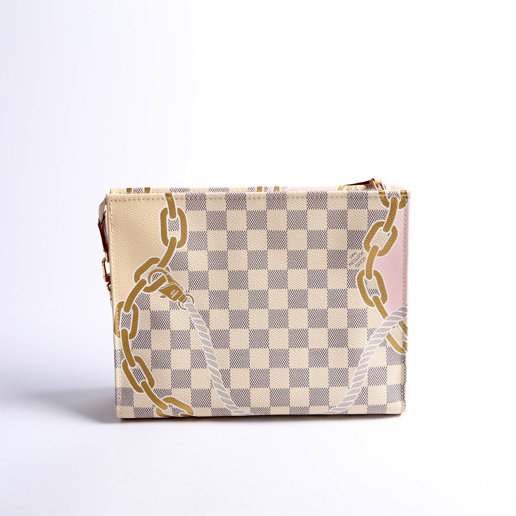 This pre-owned Louis Vuitton Nautical Toiletry Pouch is guaranteed 100% authentic. The exterior is in the classic Louis Vuitton Azur Coated Canvas limited edition Monogram.