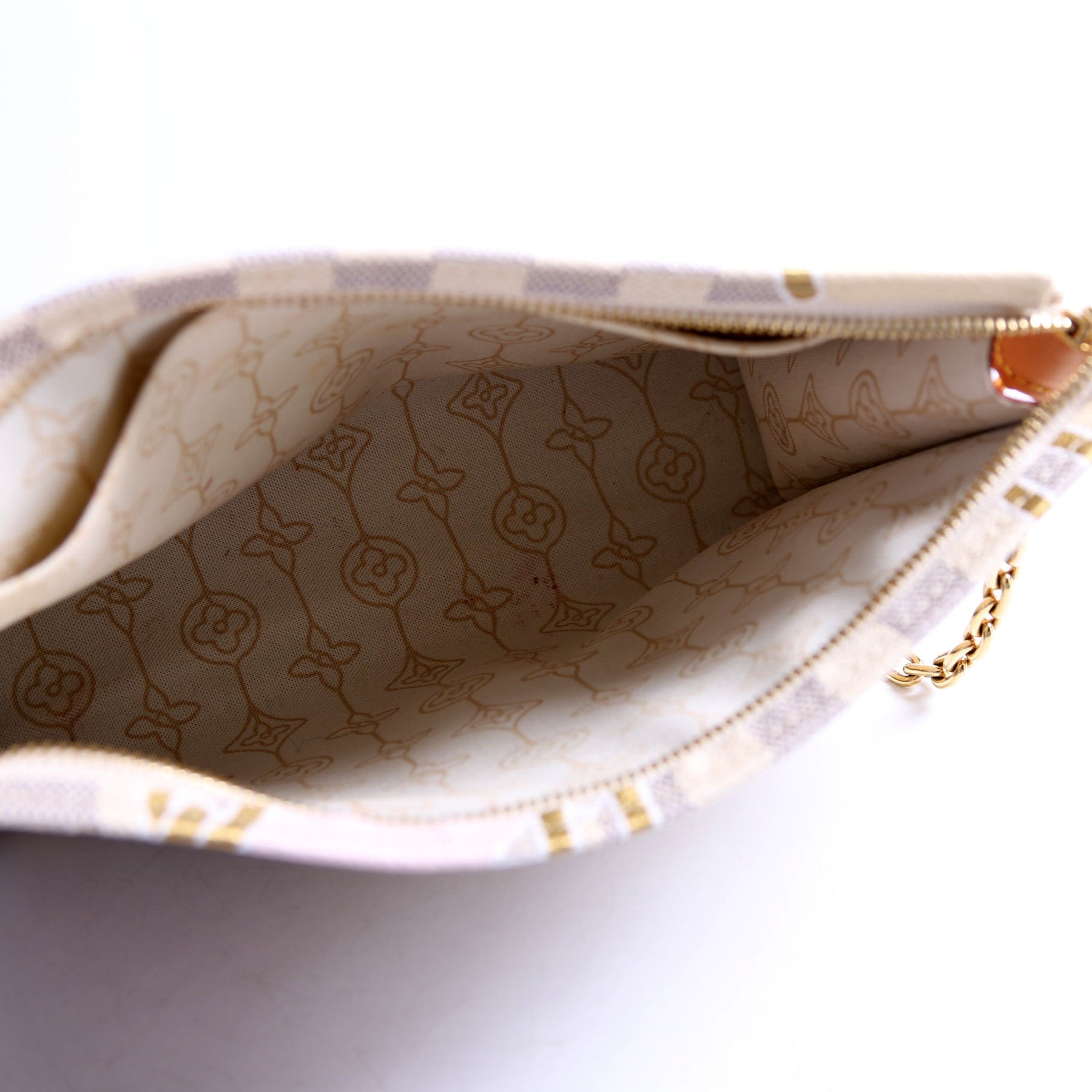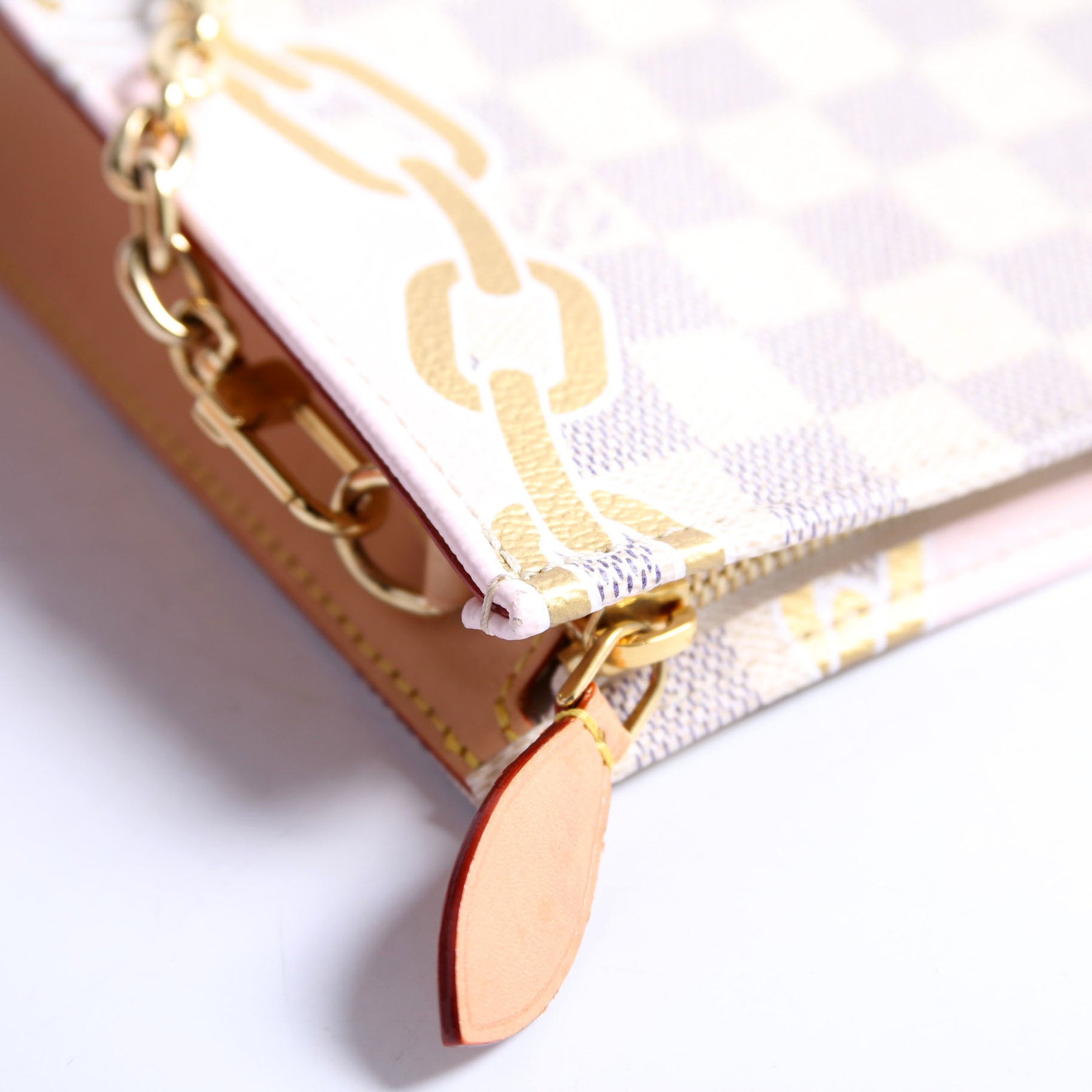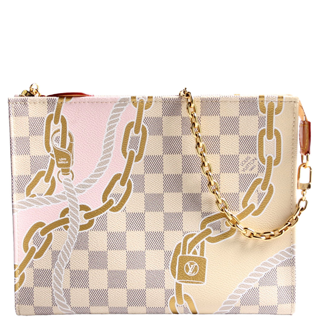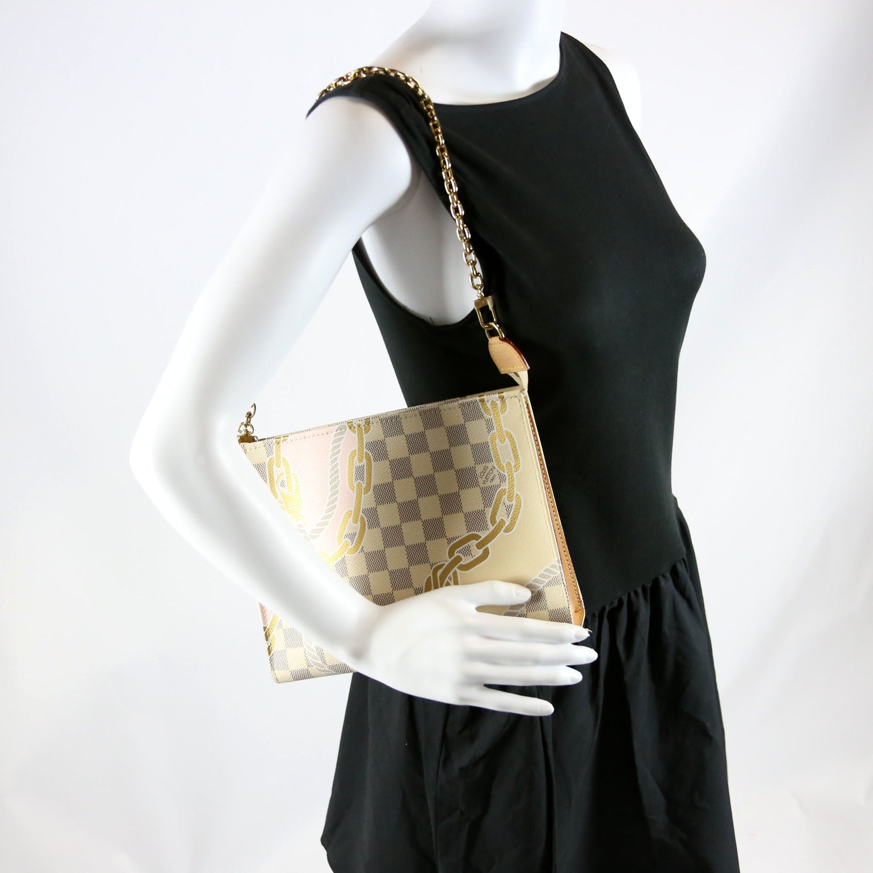 This pre-owned Louis Vuitton Nautical Toiletry Pouch is guaranteed 100% authentic. The exterior is in the classic Louis Vuitton Azur Coated Canvas limited edition Monogram.
