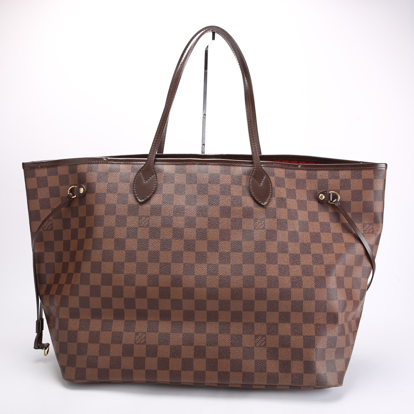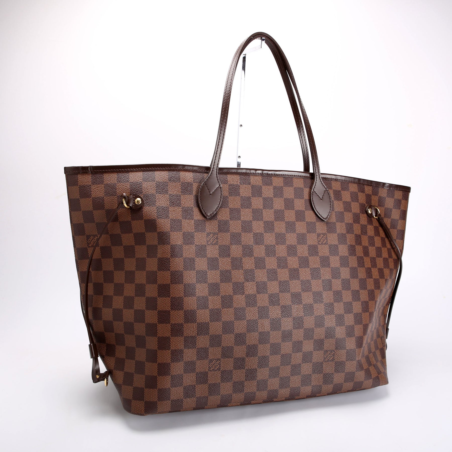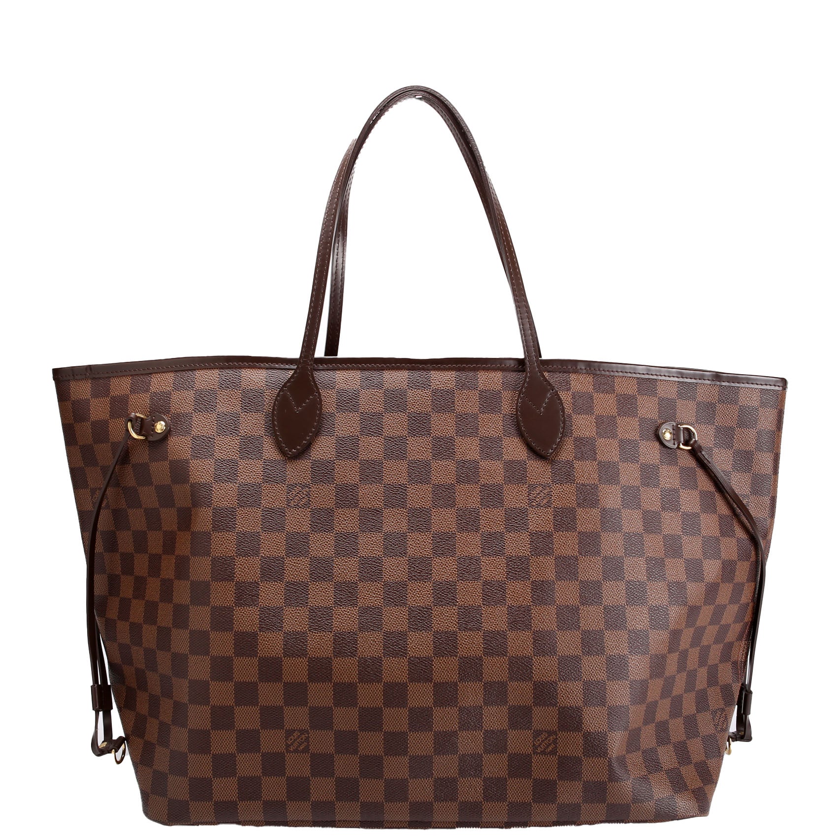 This pre-owned Louis Vuitton Neverfull GM Ebene is guaranteed 100% authentic. The exterior is in the classic Louis Vuitton Ebene coated canvas.