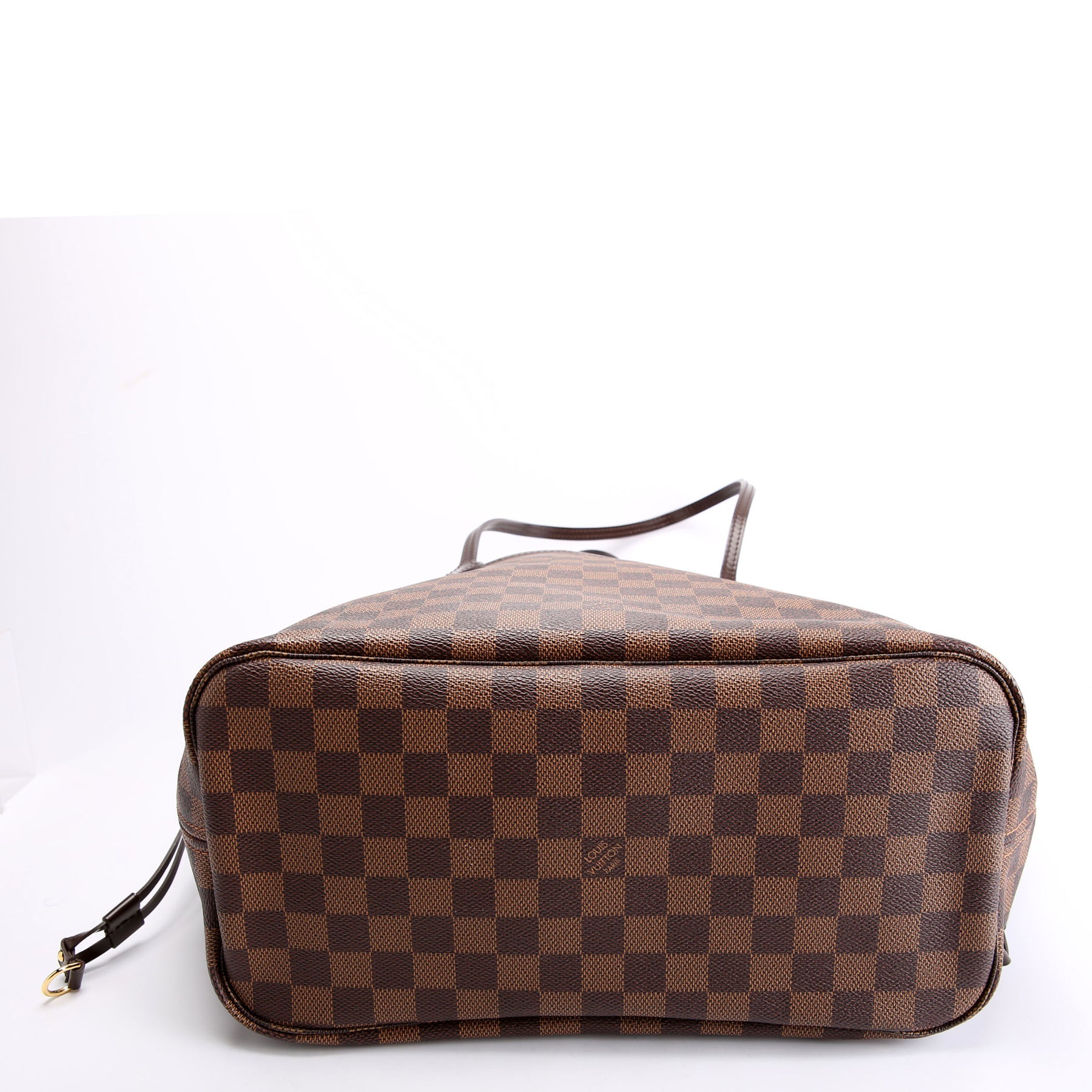 This pre-owned Louis Vuitton Neverfull MM is guaranteed 100% authentic. The exterior is in the classic Louis Vuitton Damier Ebene Coated Canvas