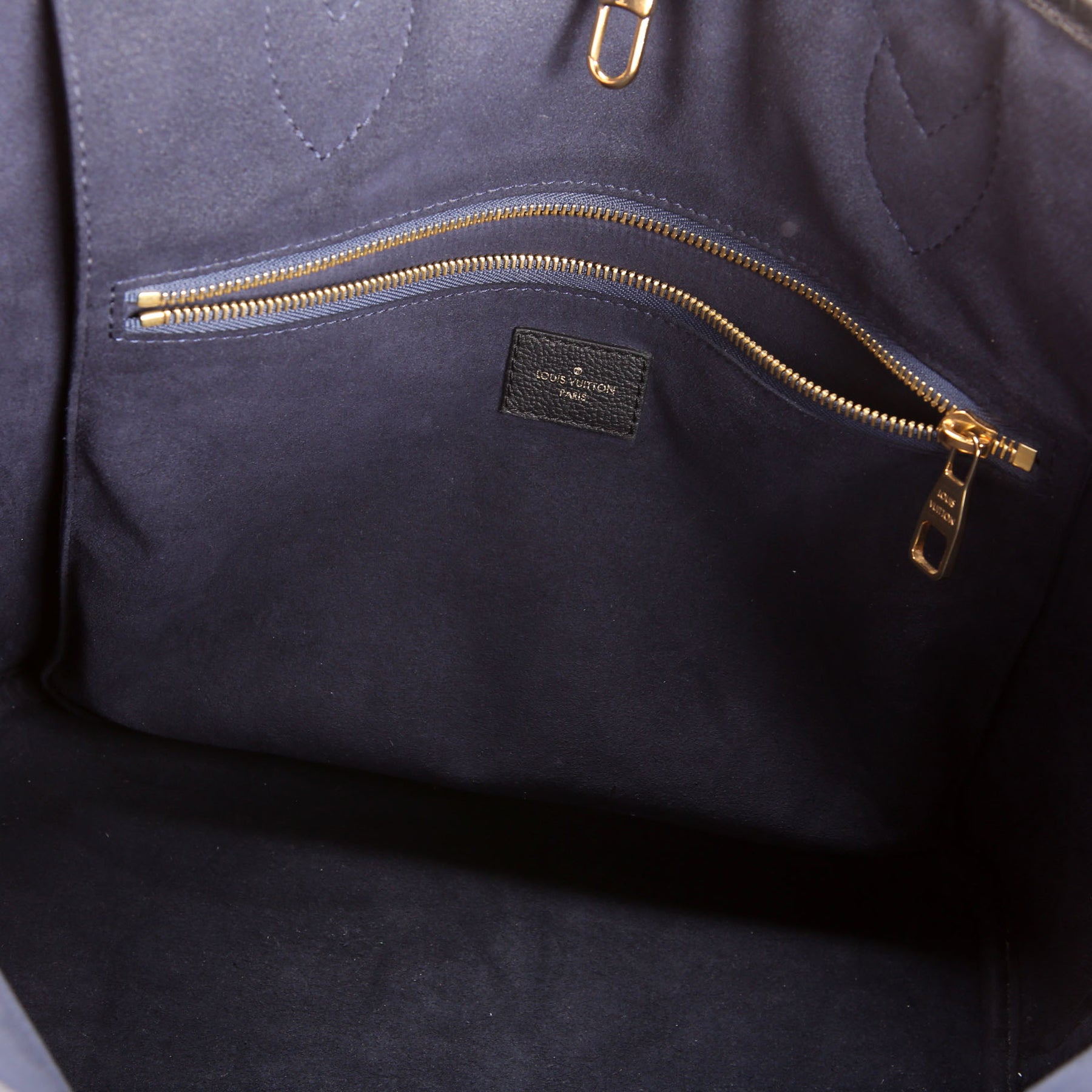 Interior: The interior has light wear and features one zip closure pocket.