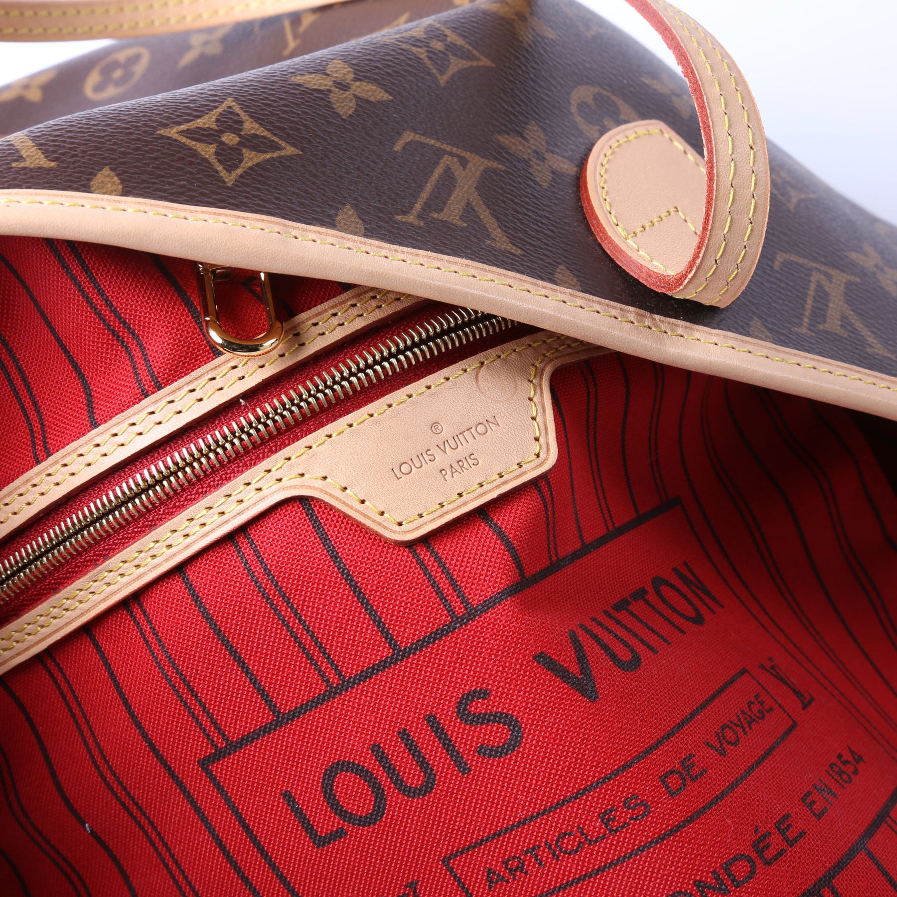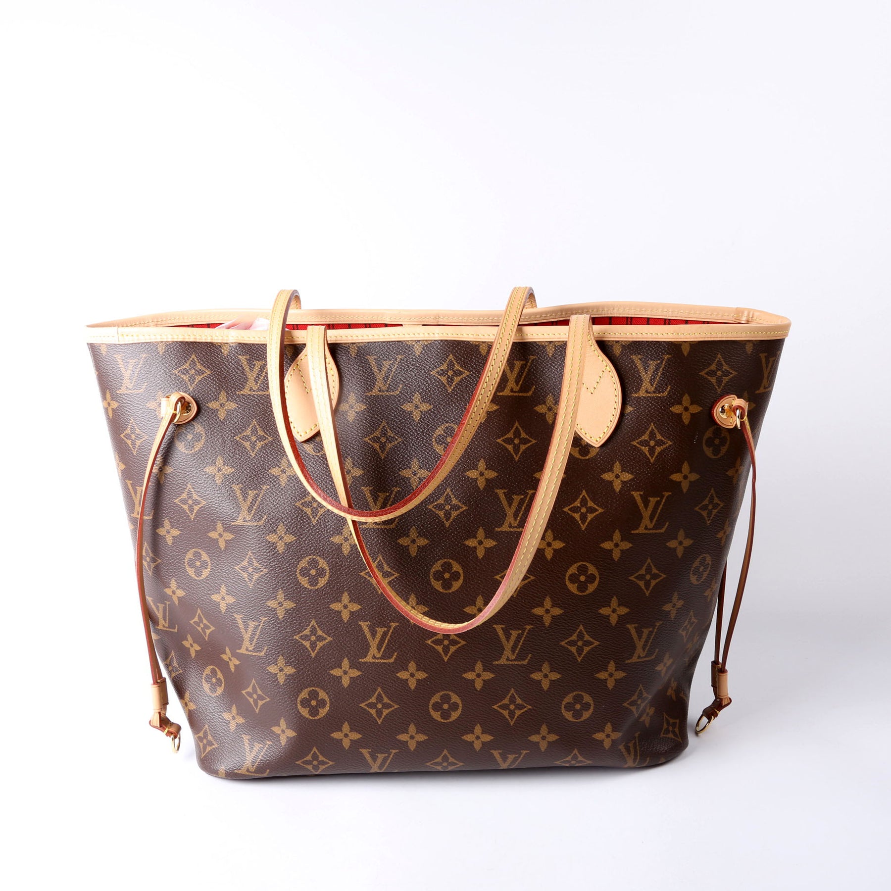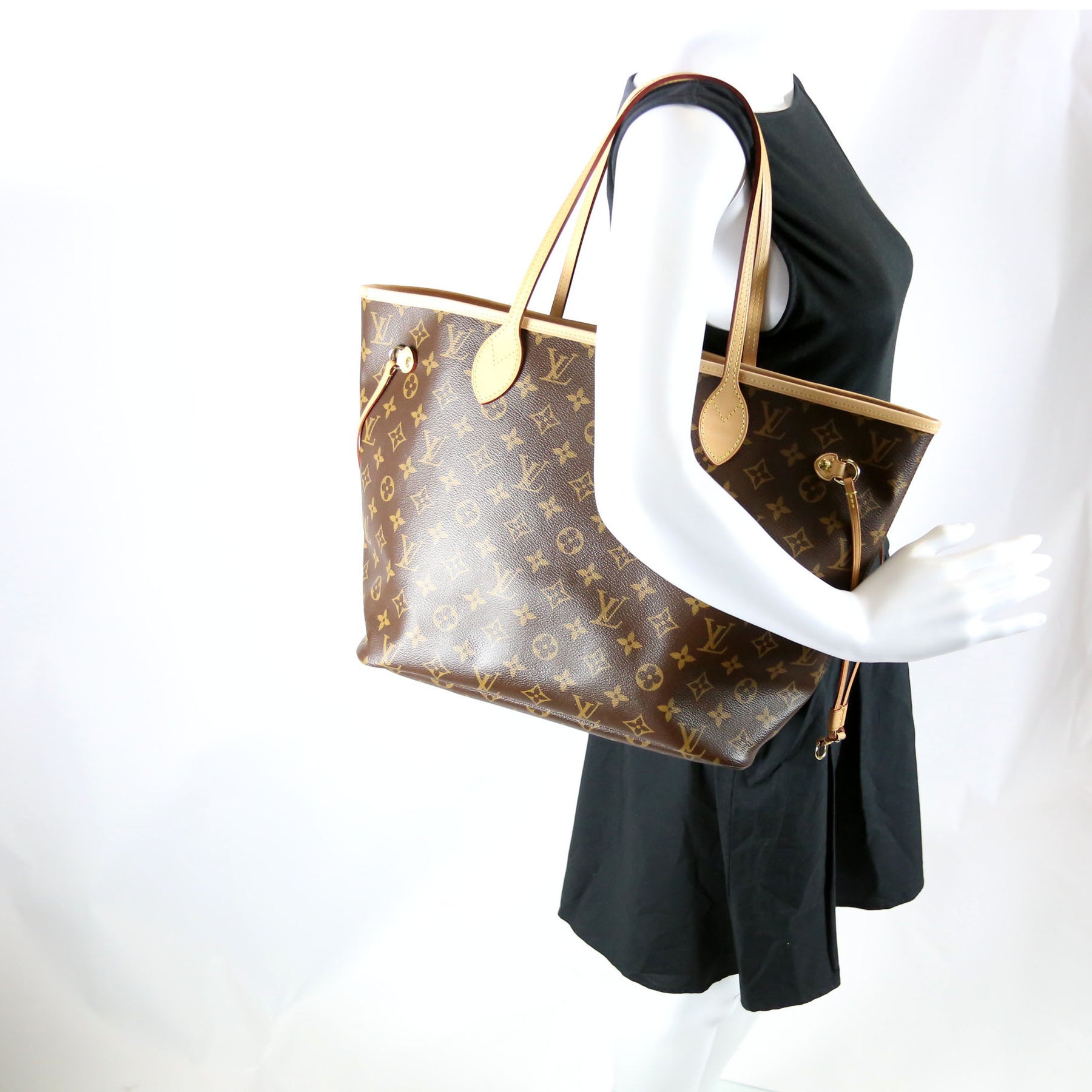 This pre-owned Louis Vuitton Neverfull MM is guaranteed 100% authentic. The exterior is in the classic Louis Vuitton Monogram coated canvas.