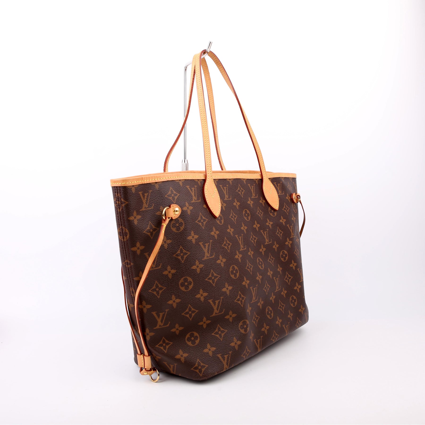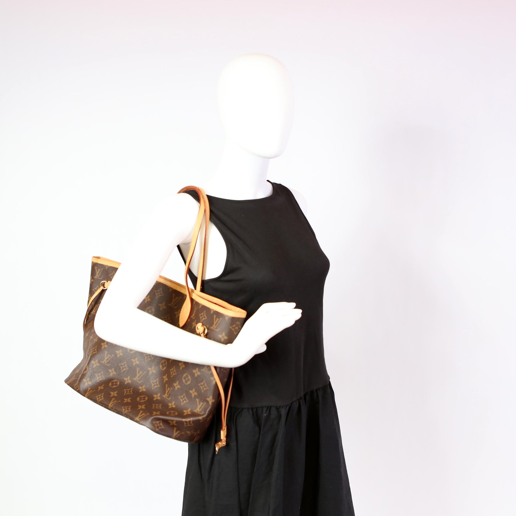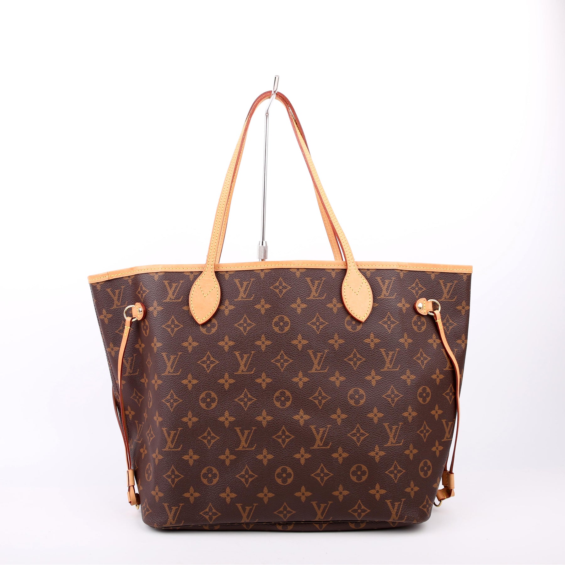 This pre-owned Louis Vuitton Neverfull MM is guaranteed 100% authentic. The exterior is in the classic Louis Vuitton Monogram coated canvas.
