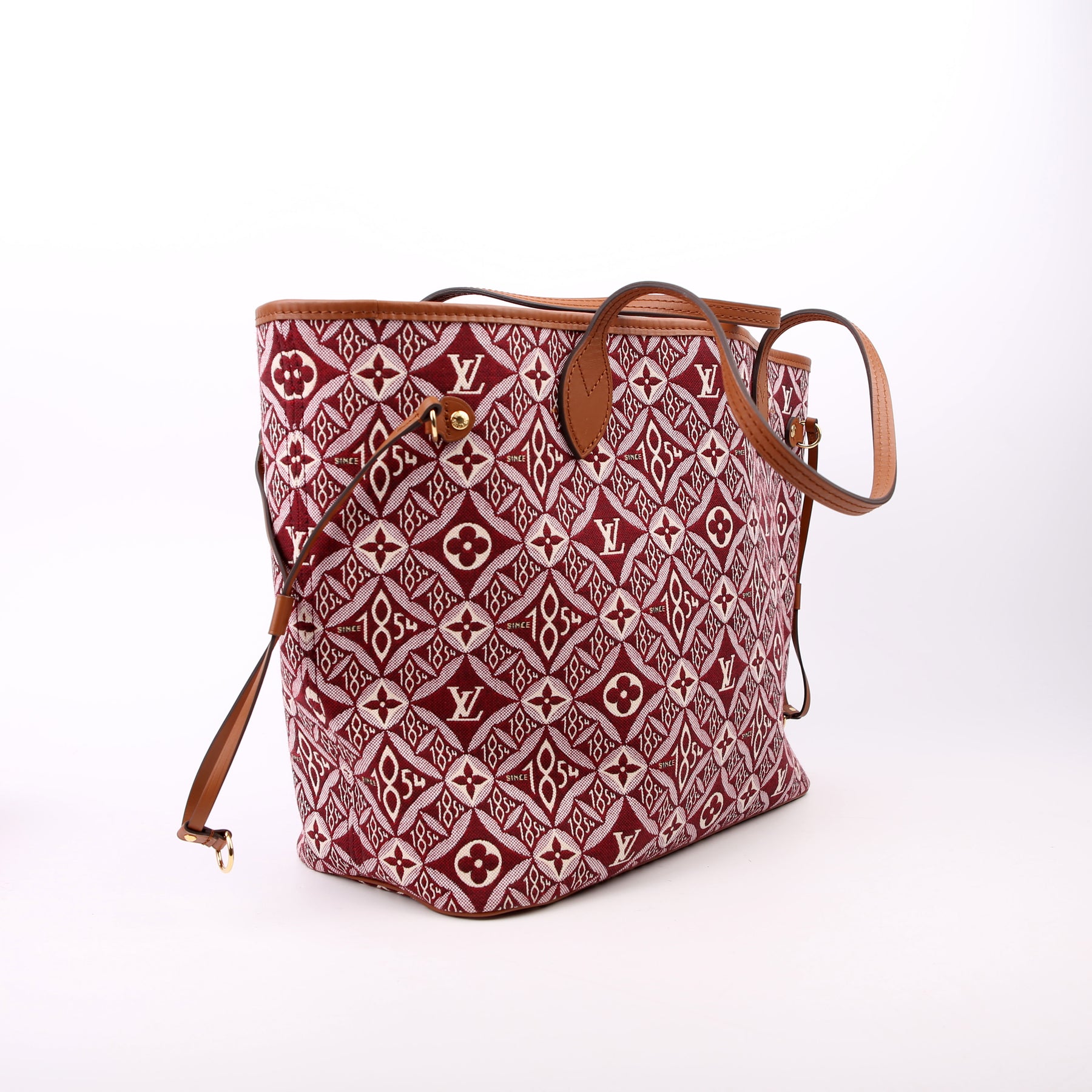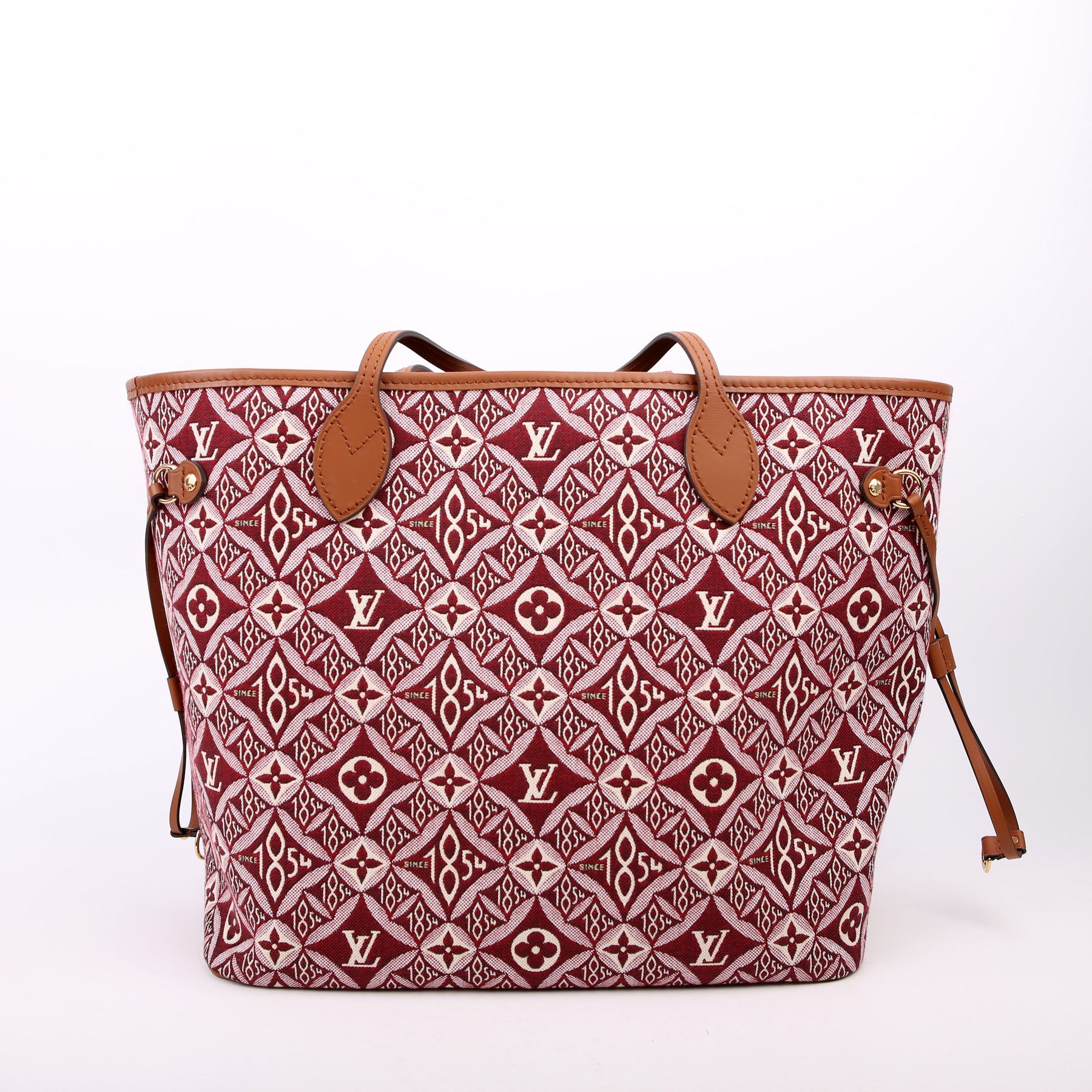 This pre-owned Louis Vuitton Neverfull MM is guaranteed 100% authentic. The exterior is in the classic Louis Vuitton Since 1854 canvas.
