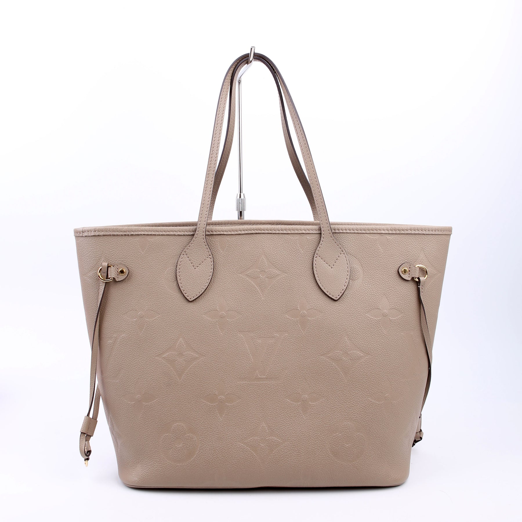 This pre-owned Louis Vuitton Neverfull With Wallet MM is guaranteed 100% authentic. The exterior is in the classic Louis Vuitton Empreinte leather.