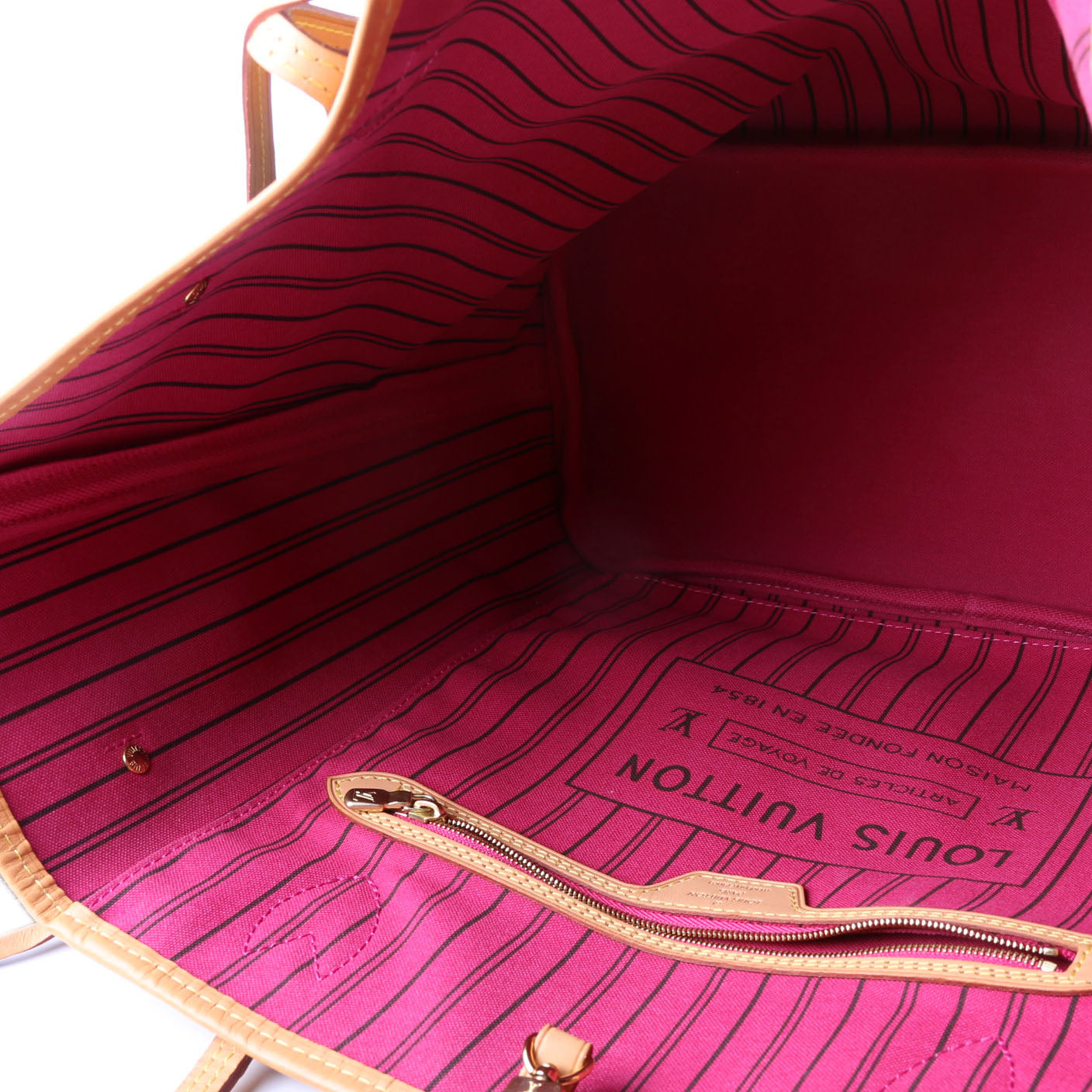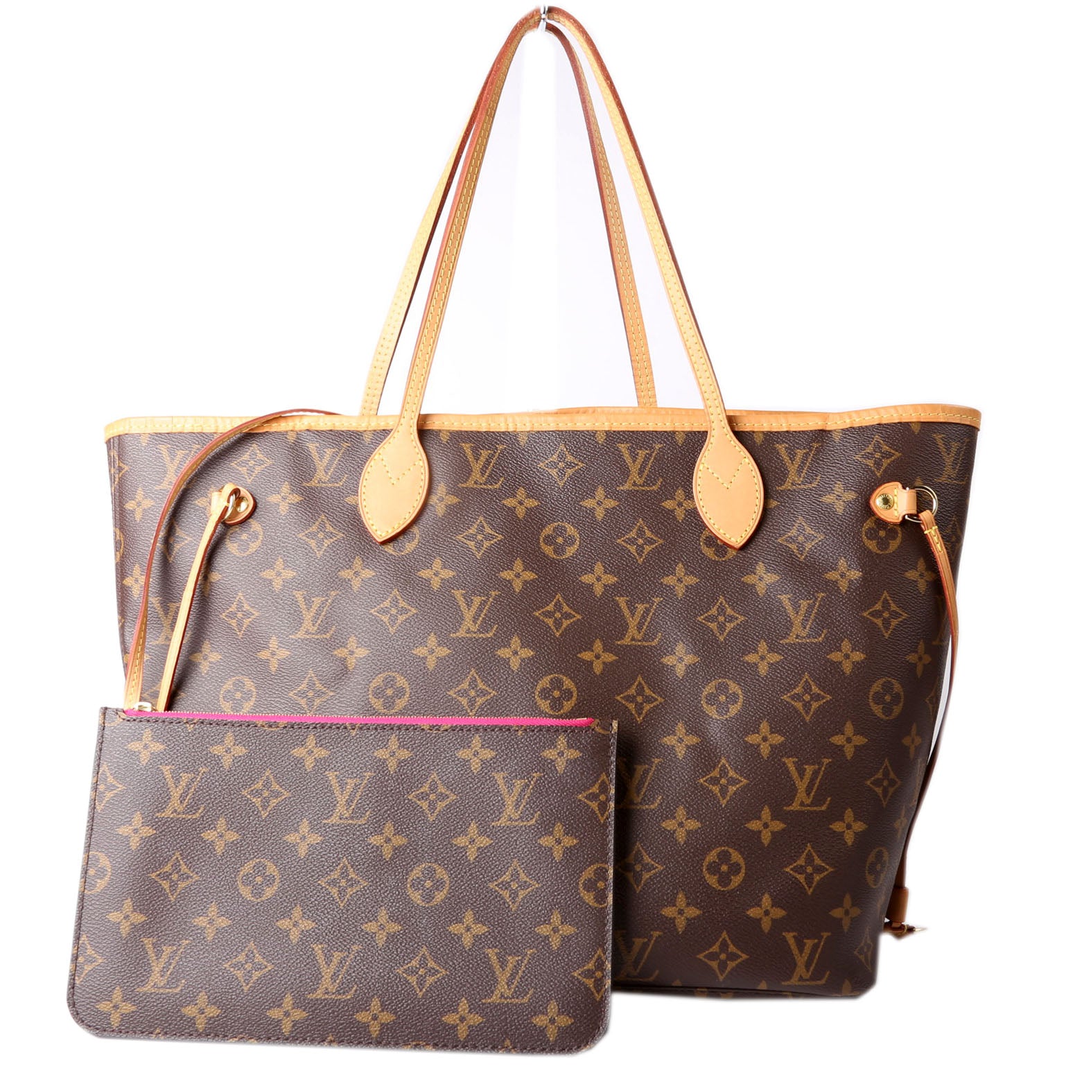 This pre-owned Louis Vuitton Neverfull MM with Wallet is guaranteed 100% authentic. The exterior is in the classic Coated Canvas Monogram.