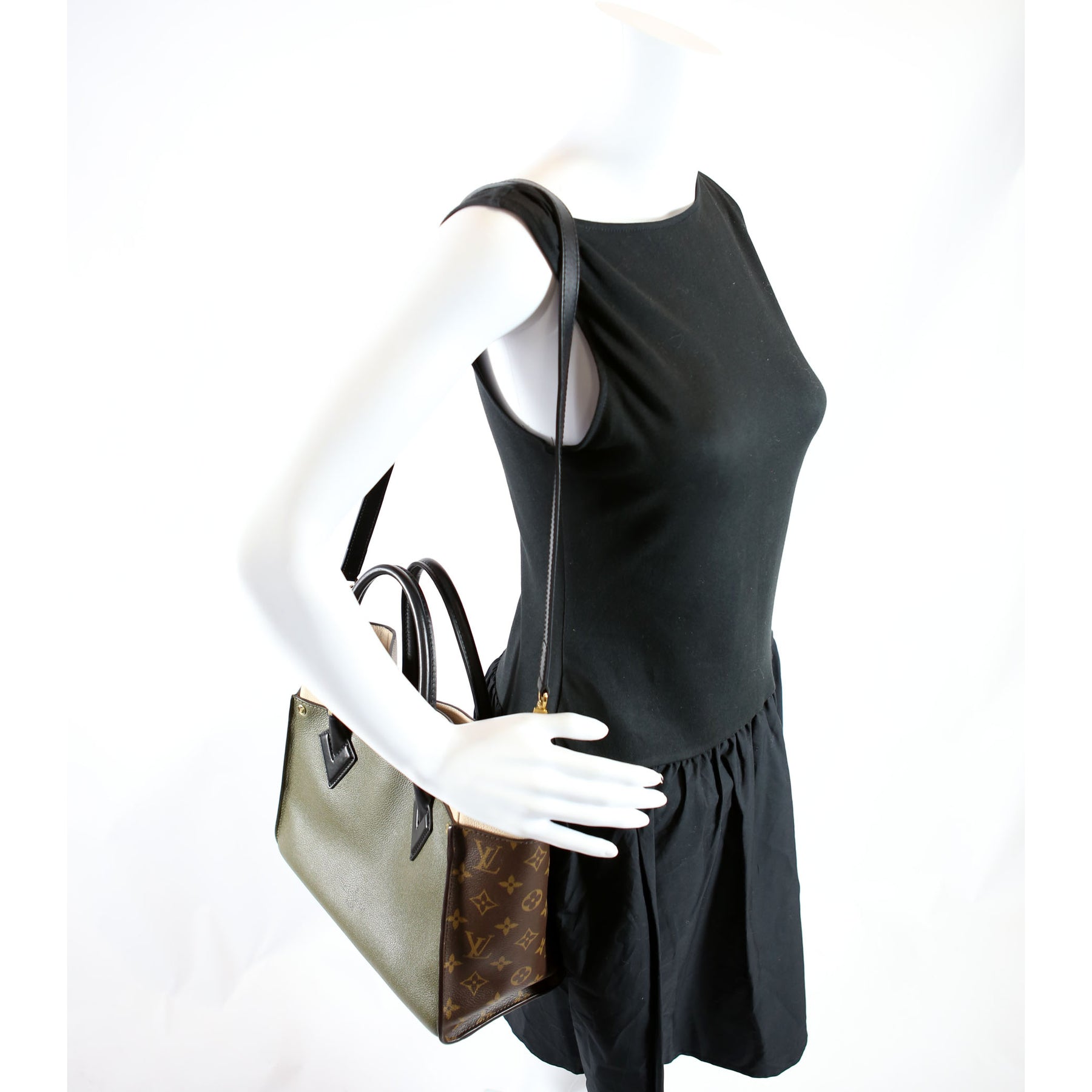 This pre-owned Louis Vuitton On My Side MM is guaranteed 100% authentic. The exterior is in the classic Louis Vuitton Calfskin leather and Monogram coated canvas.