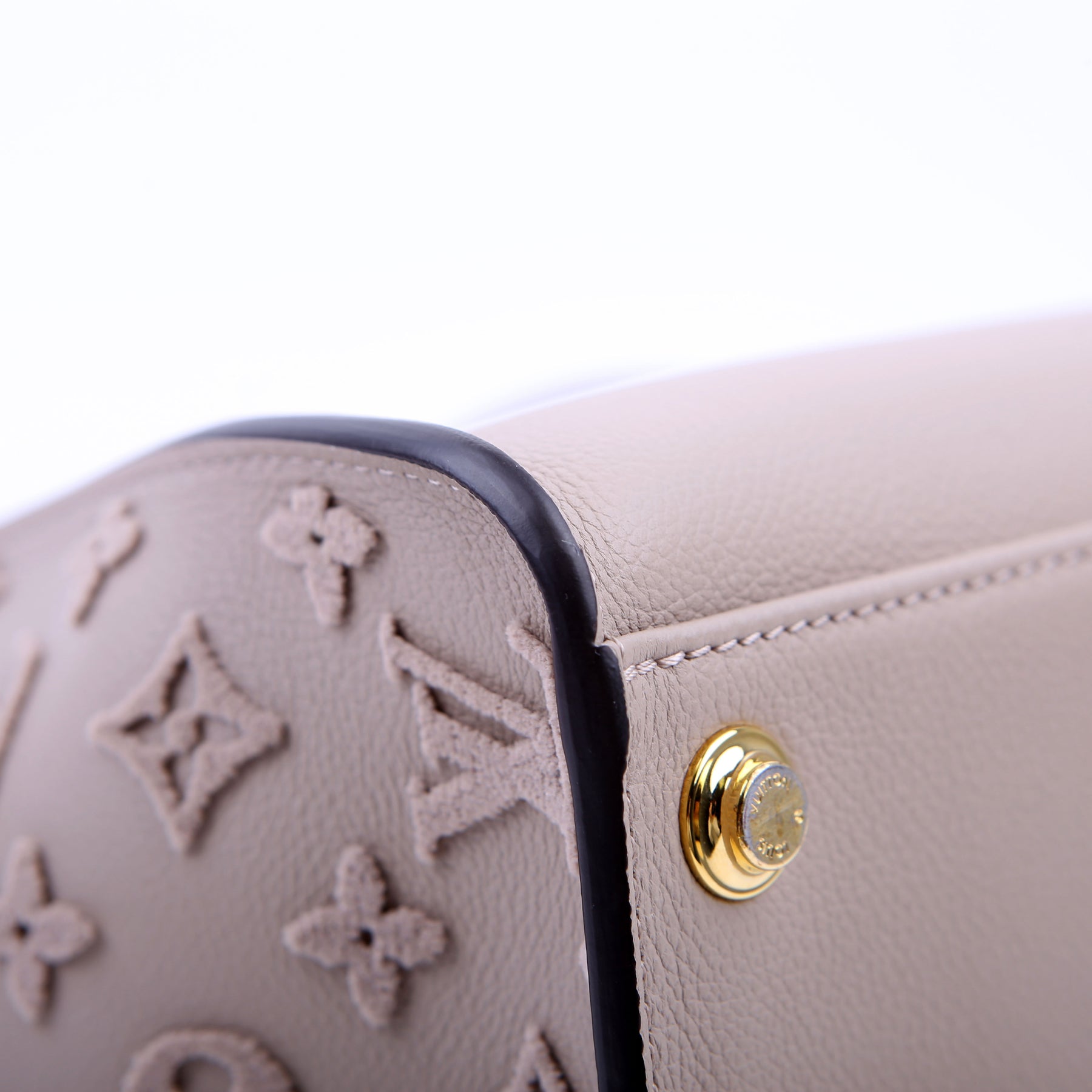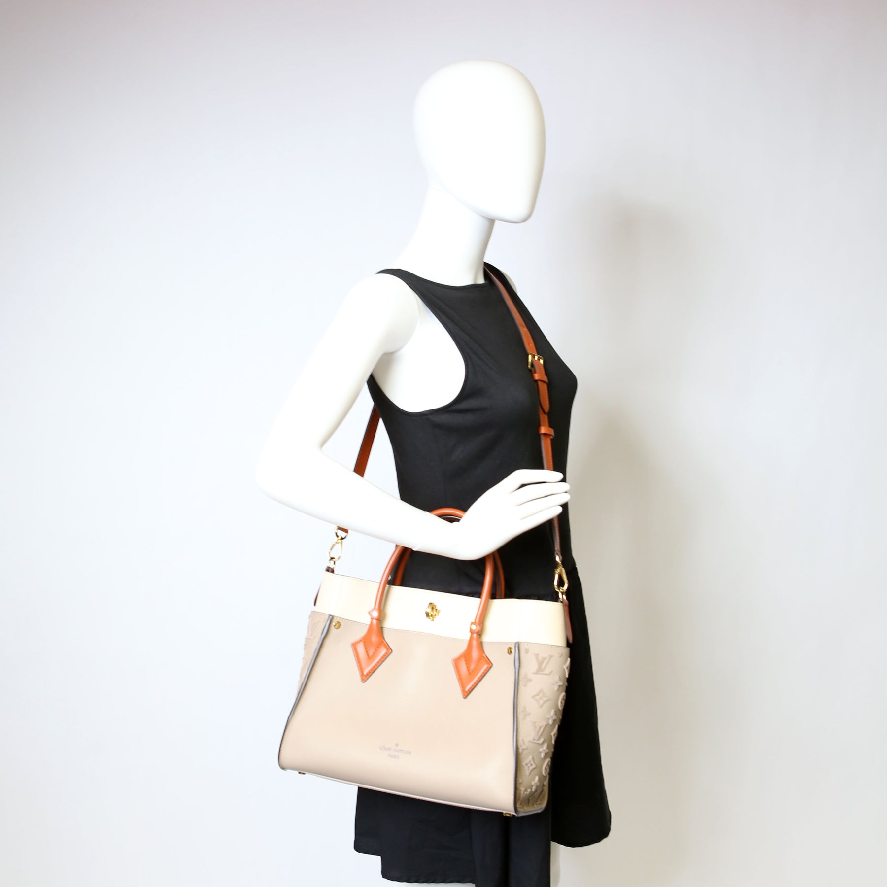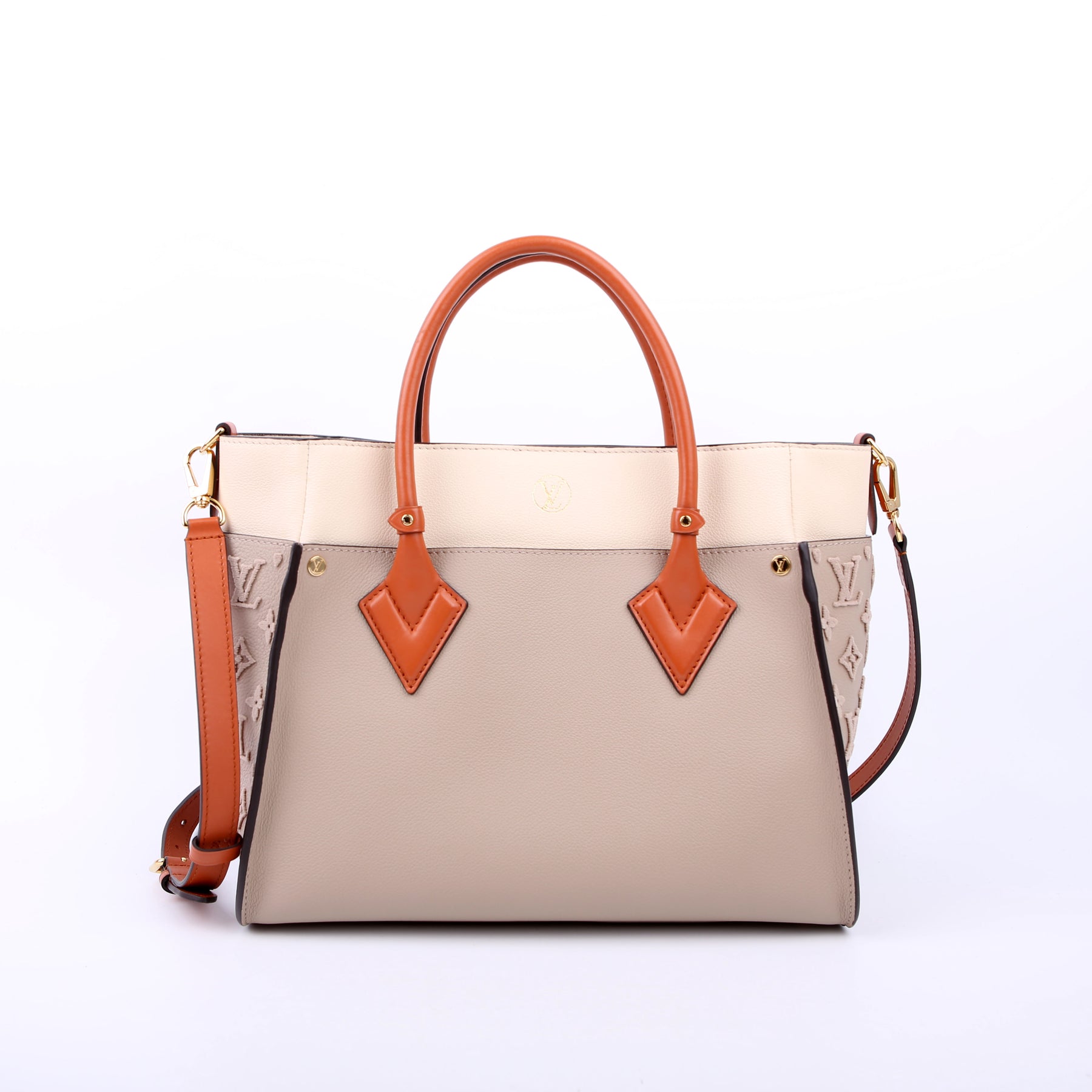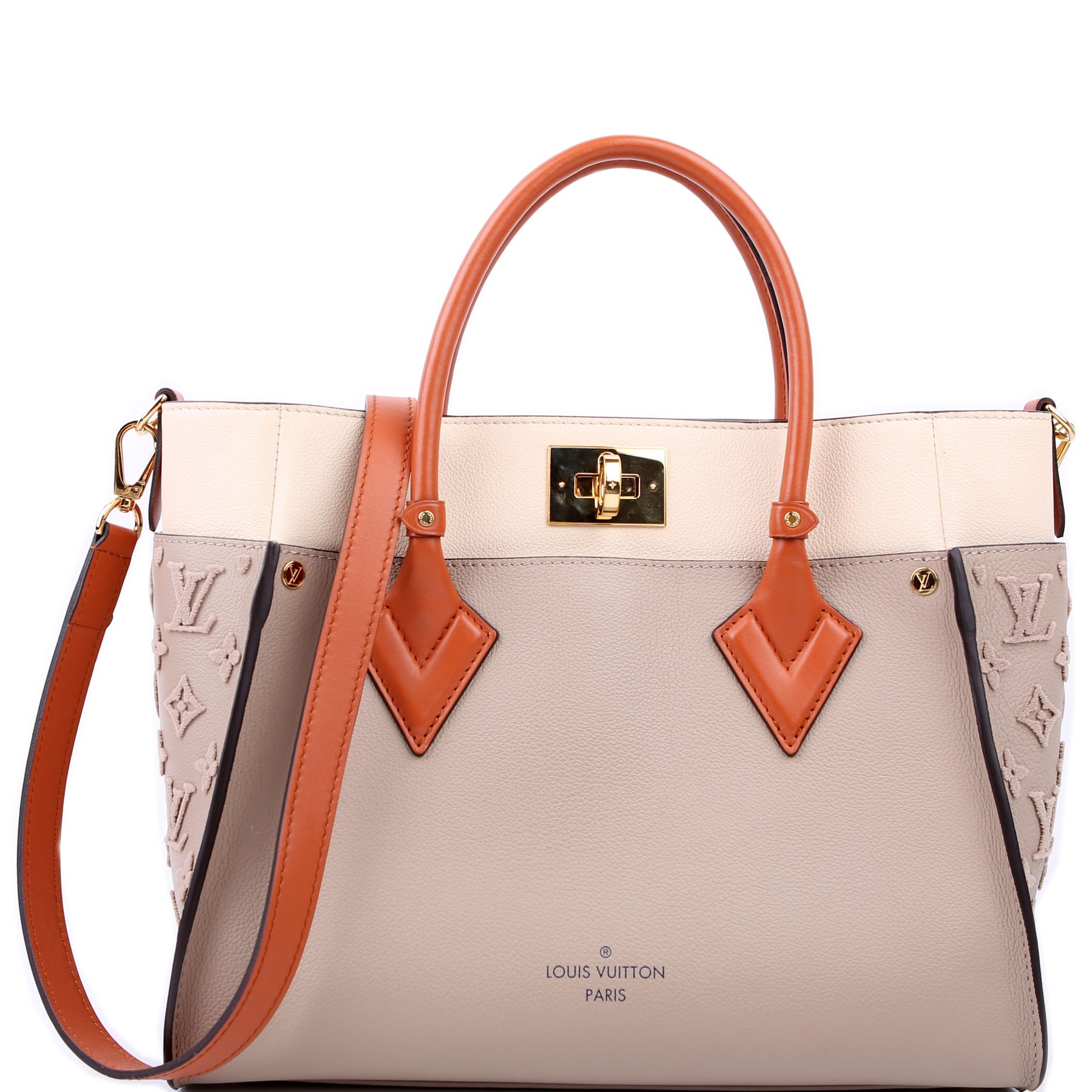 This pre-owned Louis Vuitton On My Side MM is guaranteed 100% authentic. The exterior is in the classic Louis Vuitton Calfskin leather.
