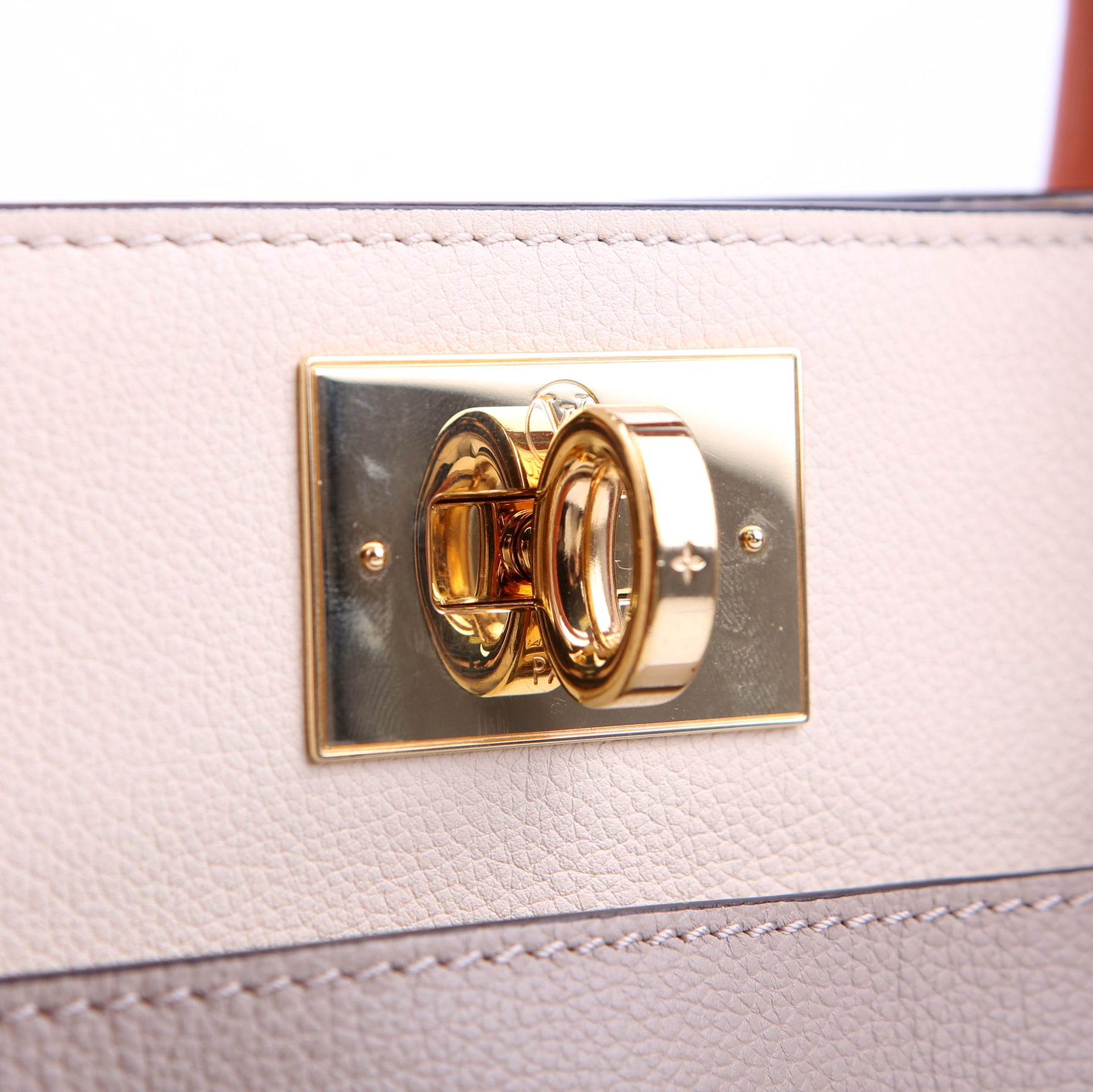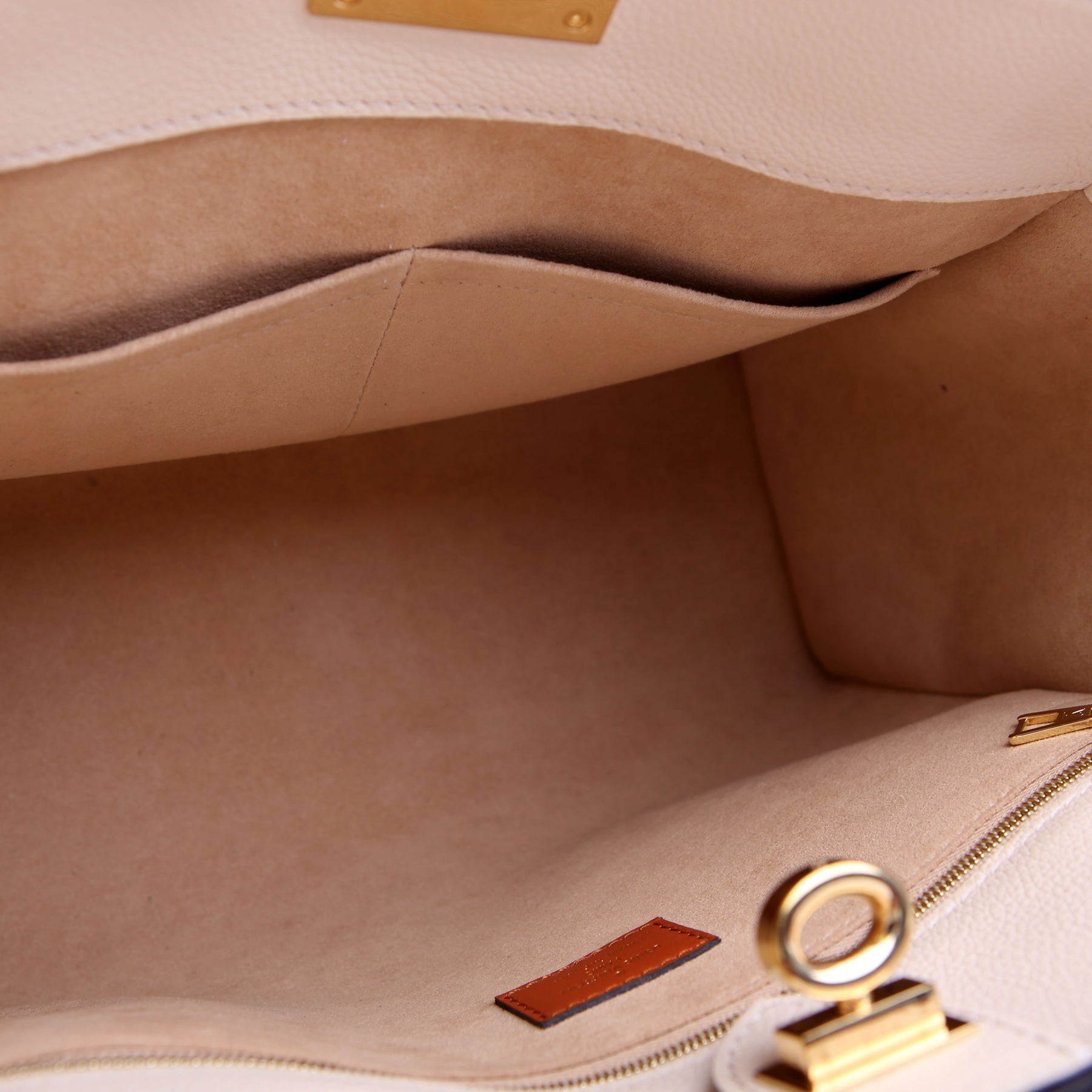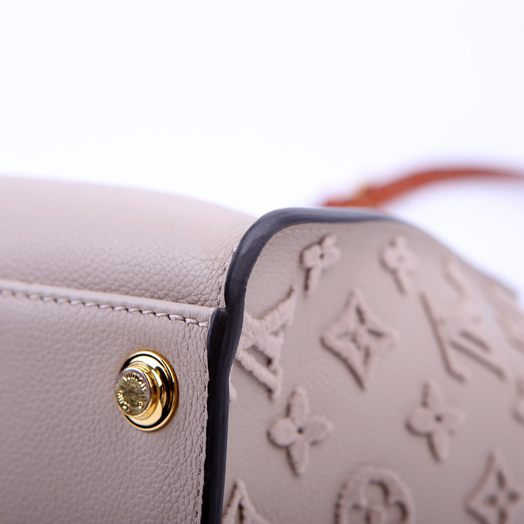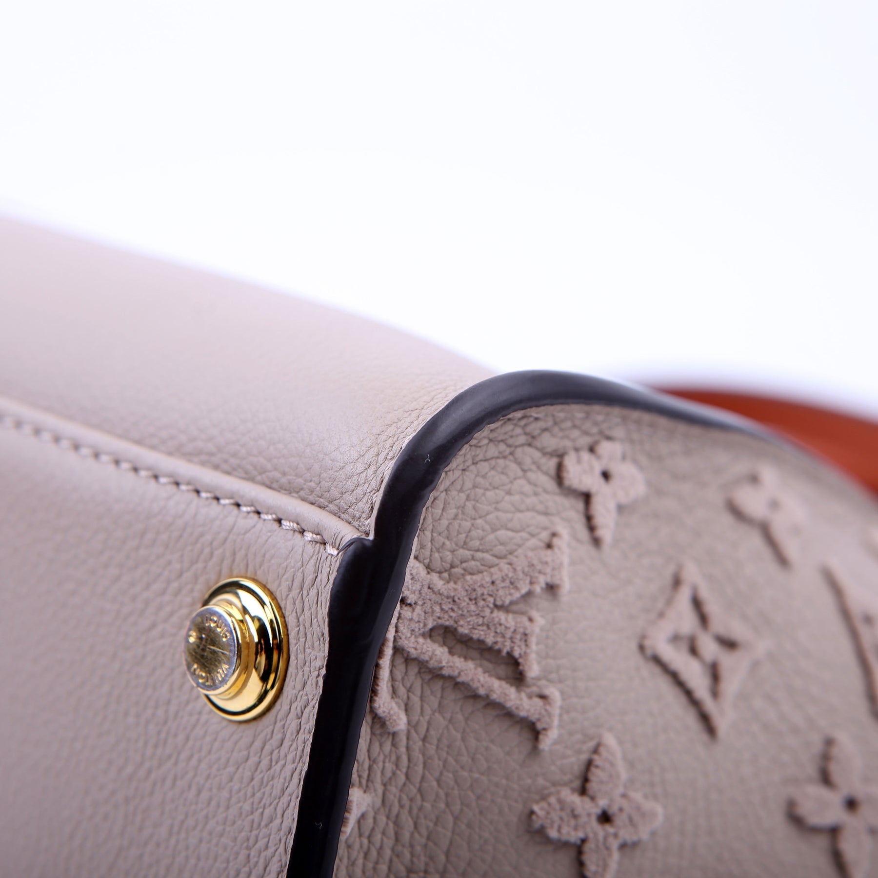 This pre-owned Louis Vuitton On My Side MM is guaranteed 100% authentic. The exterior is in the classic Louis Vuitton Calfskin leather.