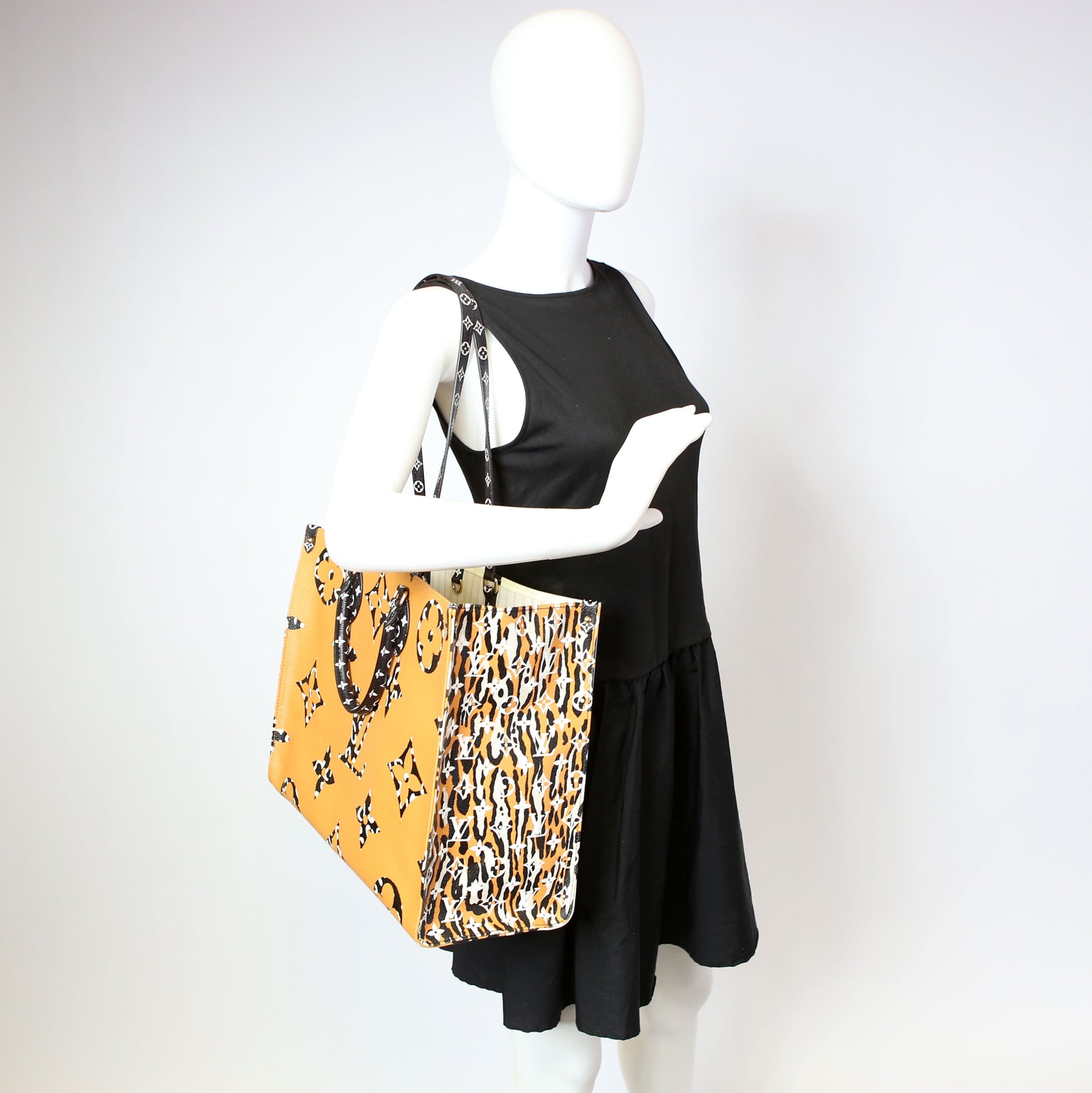 This pre-owned Louis Vuitton ONTHEGO GM Giant Jungle Tote is guaranteed 100% authentic.