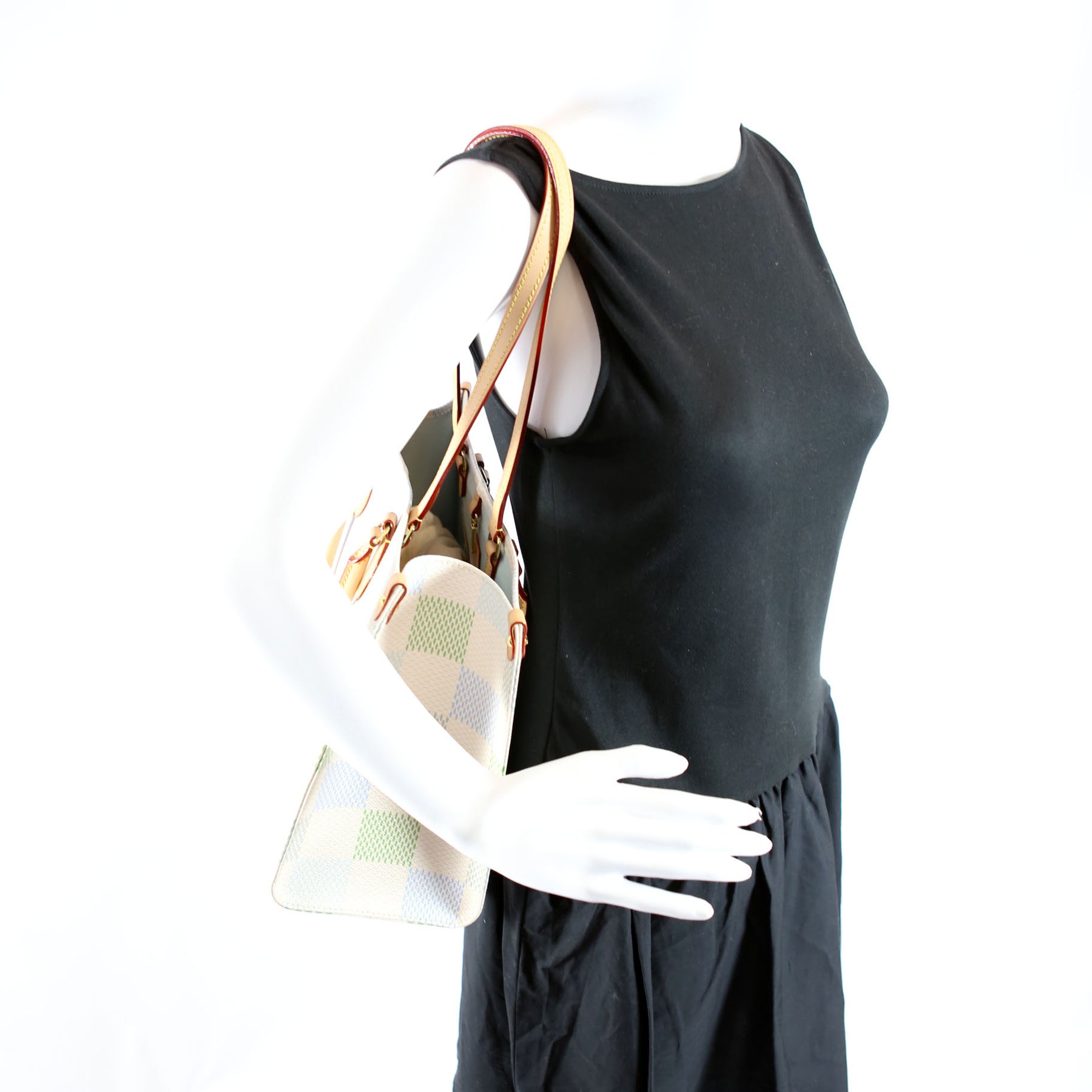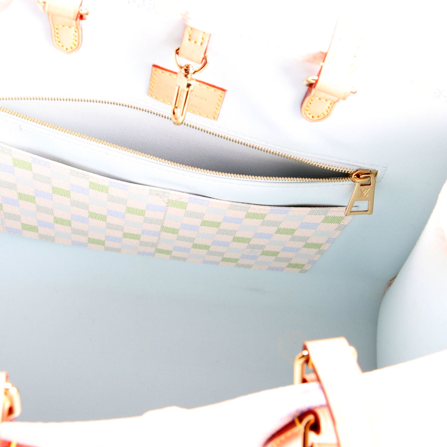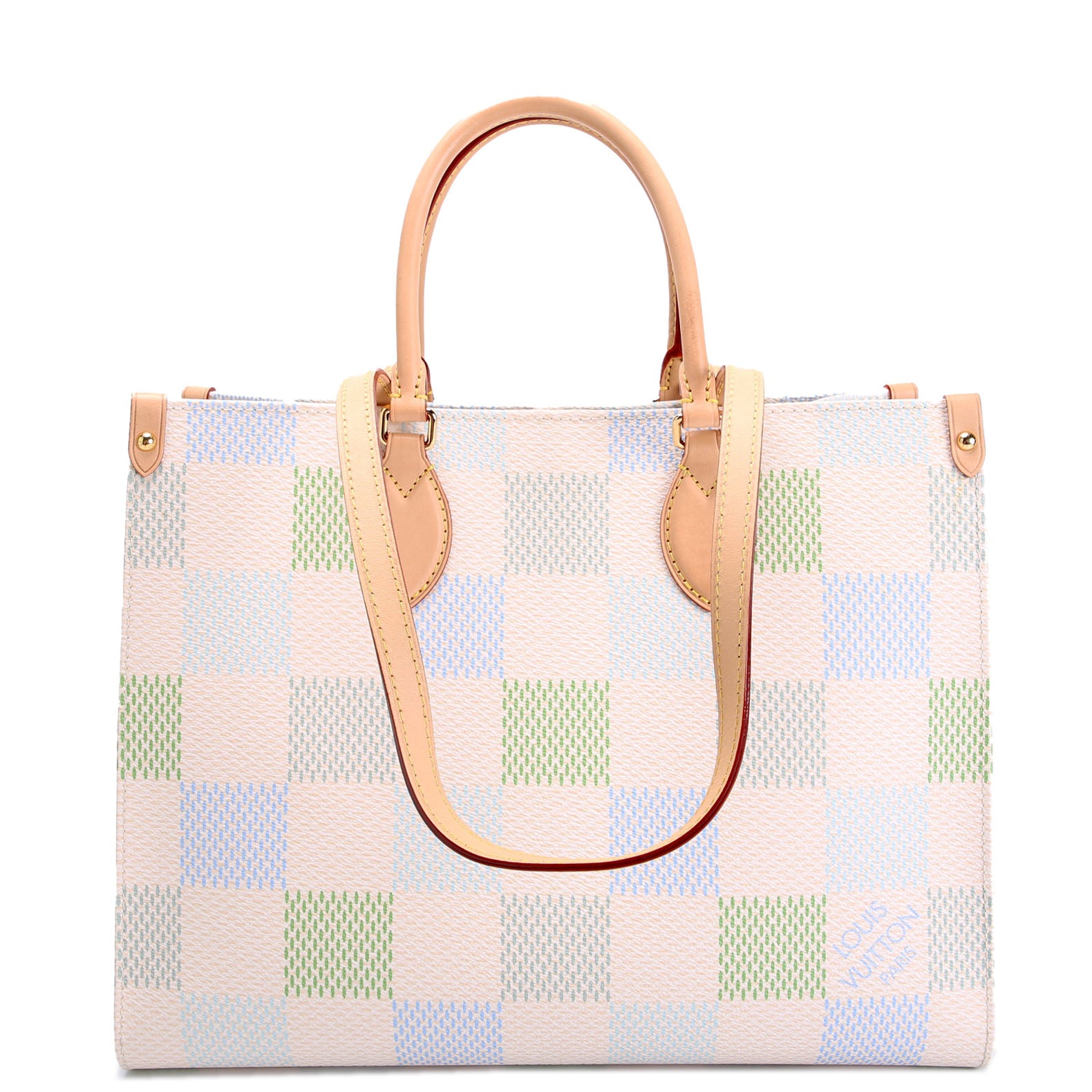 This pre-owned Louis Vuitton ONTHEGO MM is guaranteed 100% authentic. The exterior is in the classic Louis Vuitton Damier Giant coated canvas.