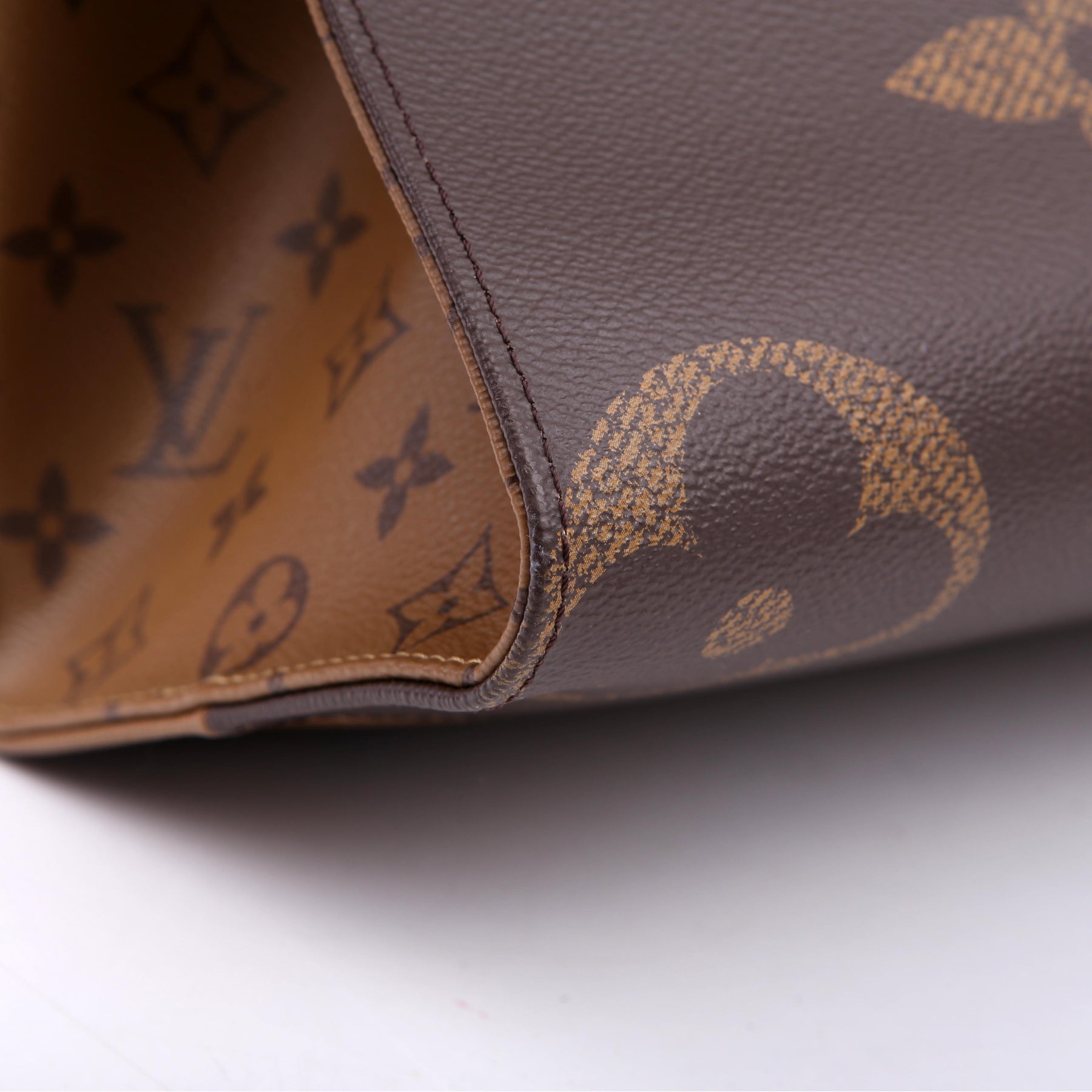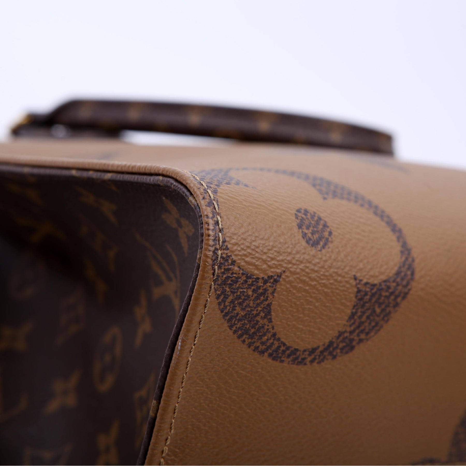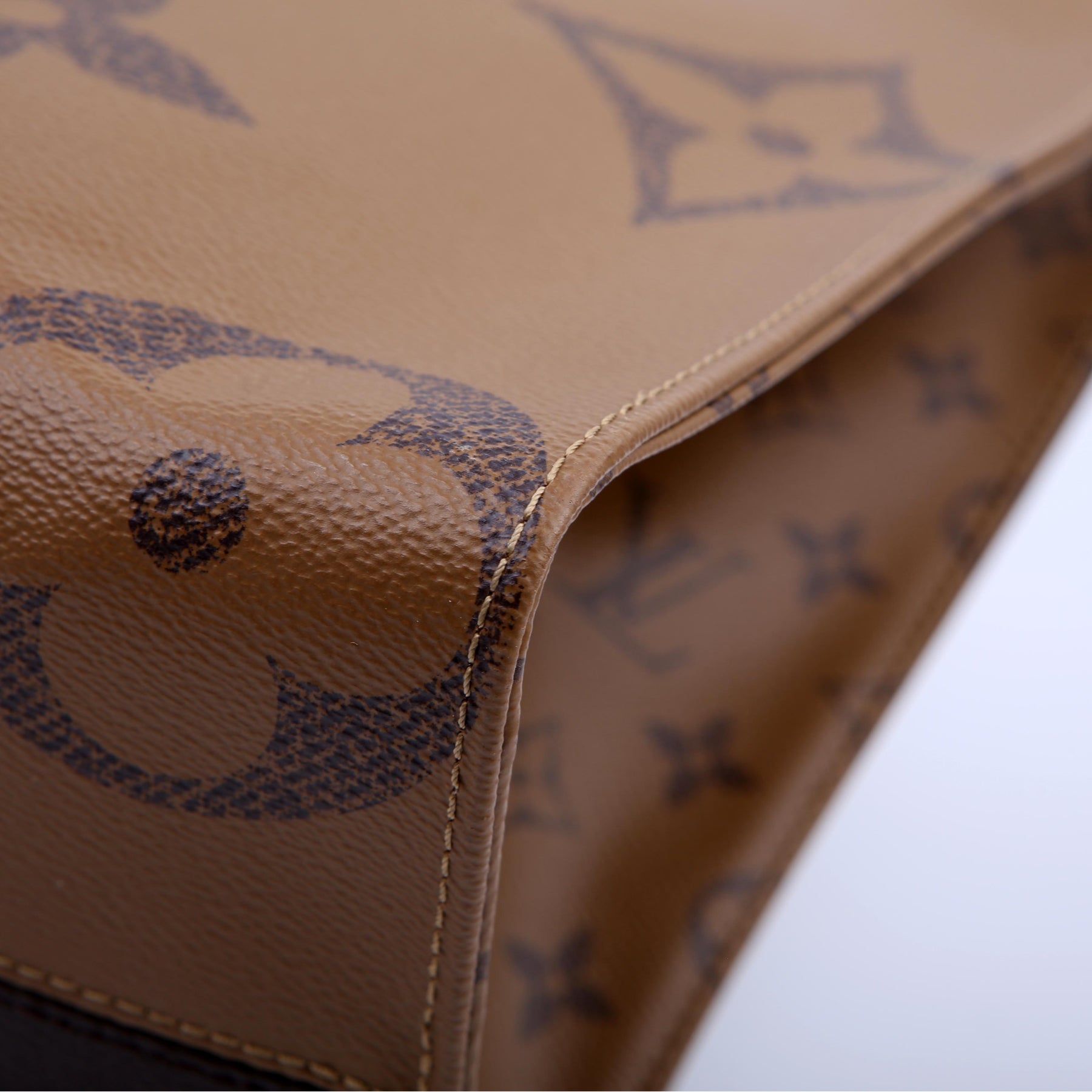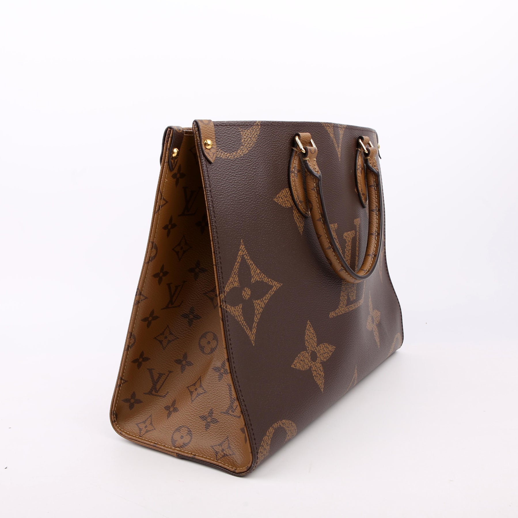 This pre-owned Louis Vuitton ONTHEGO MM is guaranteed 100% authentic. The exterior is in the classic Louis Vuitton Reverse Monogram coated canvas.