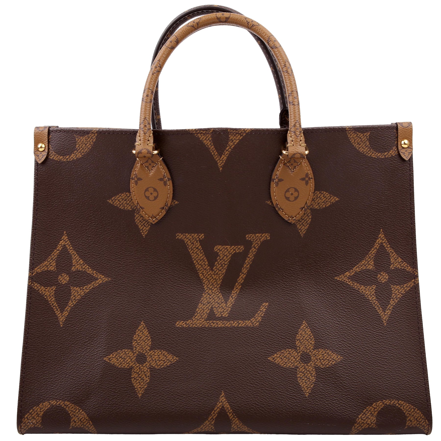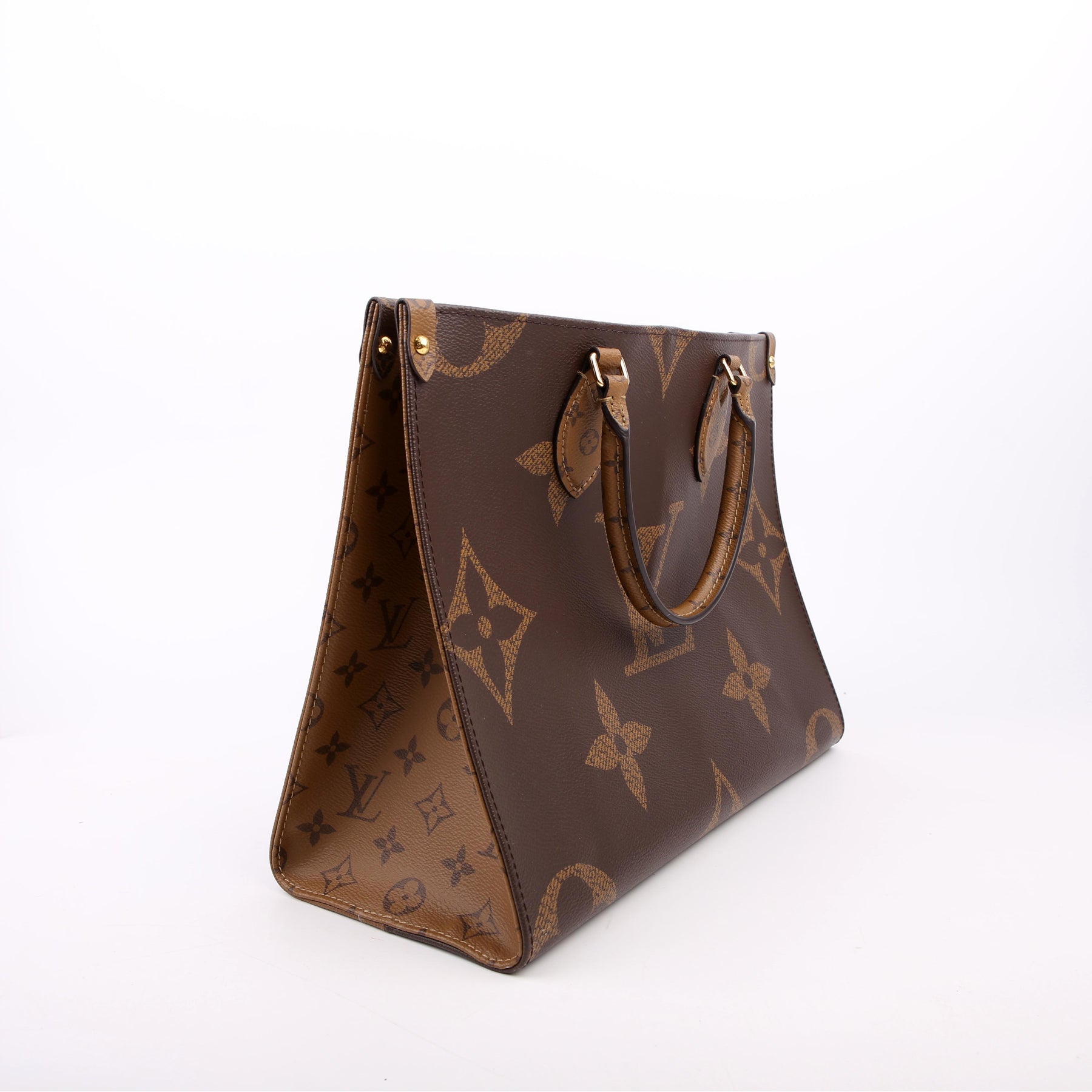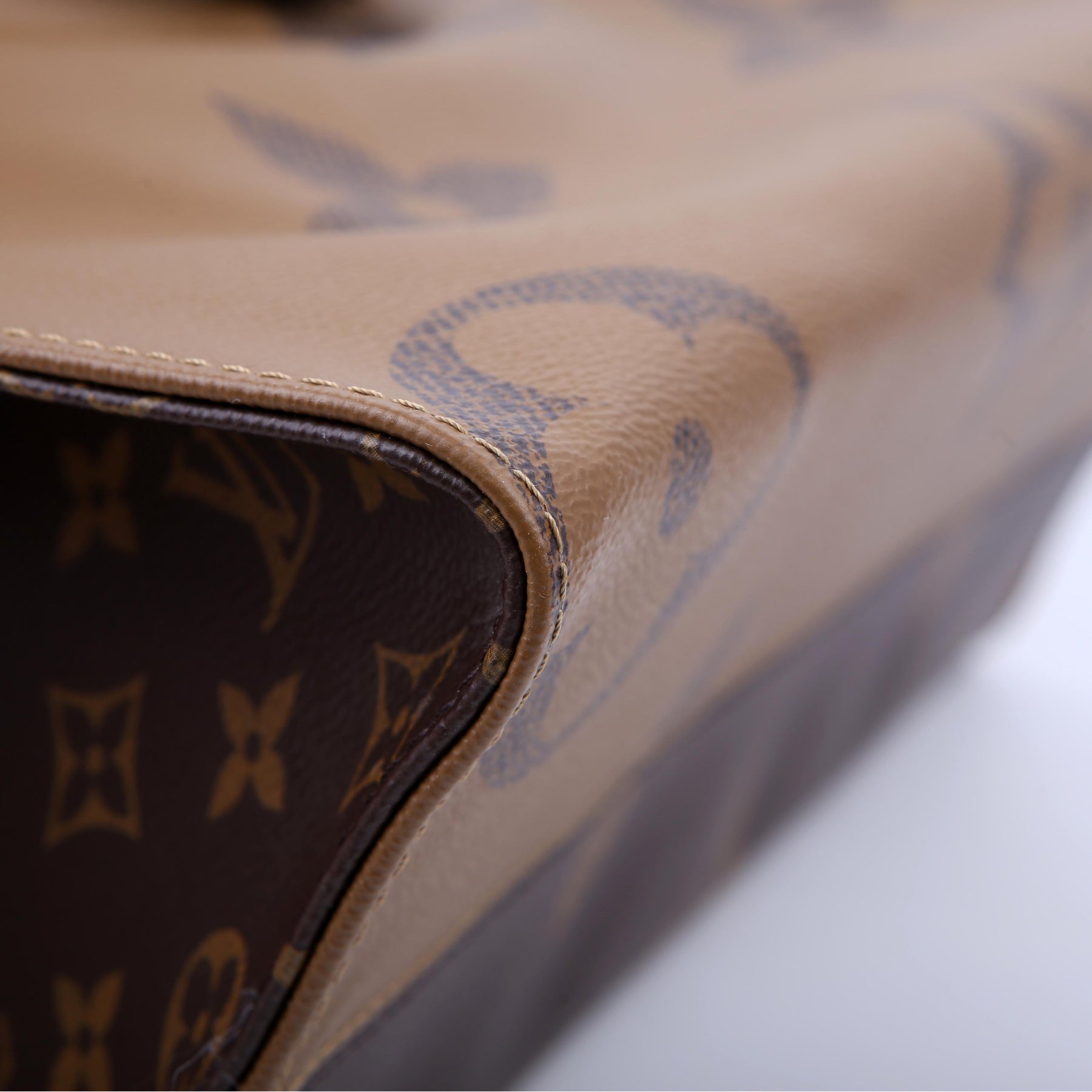 This pre-owned Louis Vuitton ONTHEGO MM is guaranteed 100% authentic. The exterior is in the classic Louis Vuitton Reverse Monogram coated canvas.