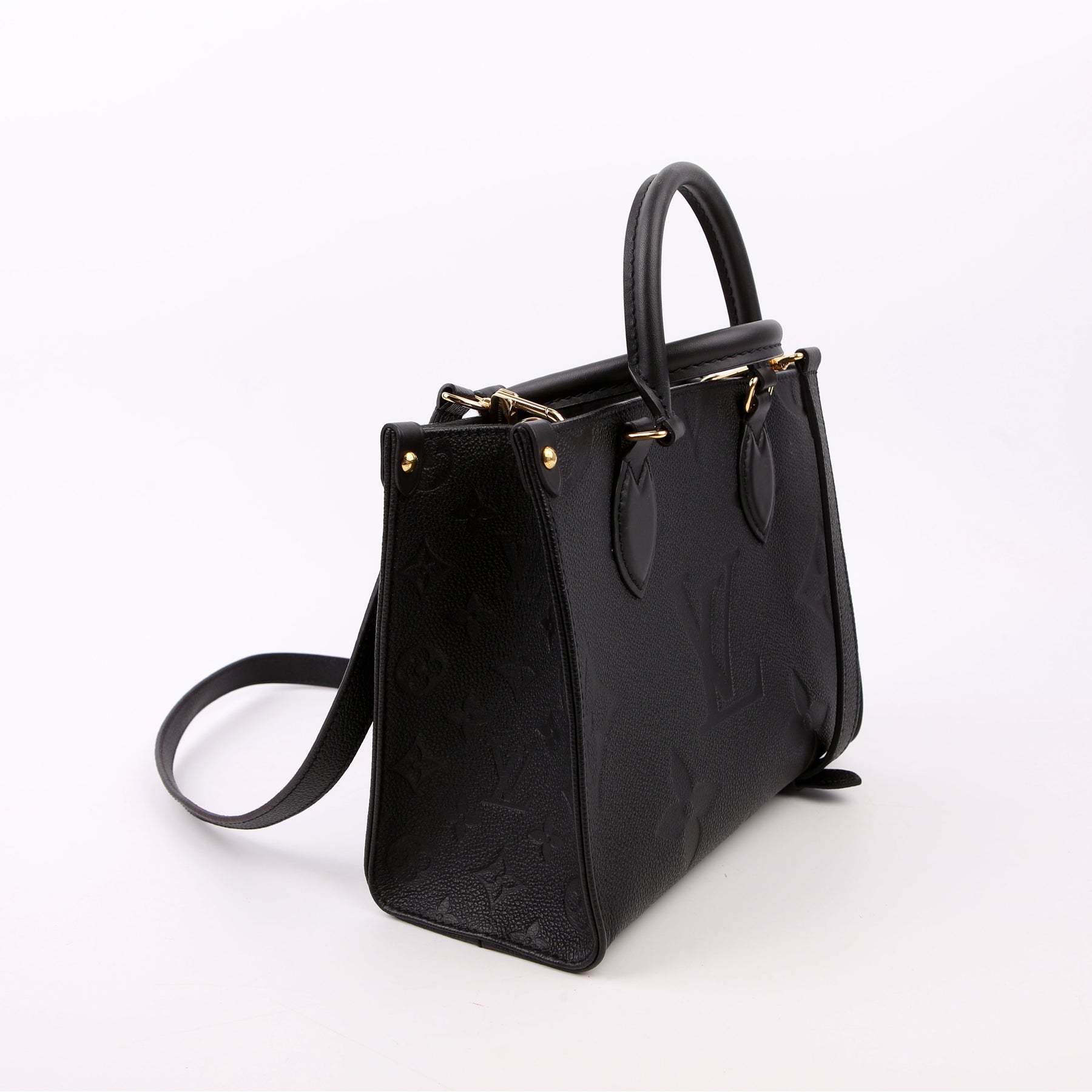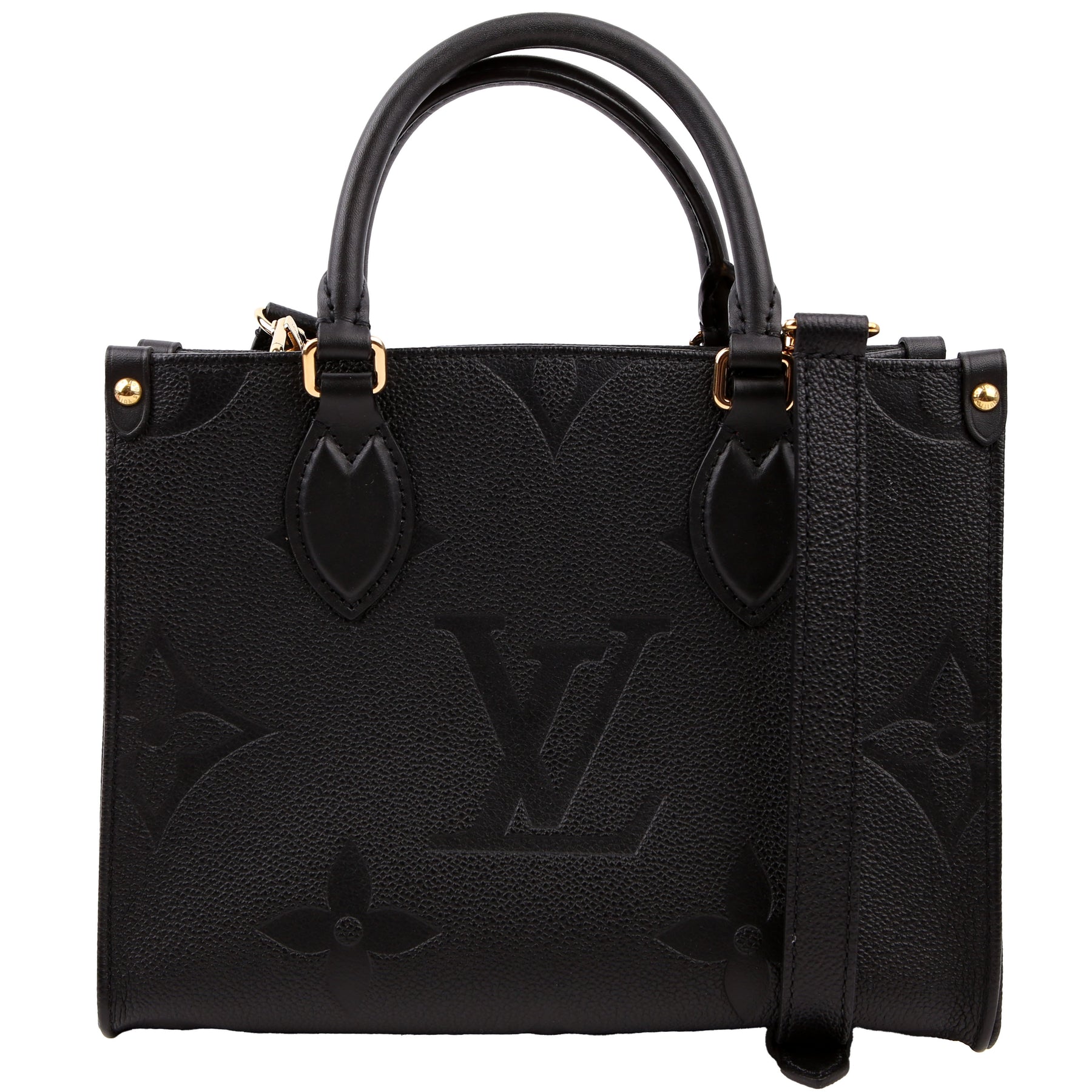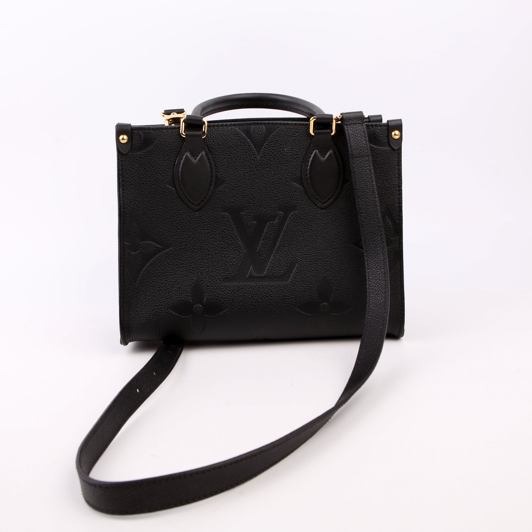 This pre-owned Louis Vuitton ONTHEGO PM is guaranteed 100% authentic. The exterior is in the classic Louis Vuitton Empreinte leather.