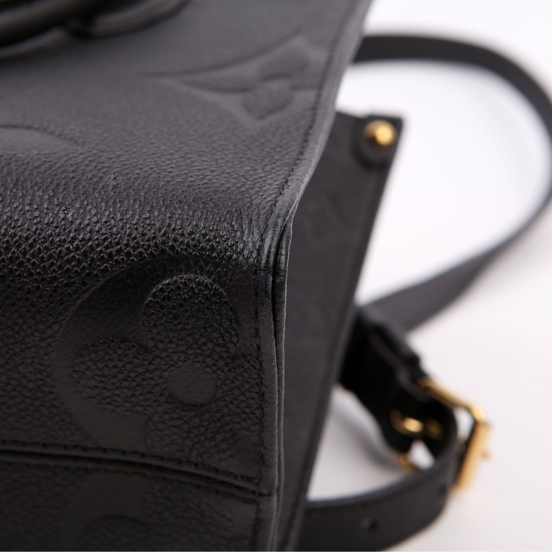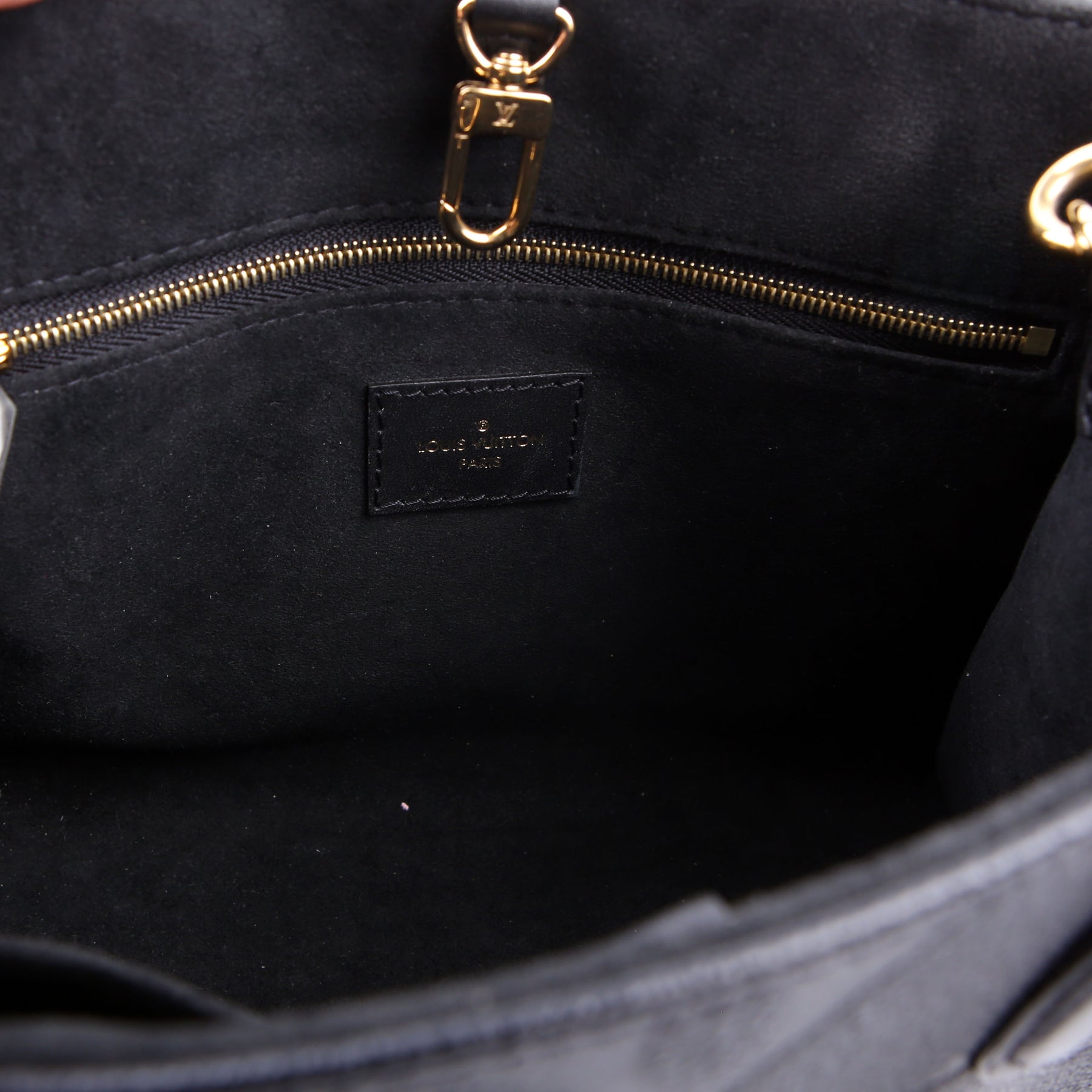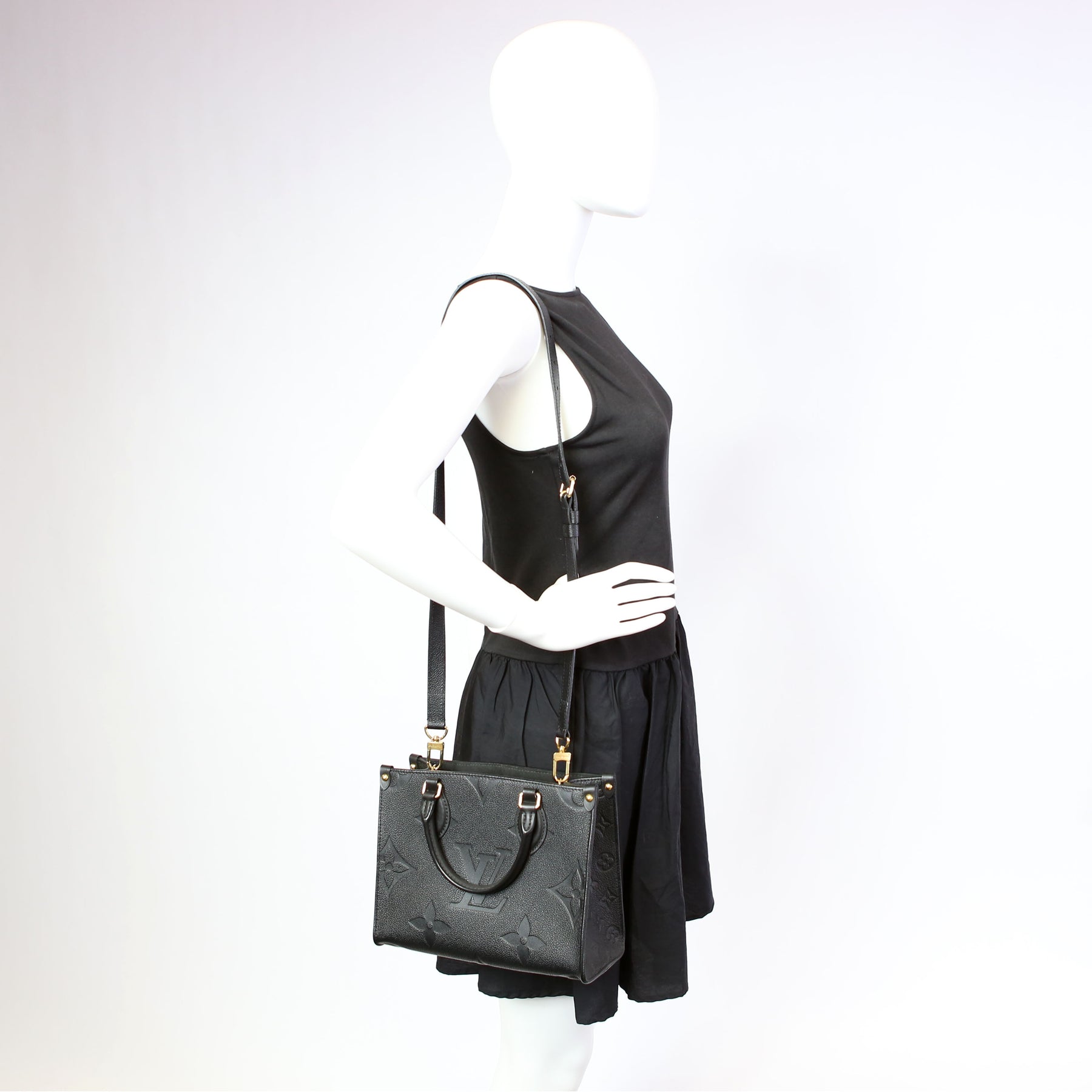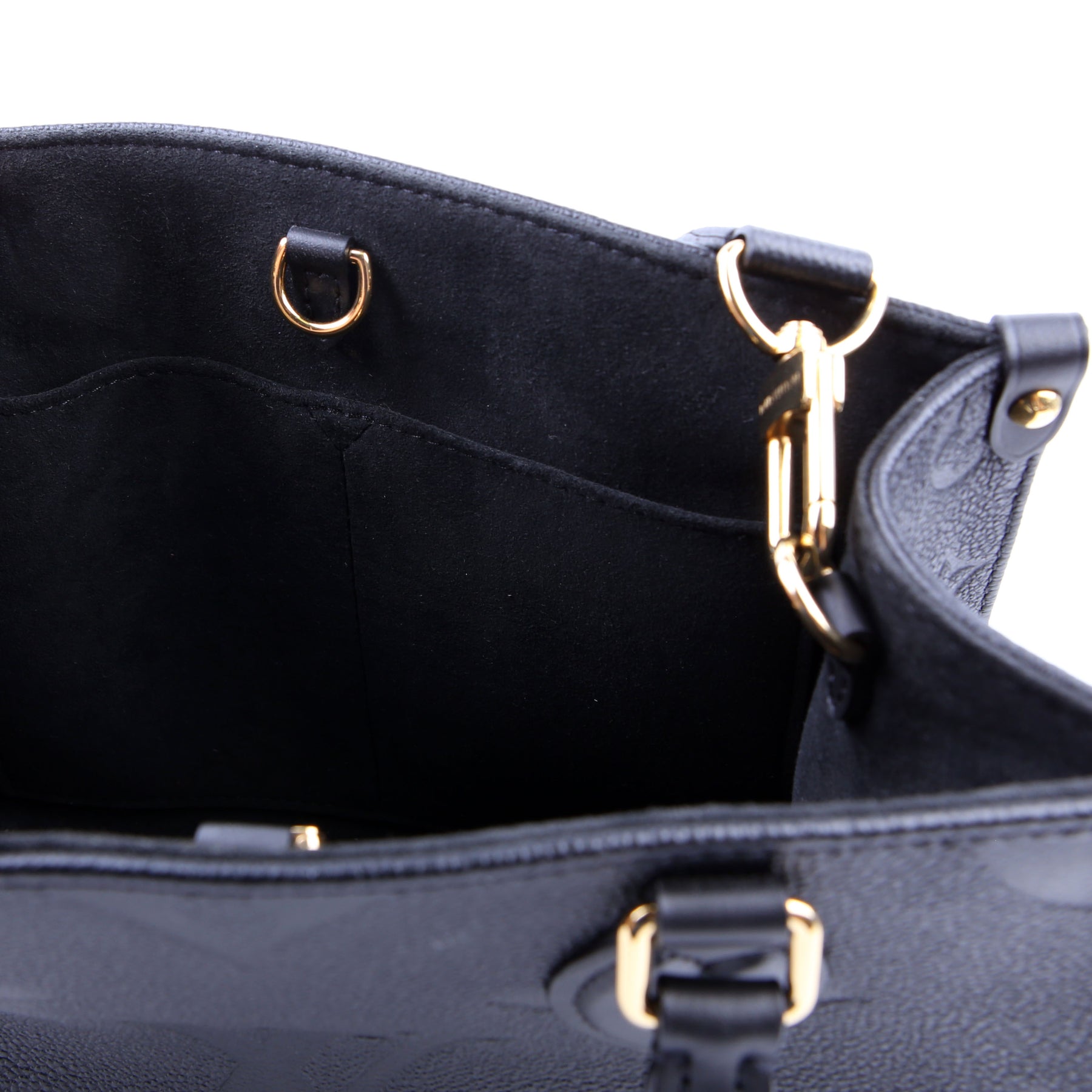 This pre-owned Louis Vuitton ONTHEGO PM is guaranteed 100% authentic. The exterior is in the classic Louis Vuitton Empreinte leather.