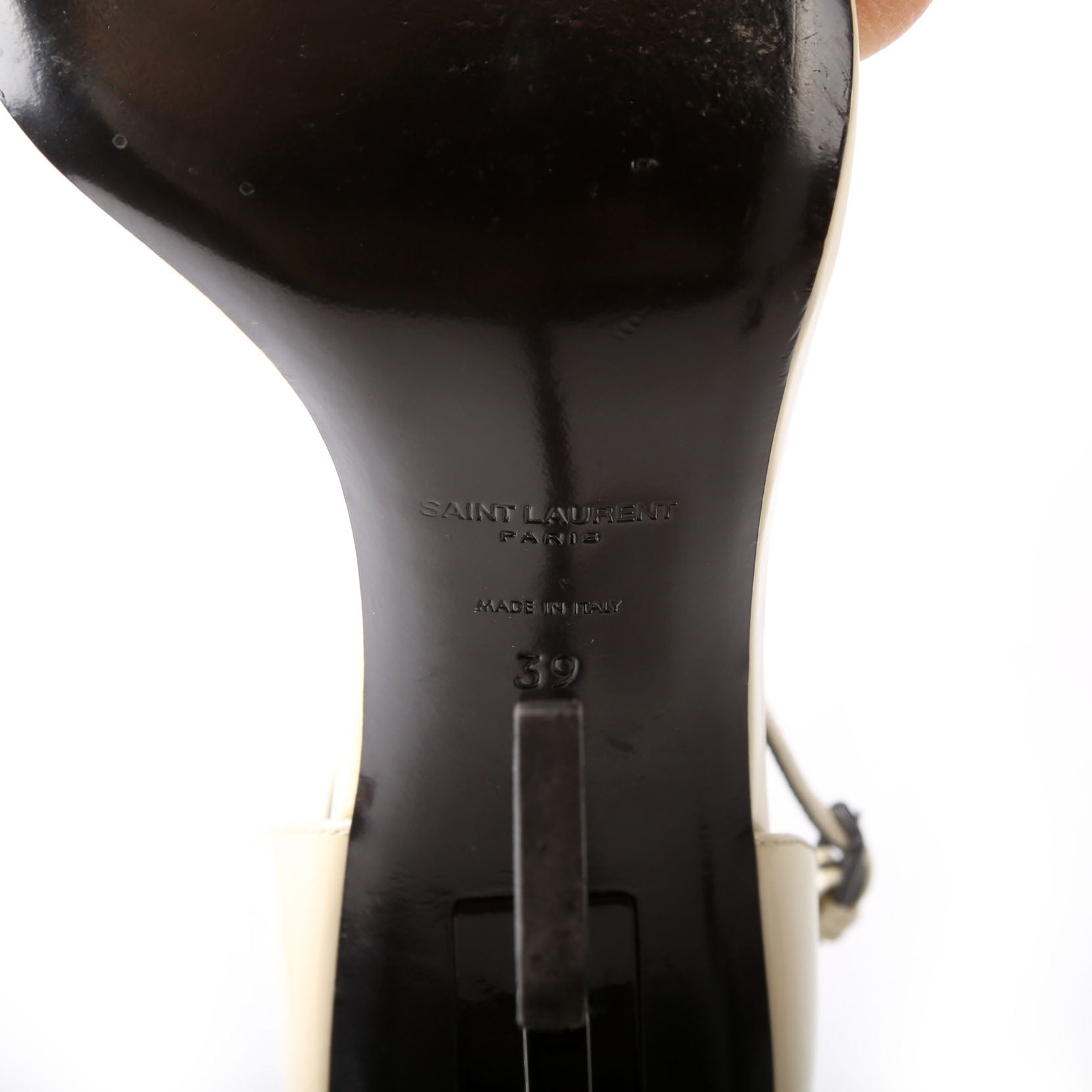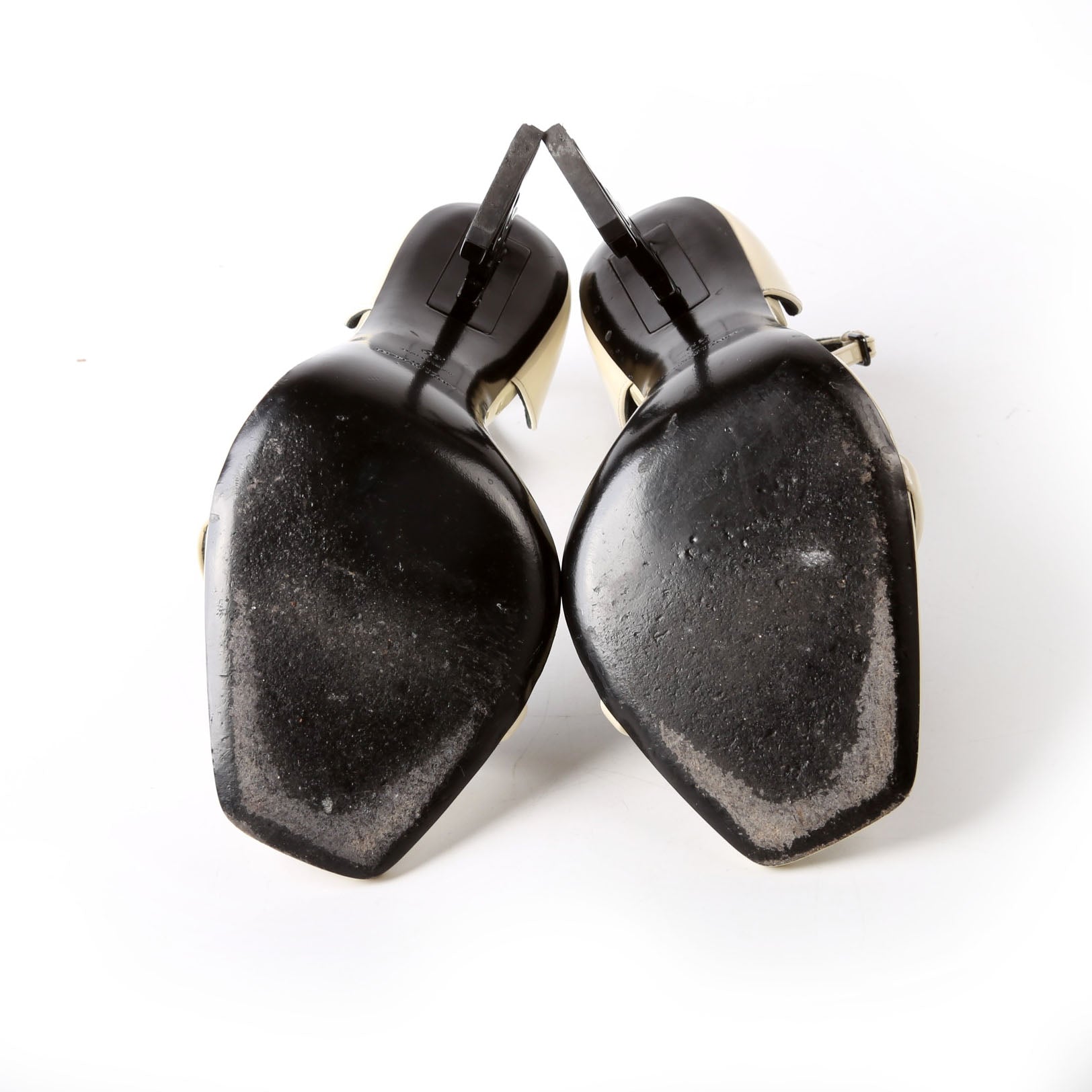 Soles: The soles have normal signs of wear. The YSL heels shows scuffing and minor discoloration.