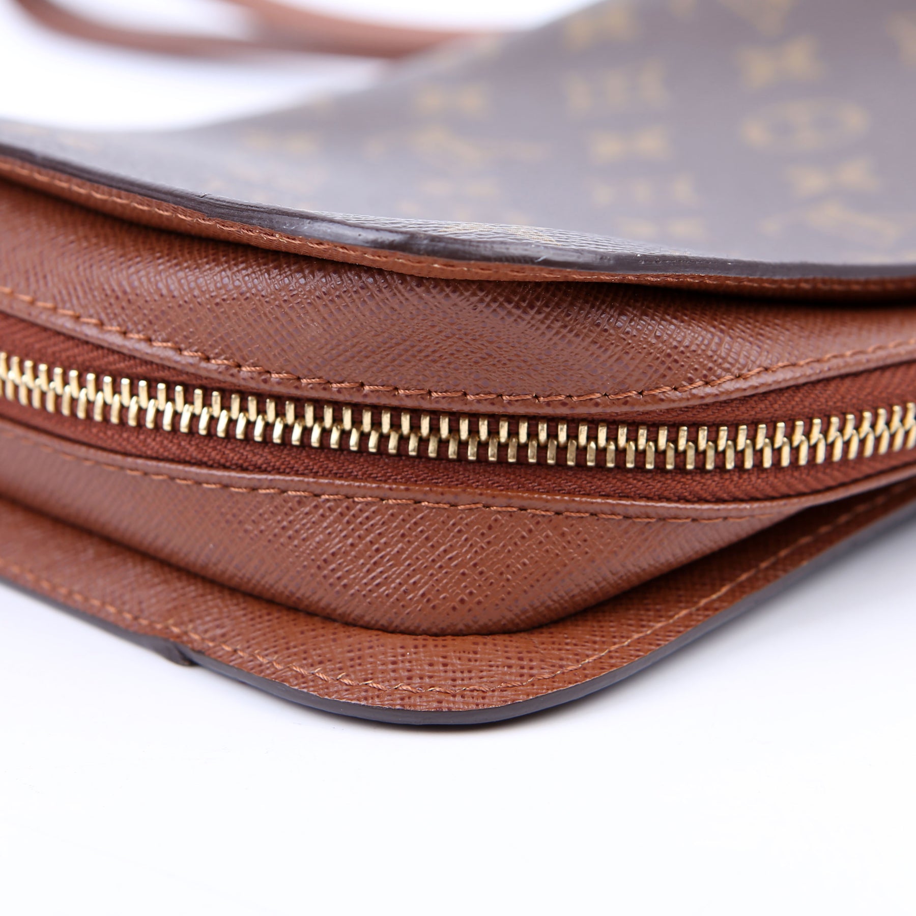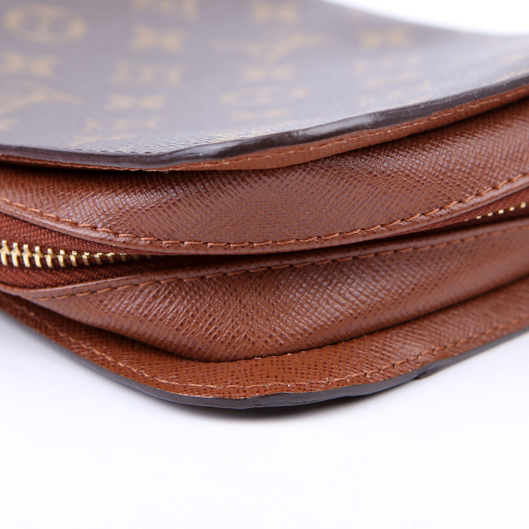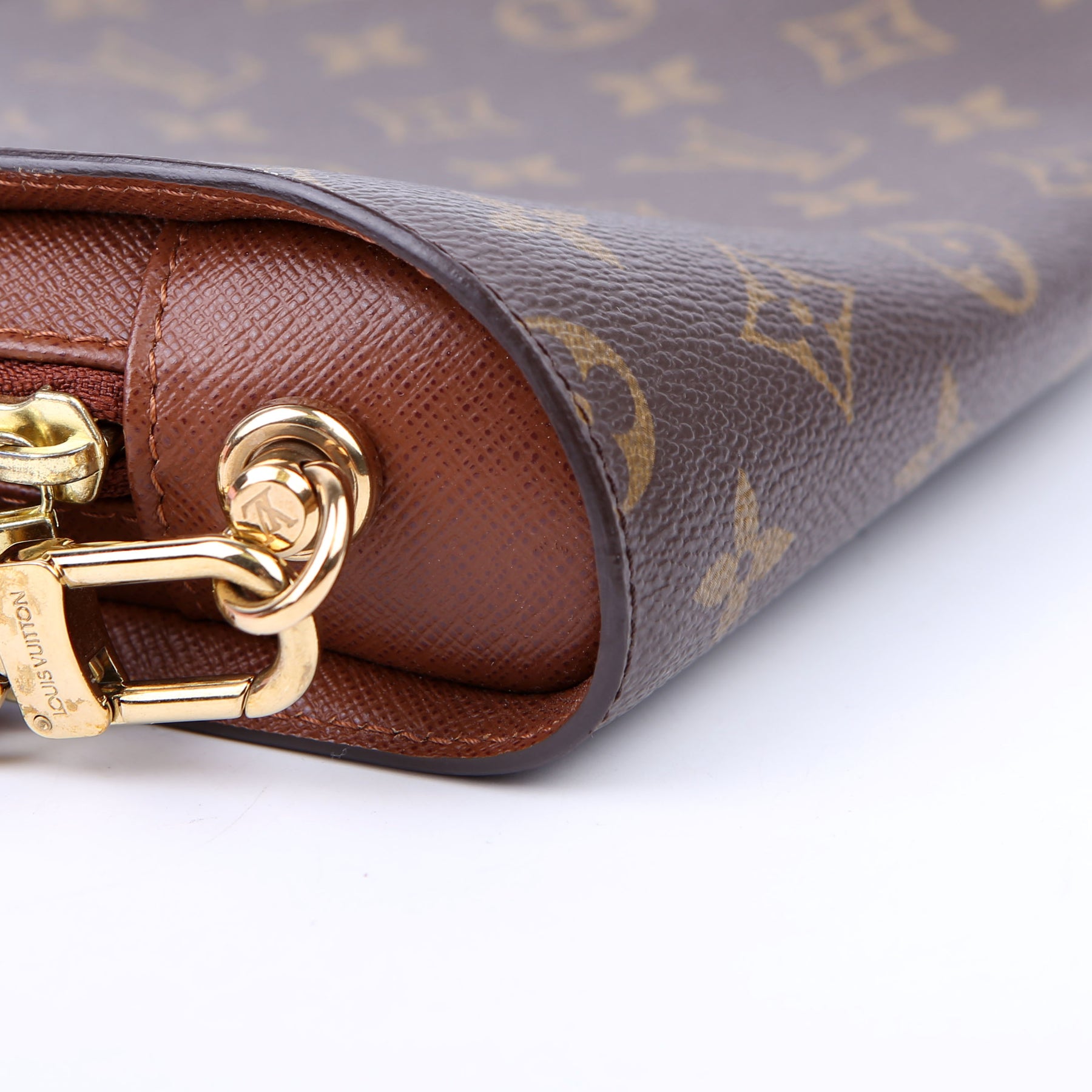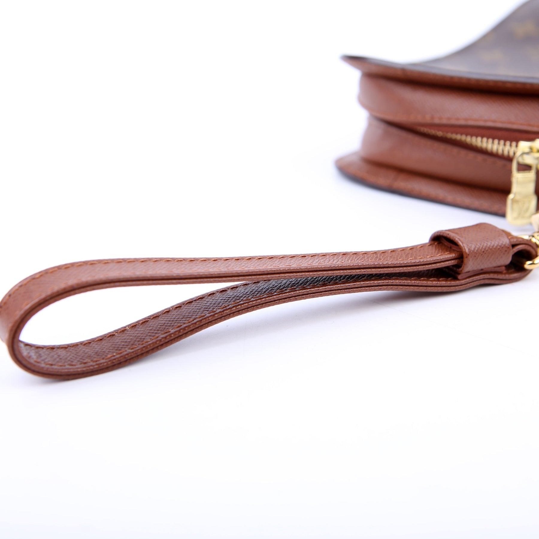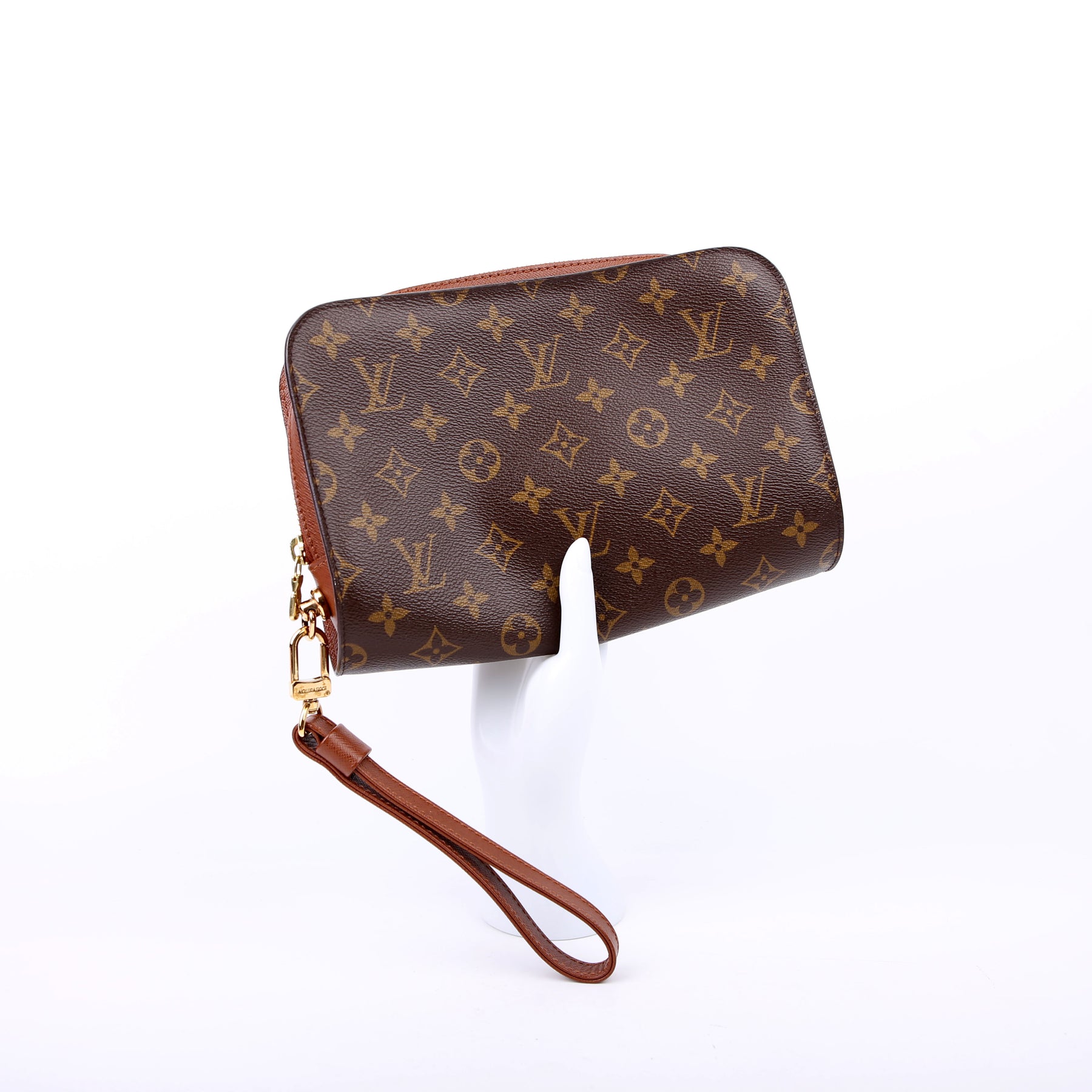 This pre-owned Louis Vuitton Orsay Clutch is guaranteed 100% authentic. The exterior is in the classic Louis Vuitton Monogram coated canvas.
