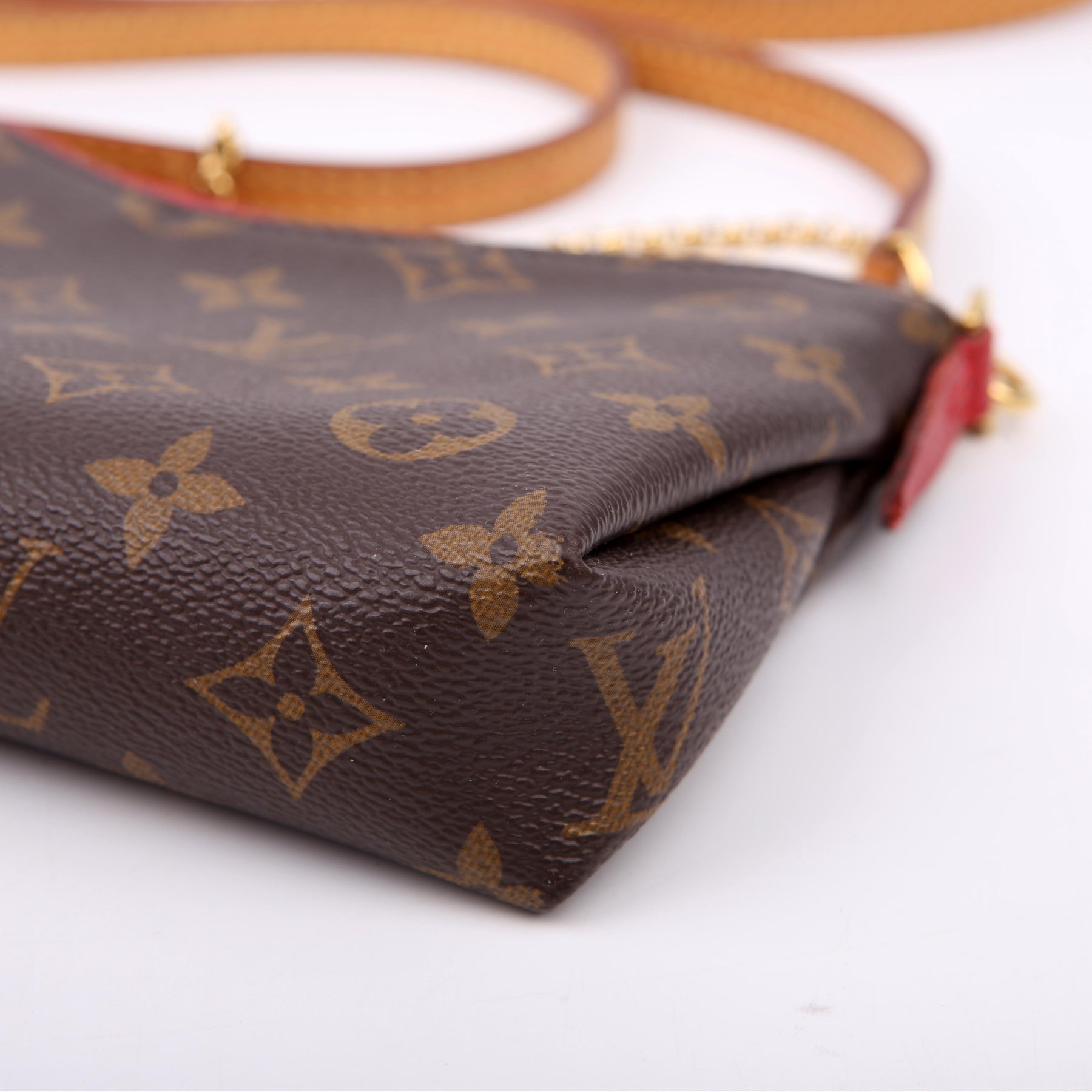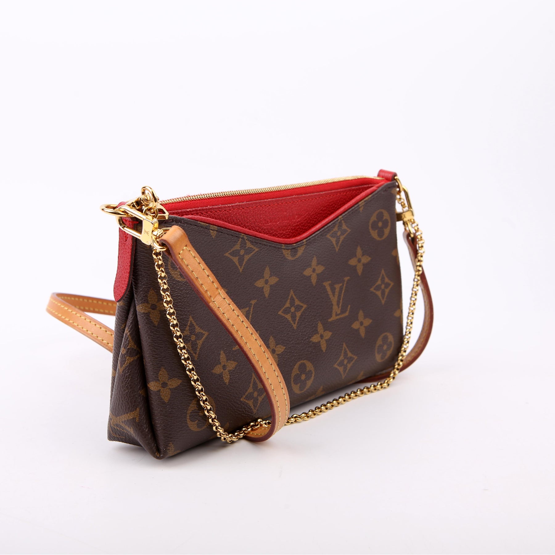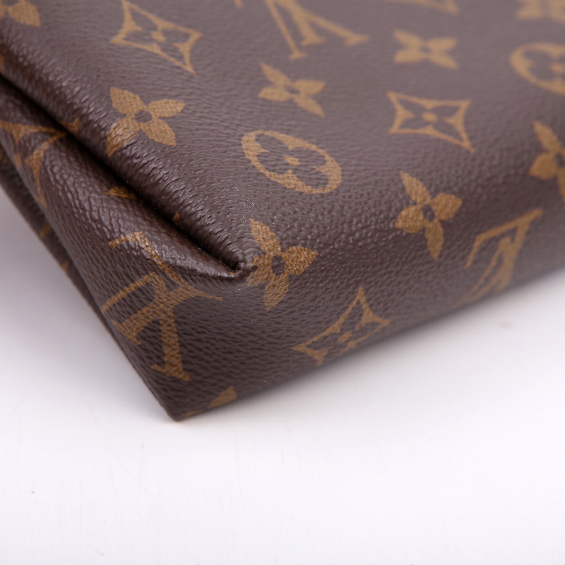 This pre-owned Louis Vuitton Pallas Clutch is guaranteed 100% authentic. The exterior is in the classic Monogram coated canvas.