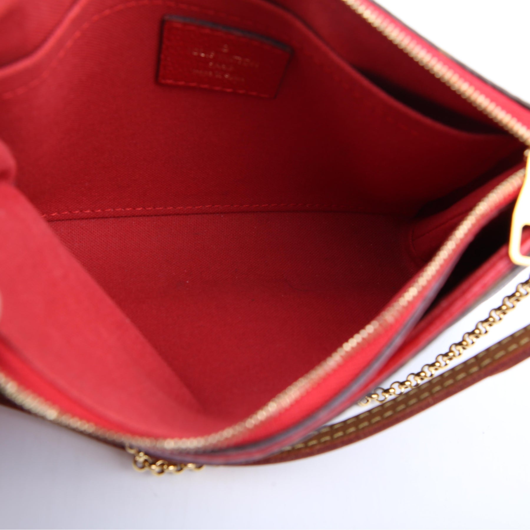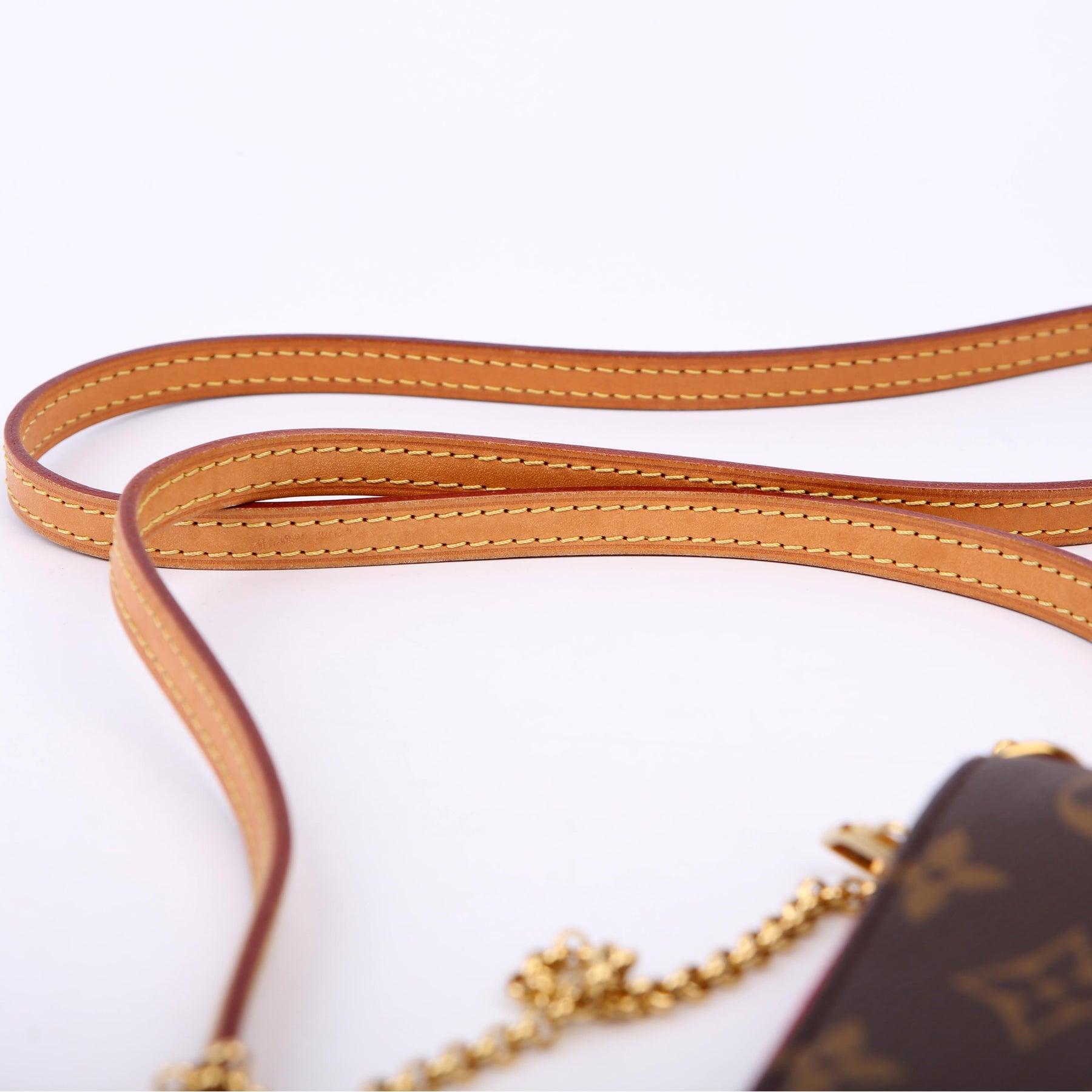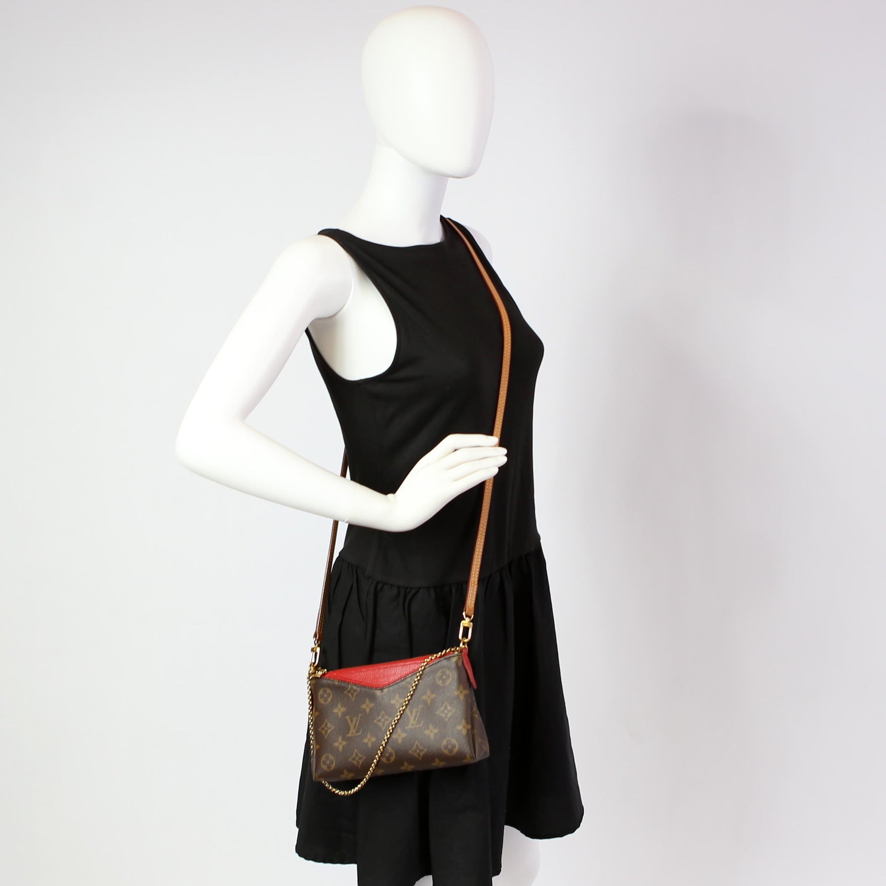 This pre-owned Louis Vuitton Pallas Clutch is guaranteed 100% authentic. The exterior is in the classic Monogram coated canvas.
