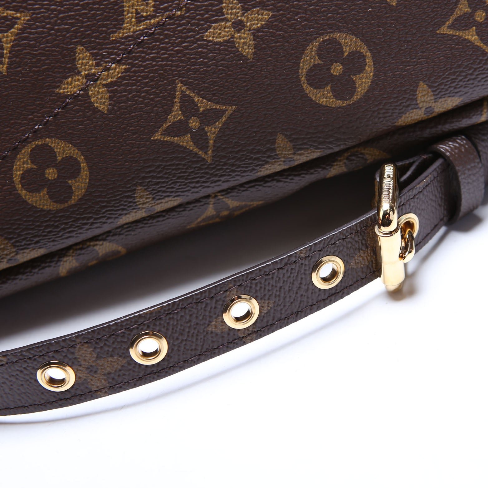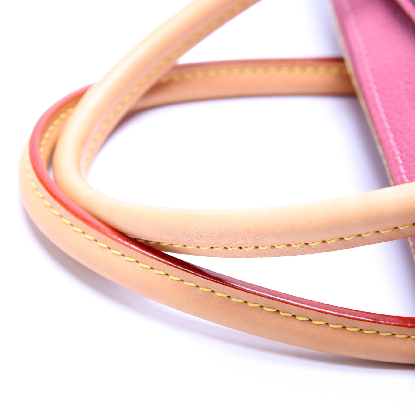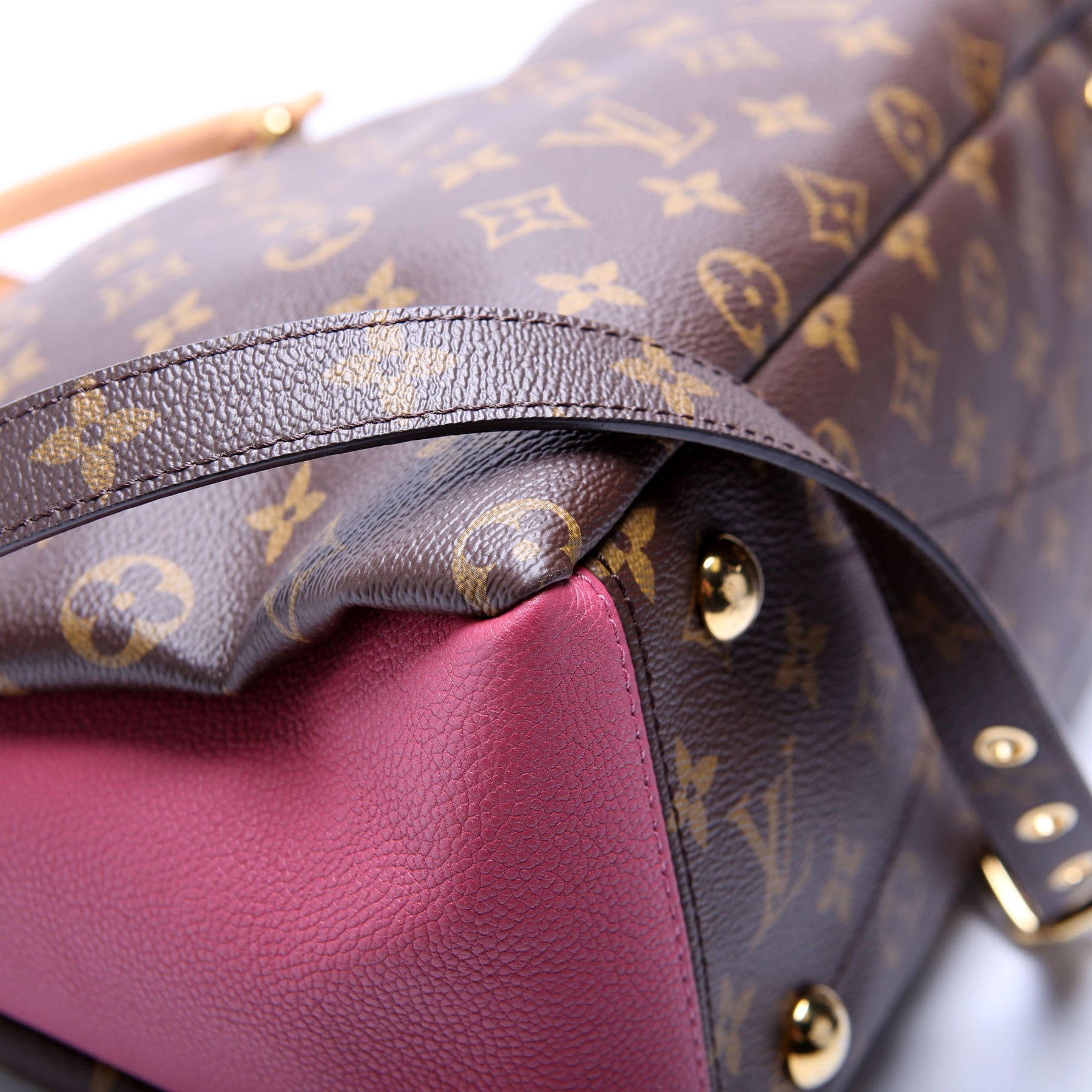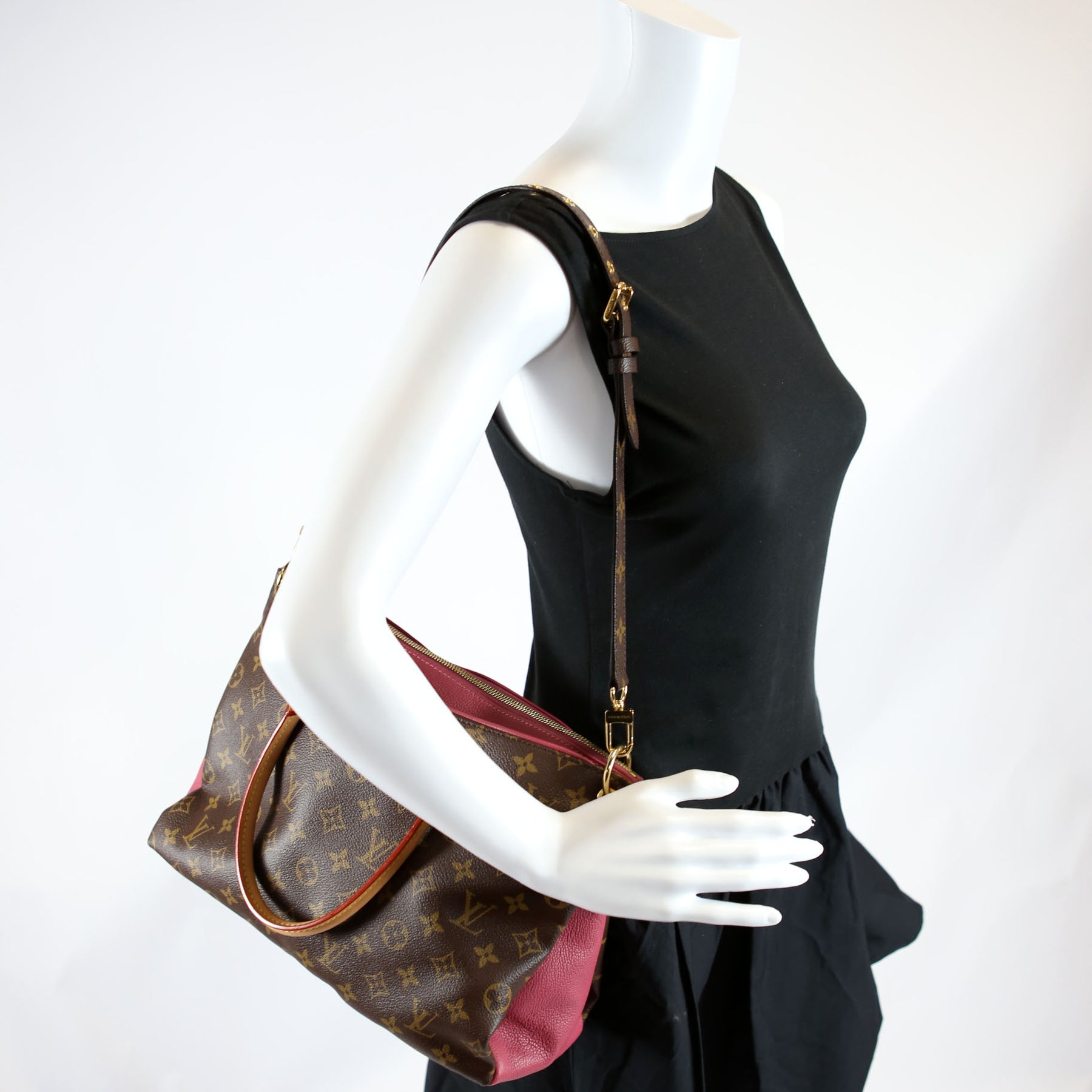 This pre-owned Louis Vuitton Pallas Tote Leather Side is guaranteed 100% authentic. The exterior is in the classic Louis Vuitton Monogram coated canvas.