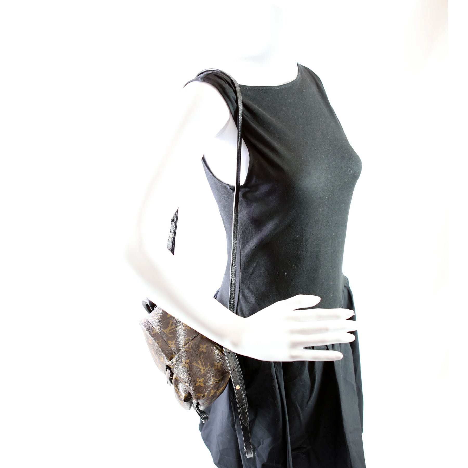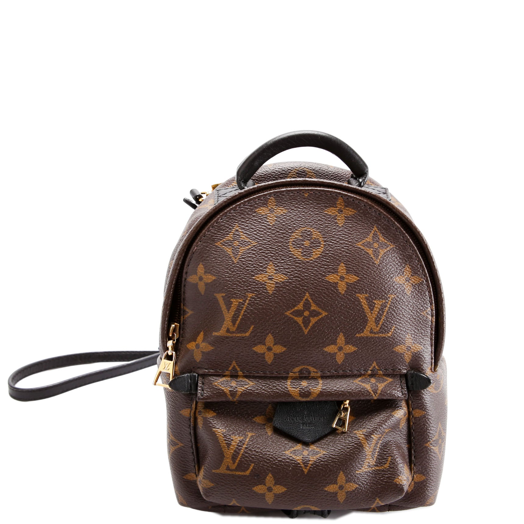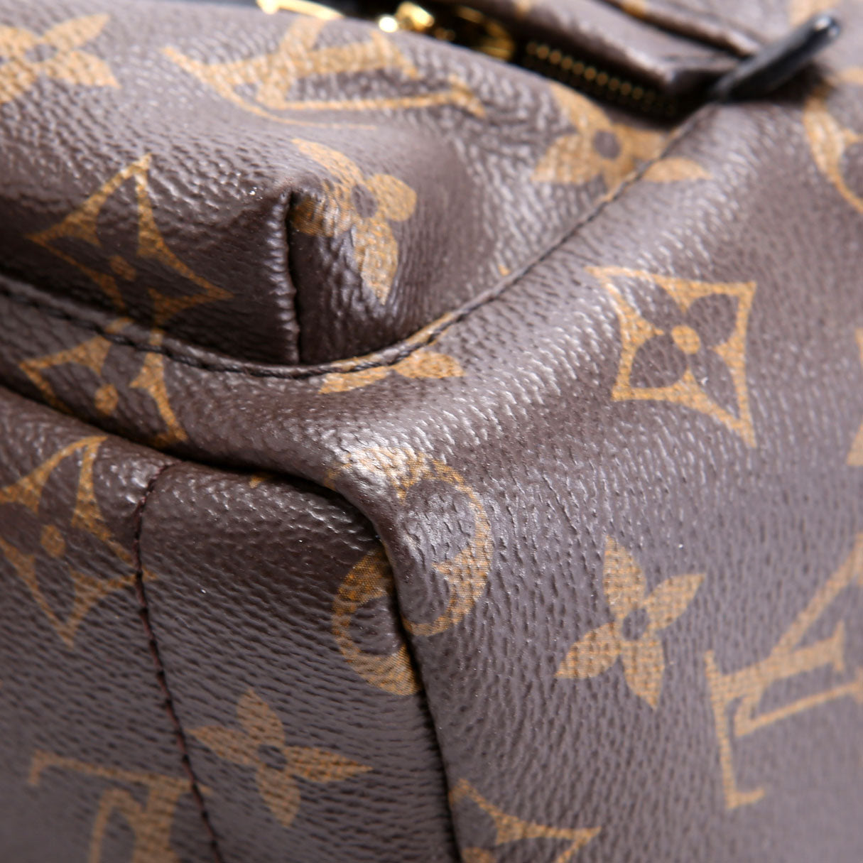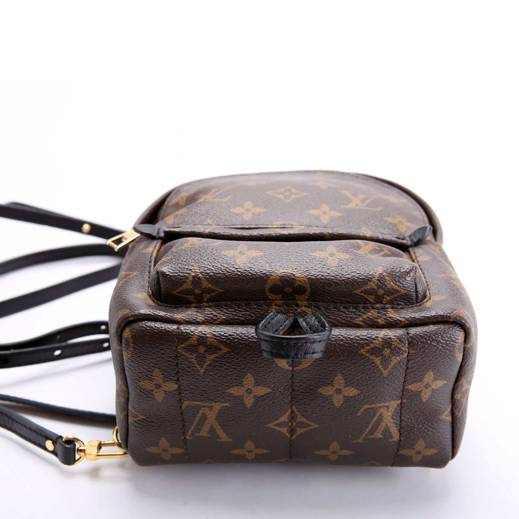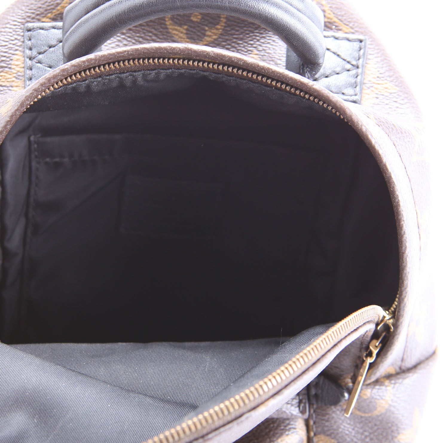 This pre-owned Louis Vuitton Palm Springs Mini is guaranteed 100% authentic. The exterior is in the classic Louis Vuttion Coated Canvas Monogram
