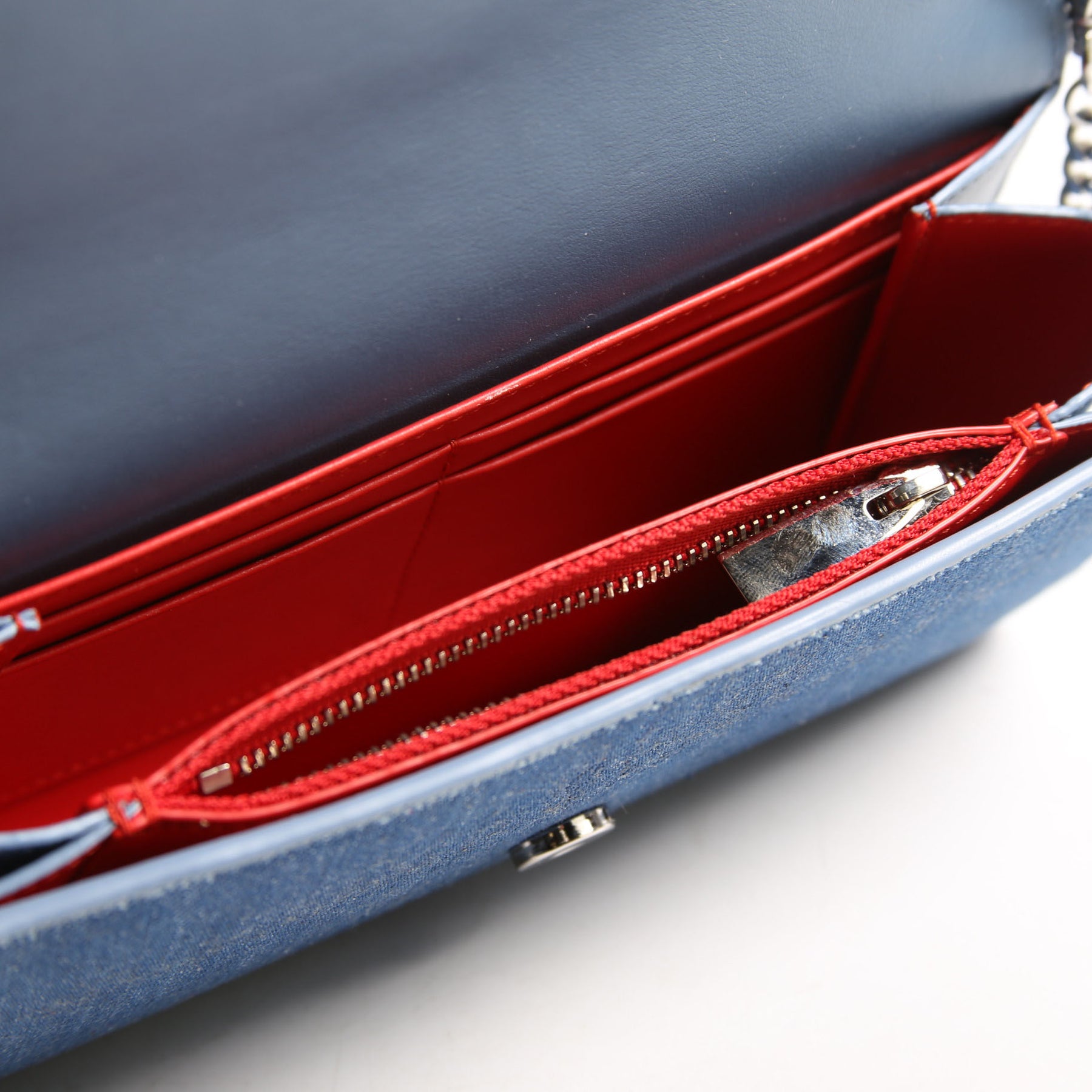 This pre-owned Christian Louboutin Paloma Denim Wallet On Chain is guaranteed 100% authentic.