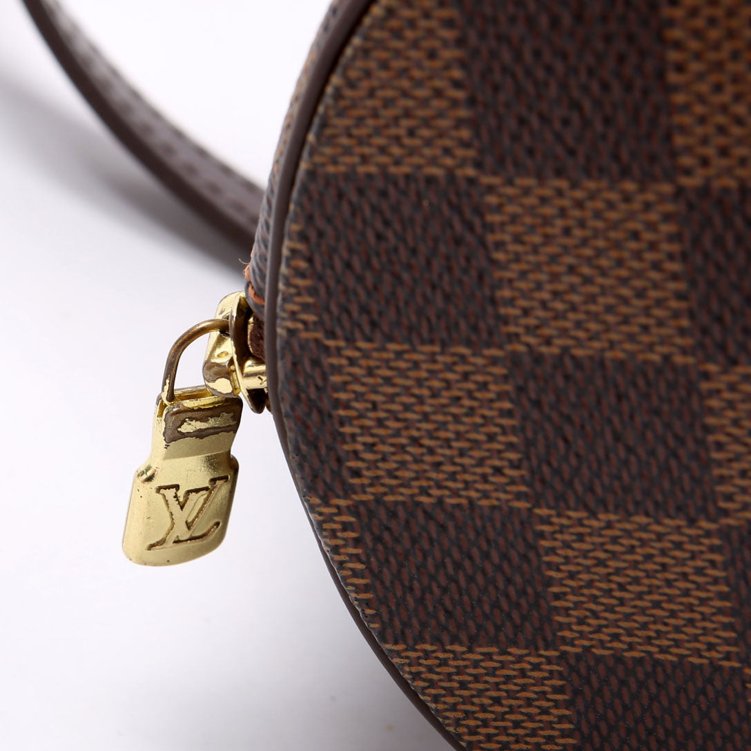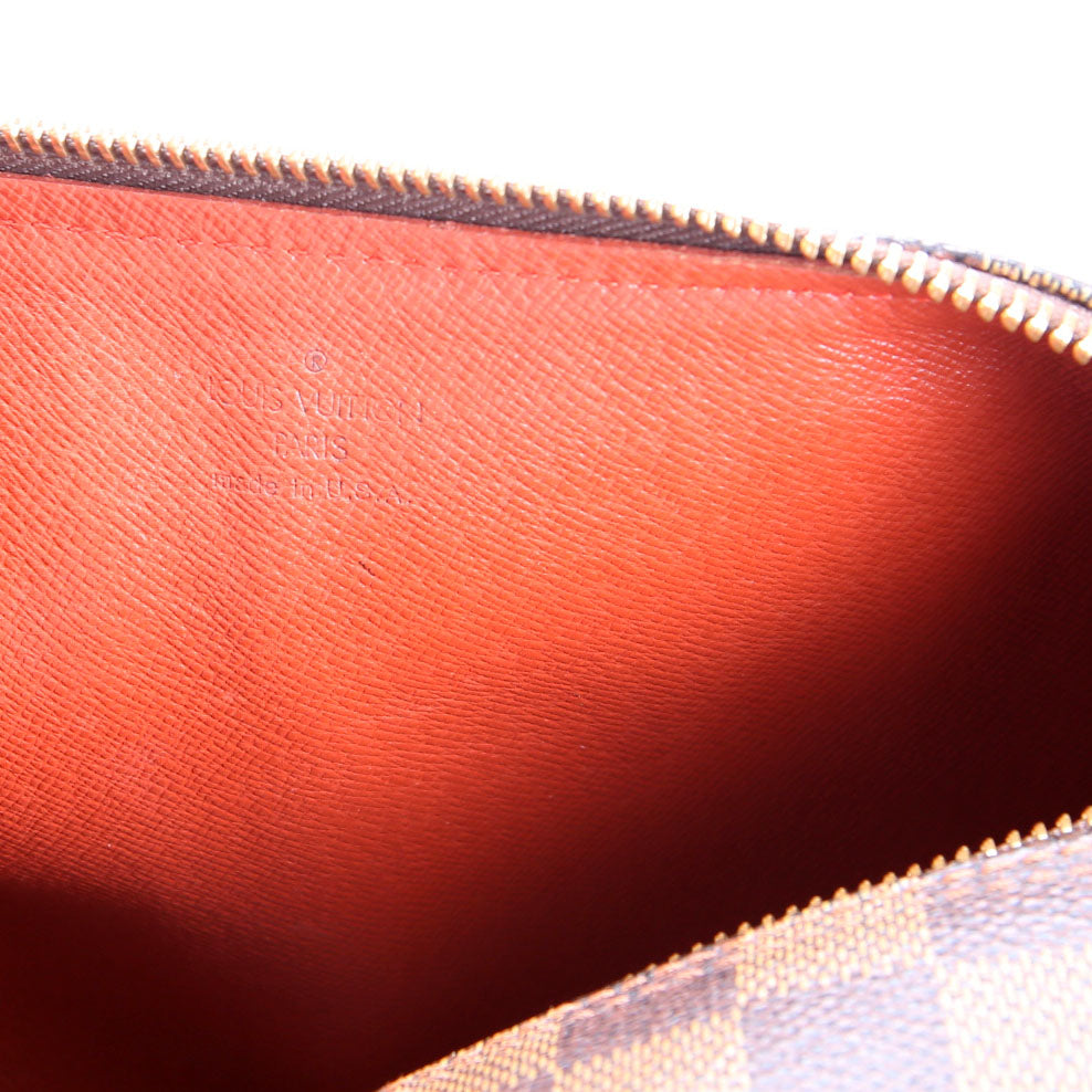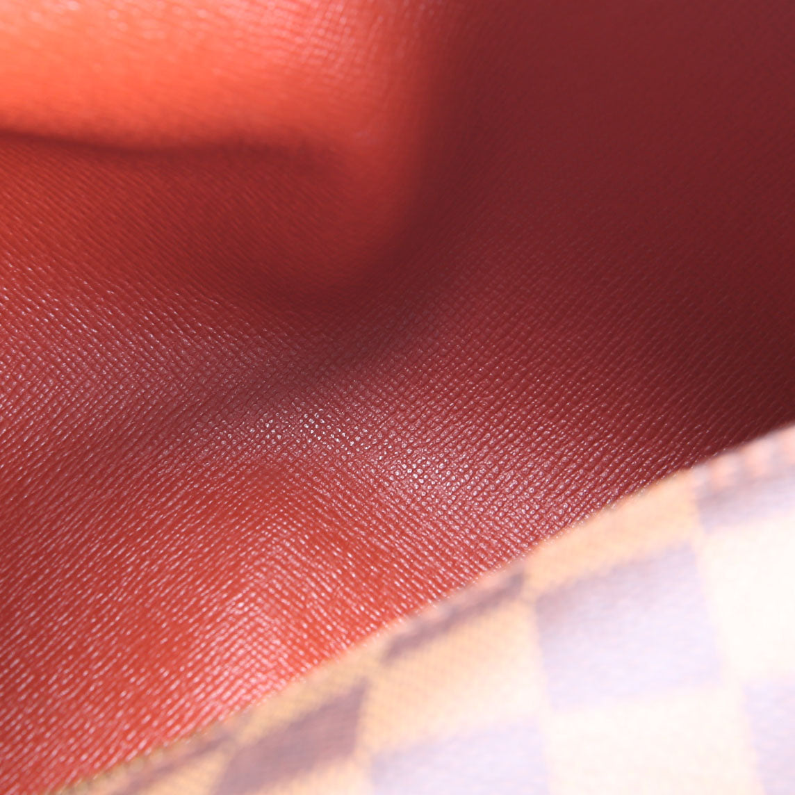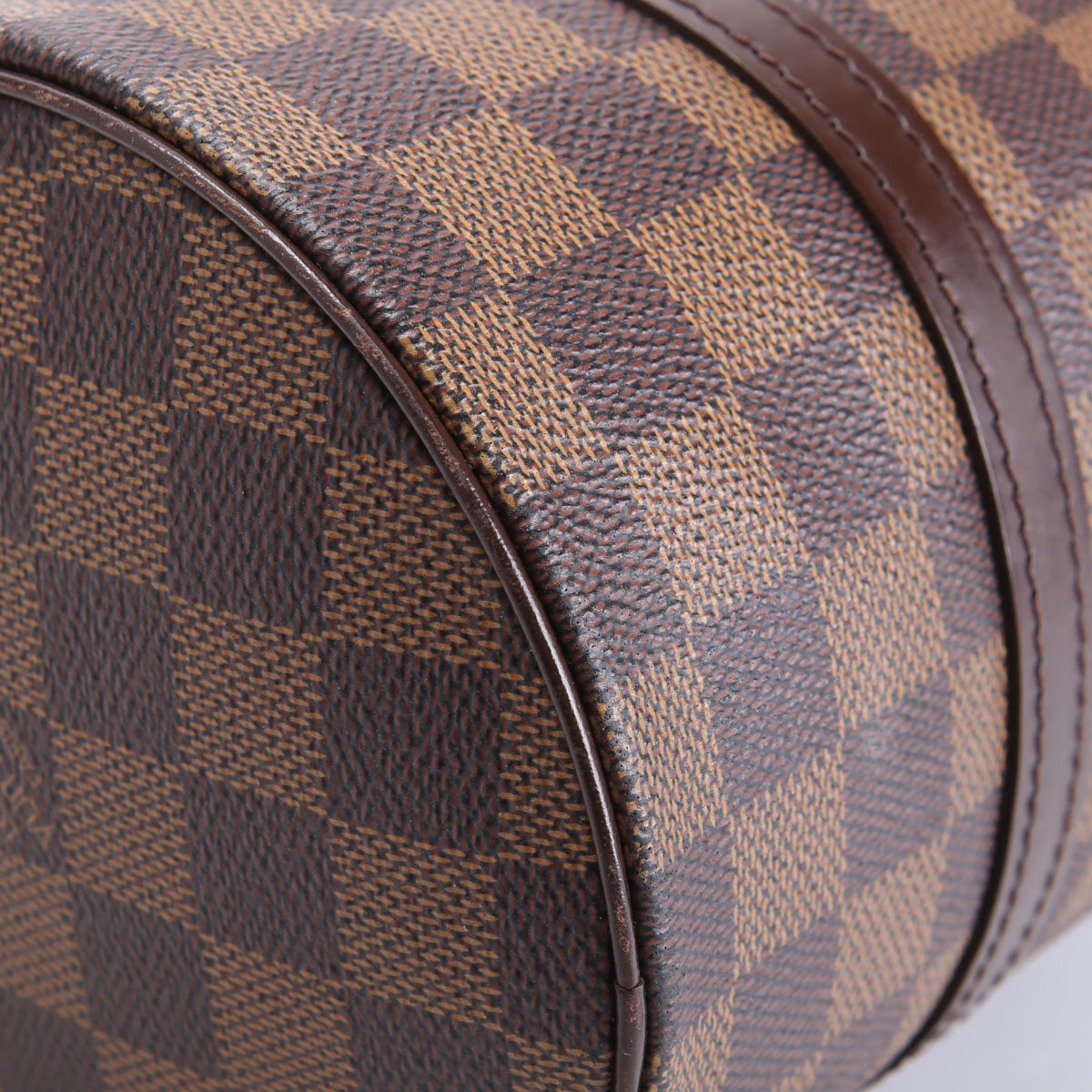 This pre-owned Louis Vuitton Papillon 26 10.5 is guaranteed 100% authentic. The exterior is in the classic Louis Vuitton Damier Ebene coated canvas.