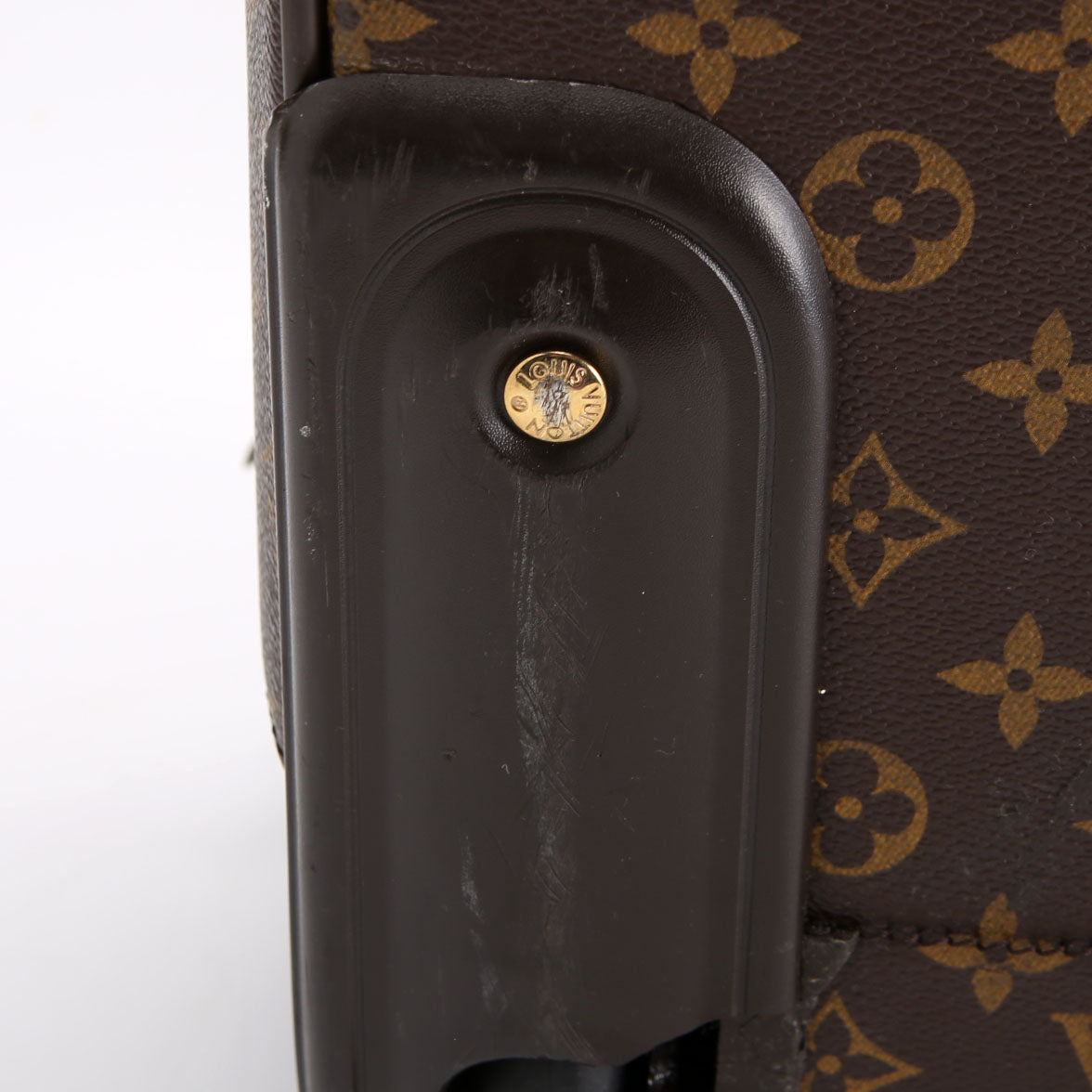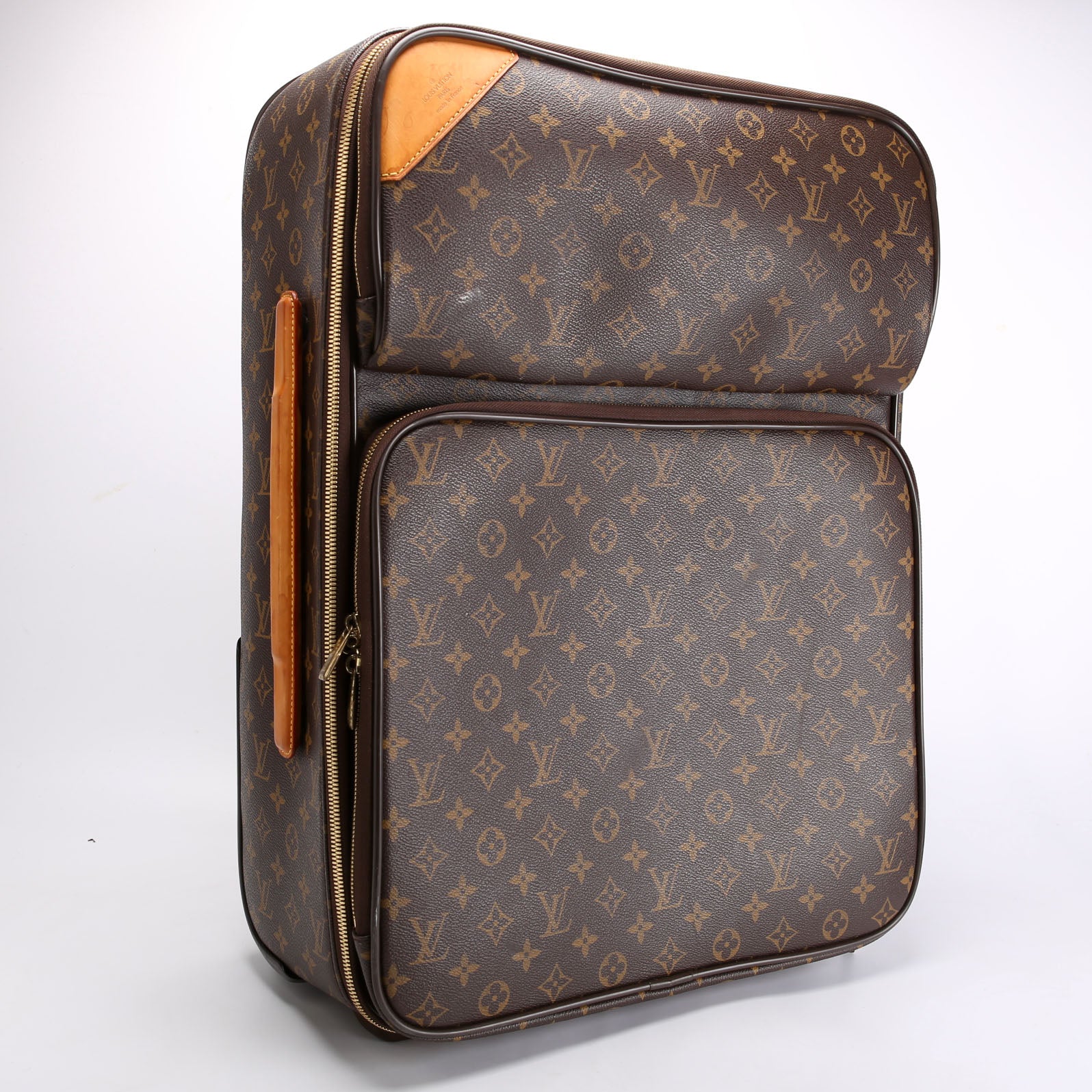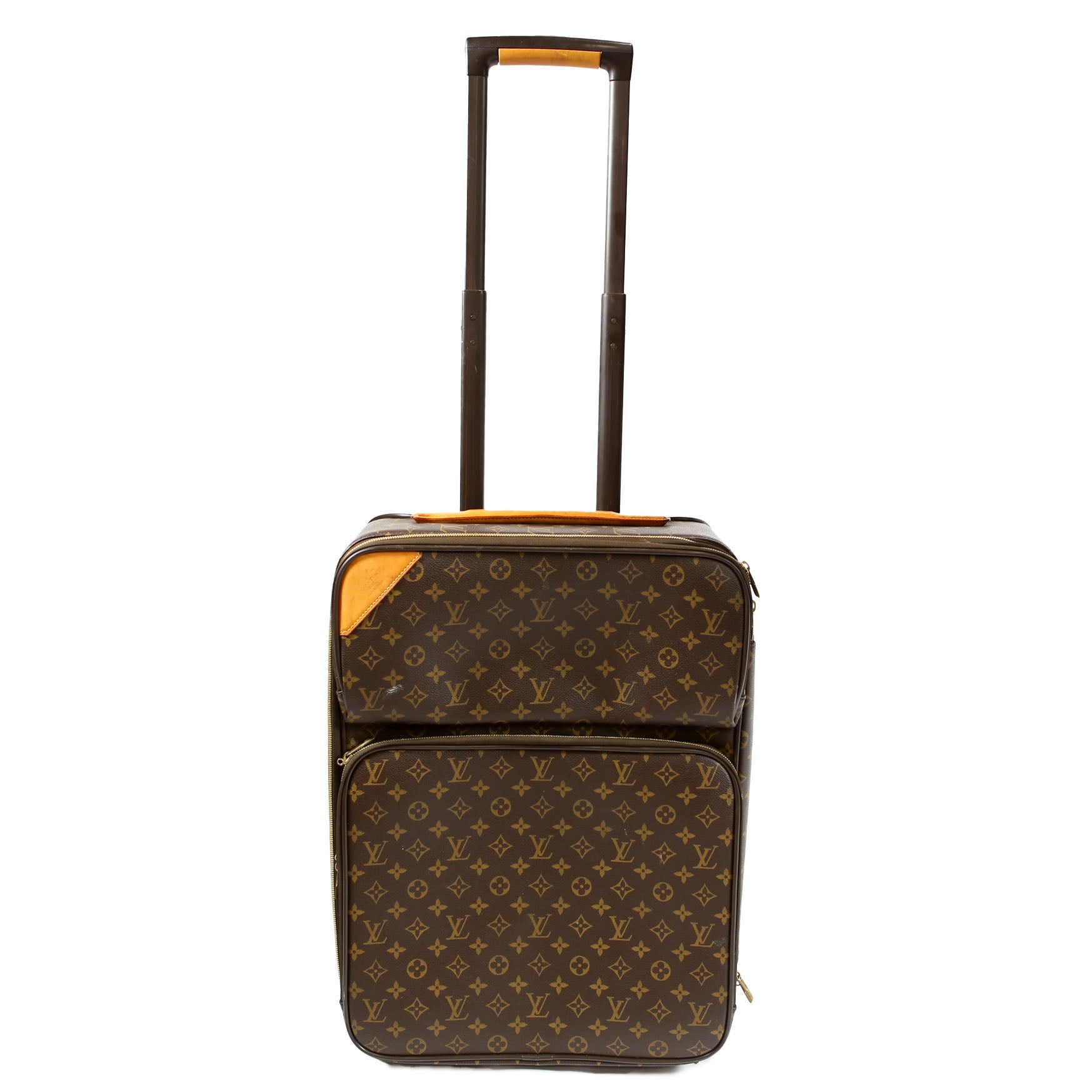 This pre-owned Louis Vuitton Pegase Legere 55 Business is guaranteed 100% authentic. The exterior is in the classic Louis Vuitton Monogram coated canvas.