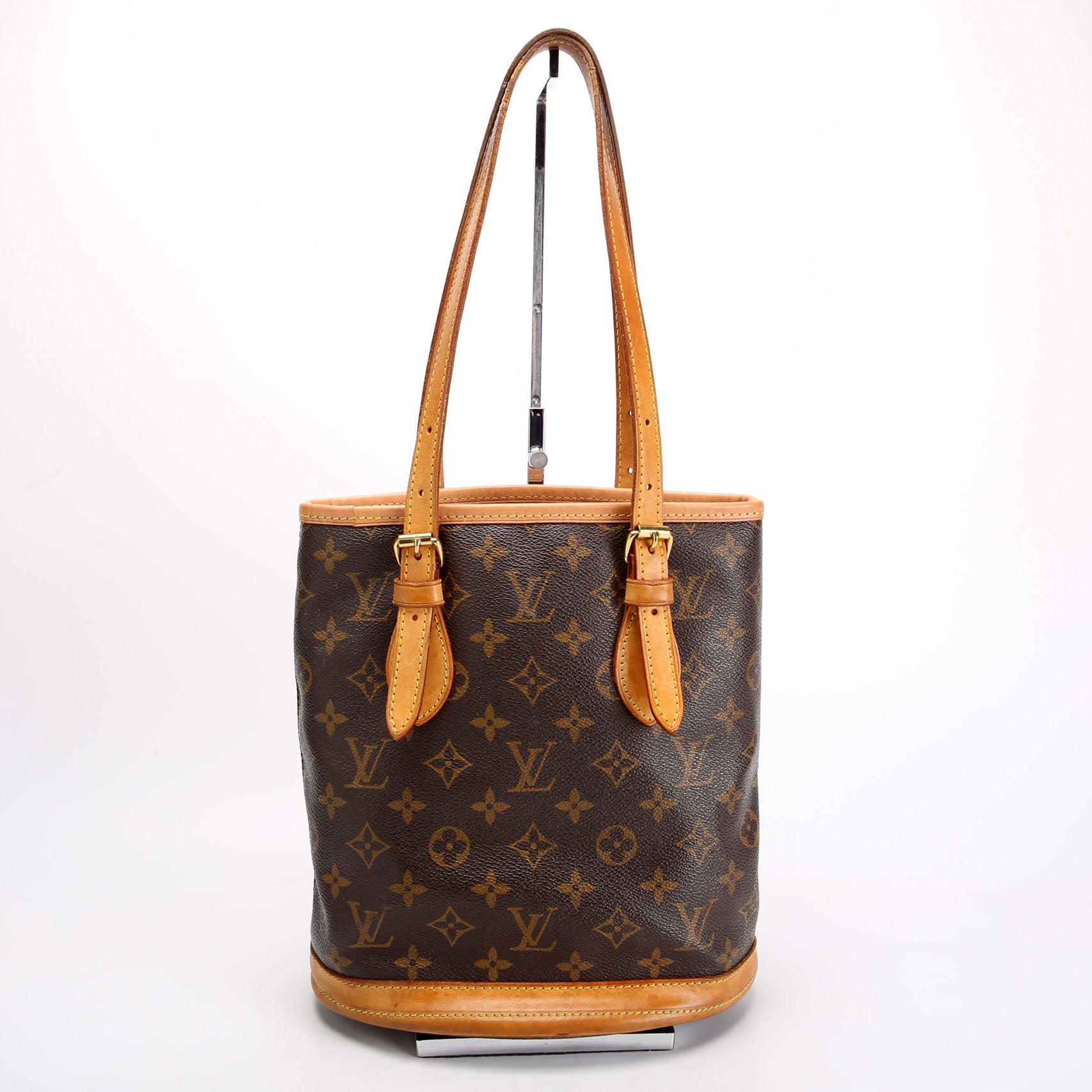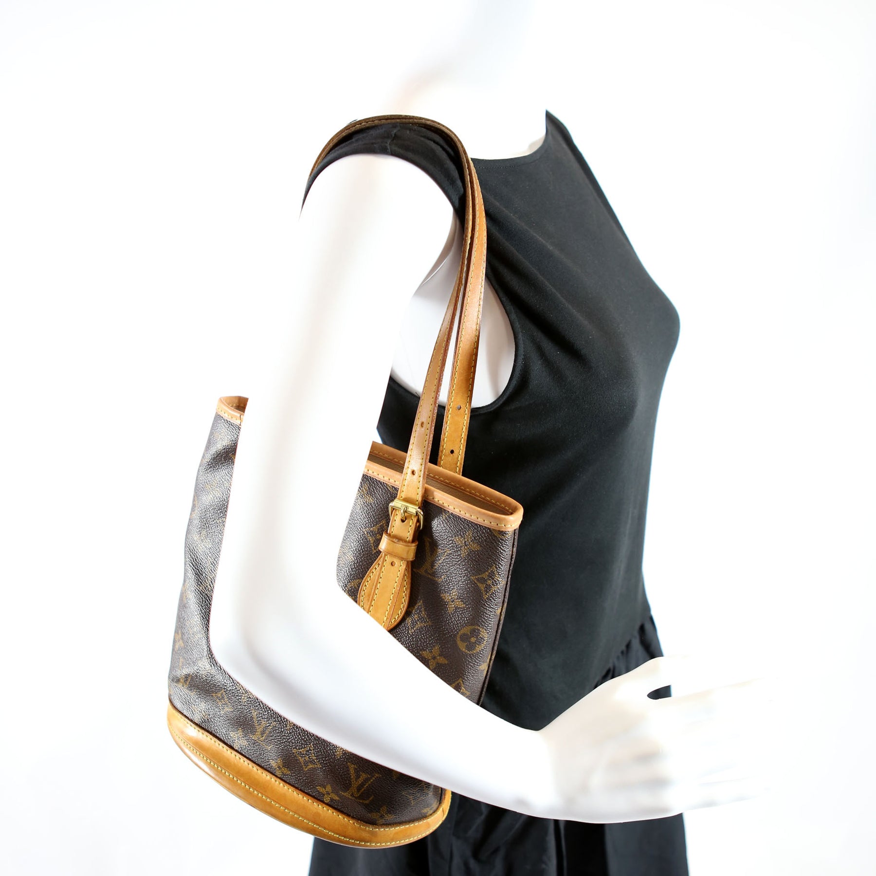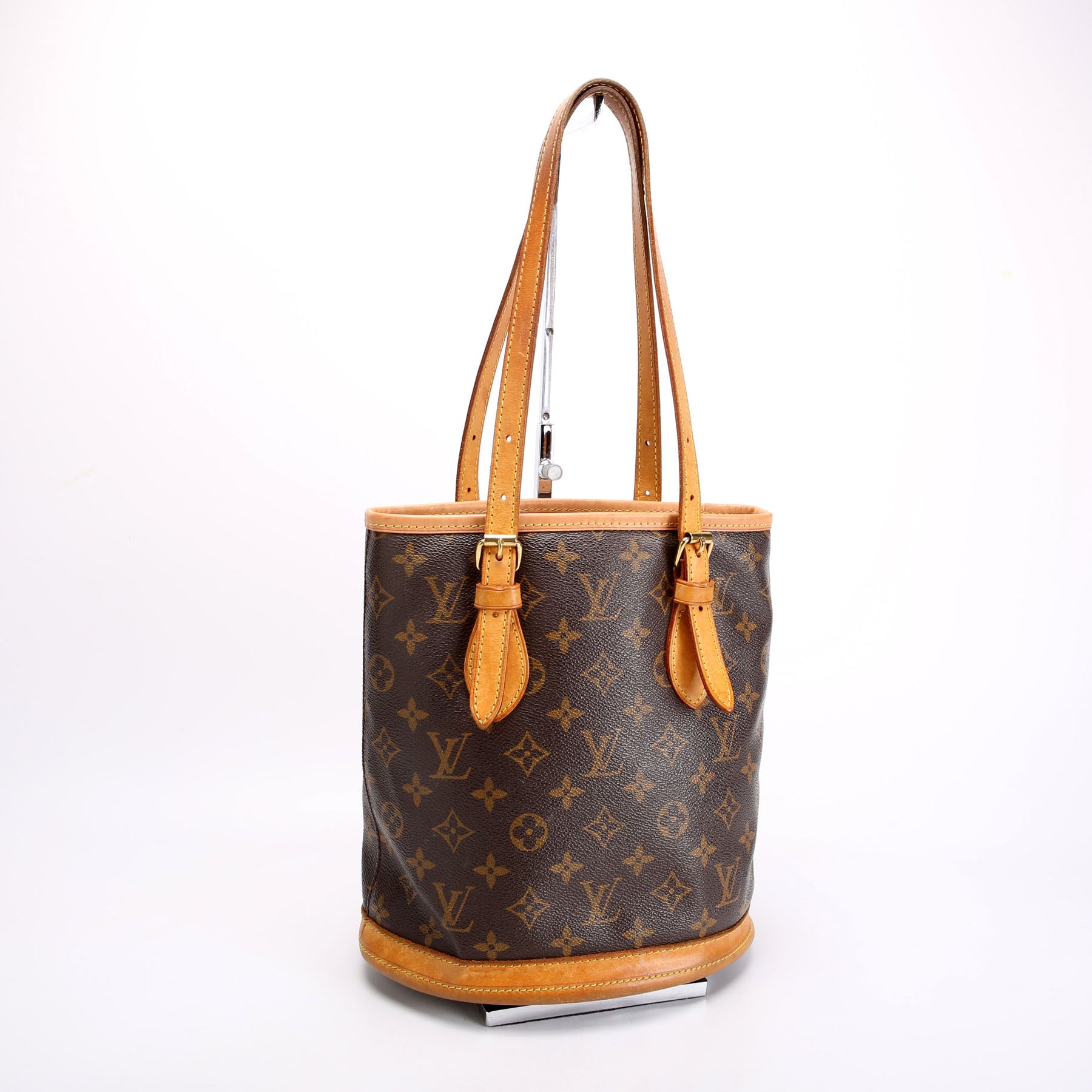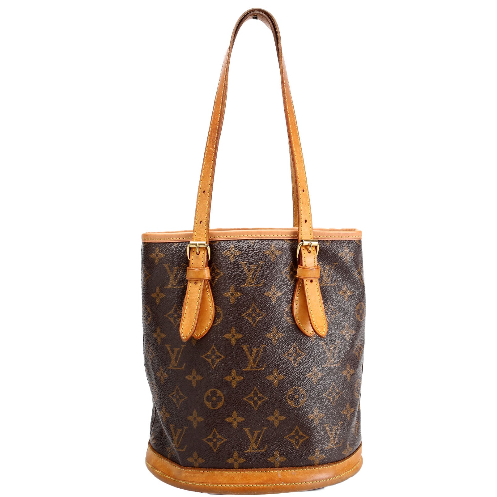 This pre-owned Louis Vuitton Petit Bucket is guaranteed 100% authentic. The exterior is in the classic Coated Canvas Monogram