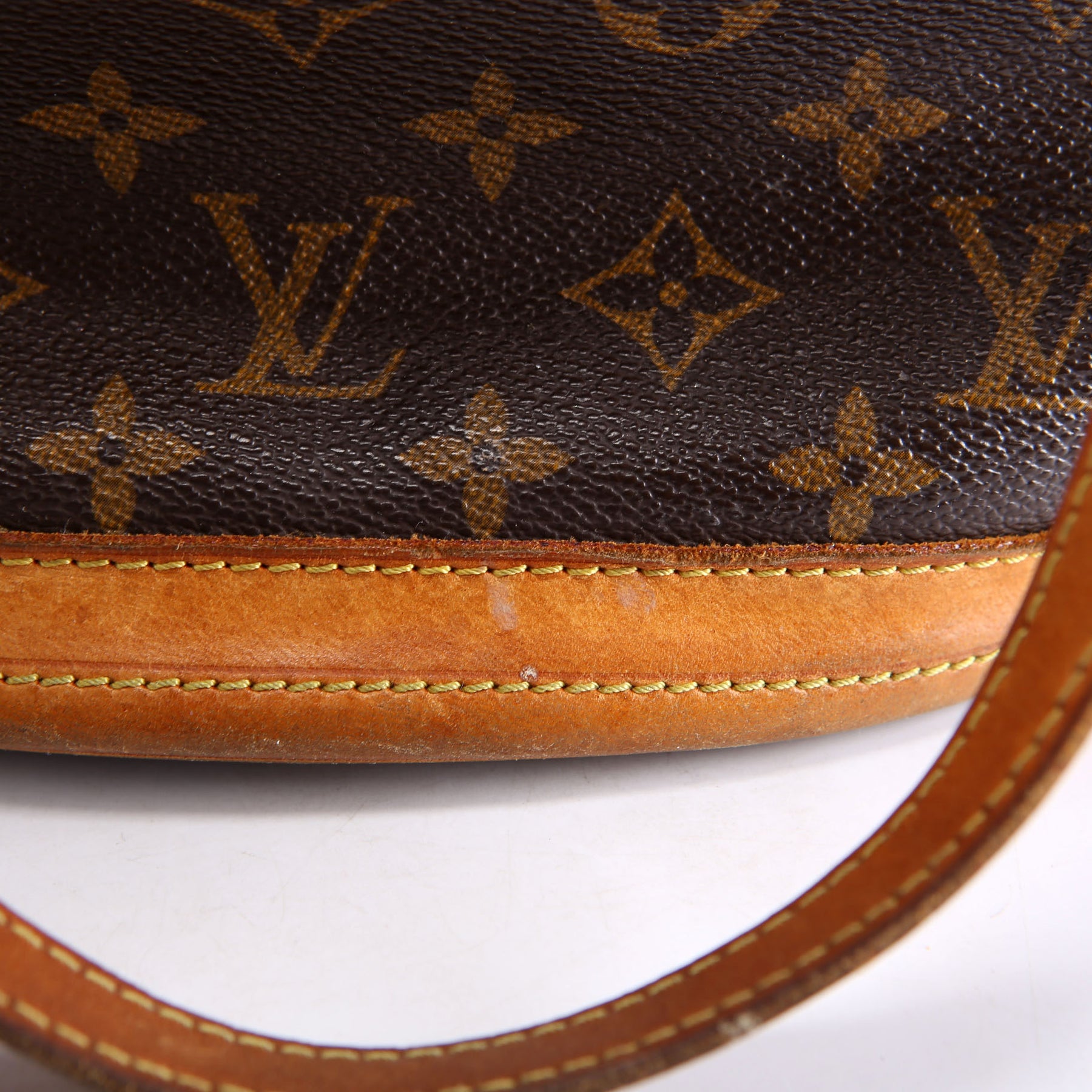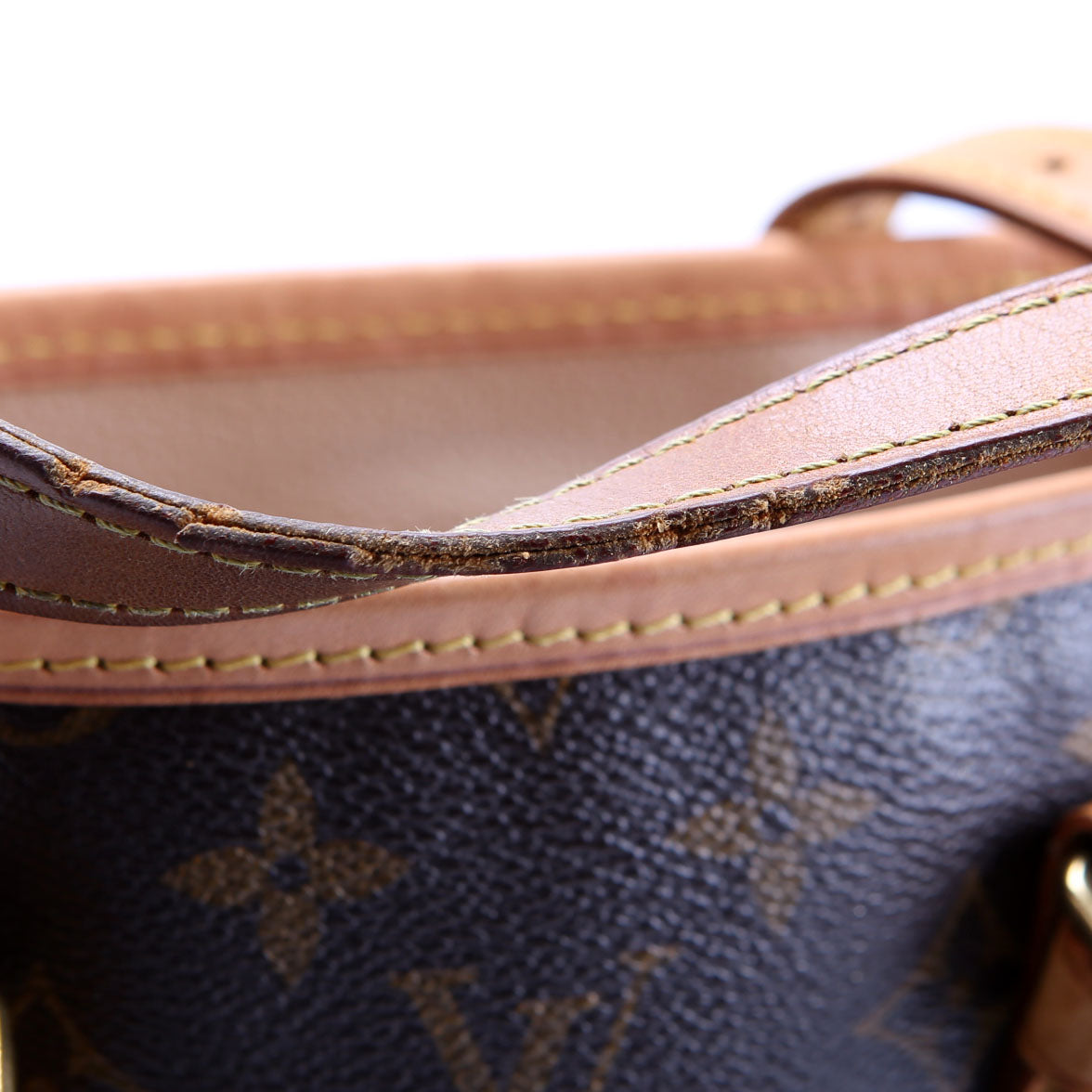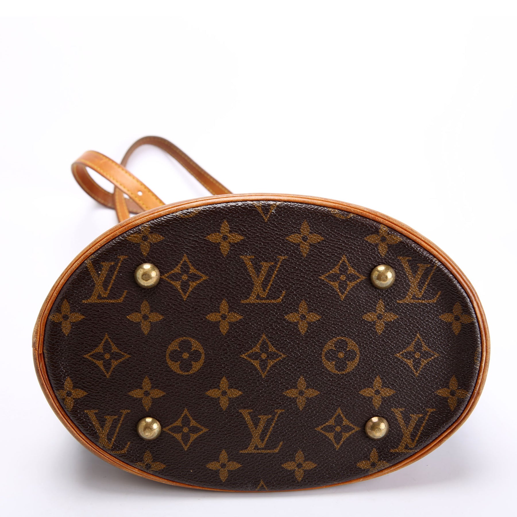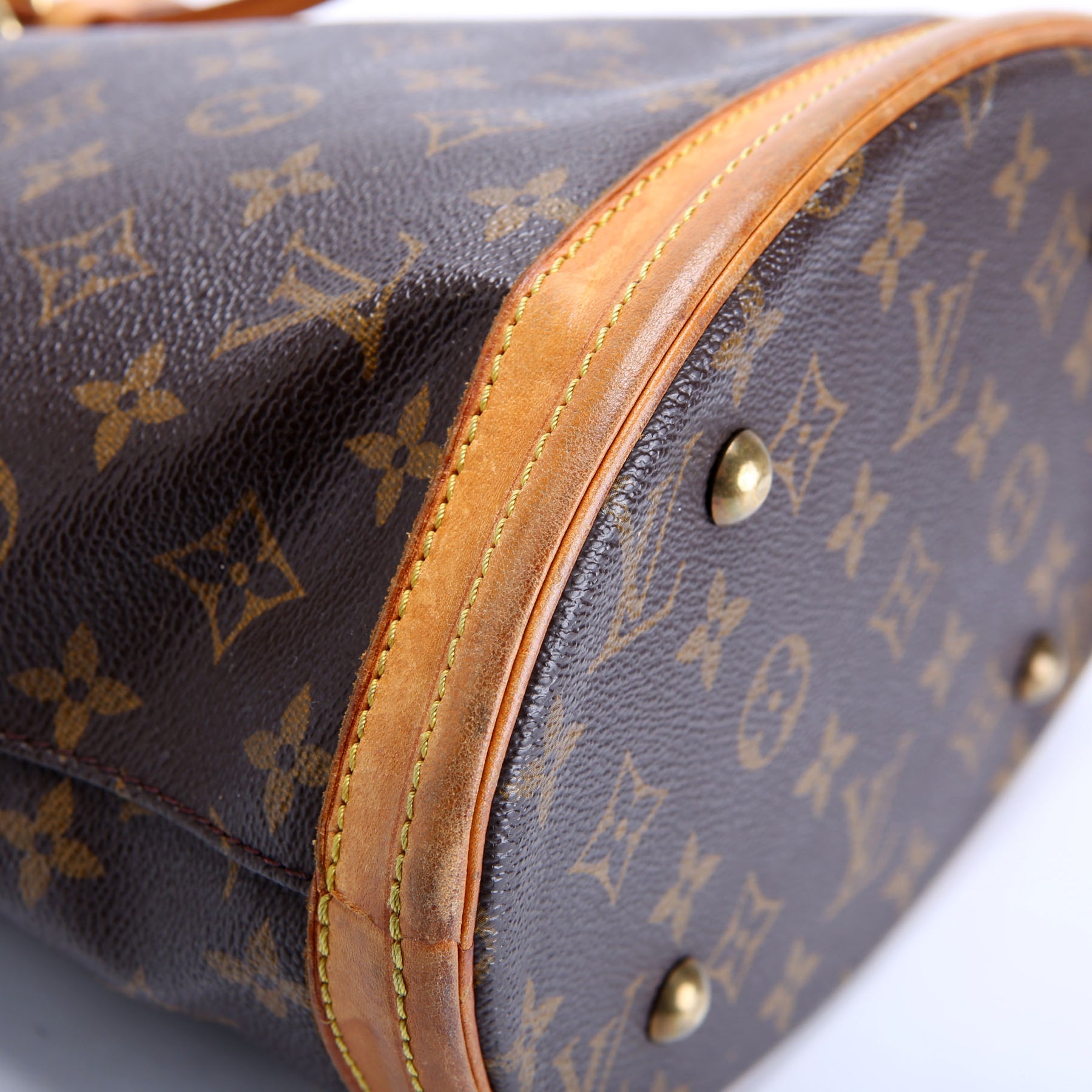 This pre-owned Louis Vuitton Petit Bucket is guaranteed 100% authentic. The exterior is in the classic Coated Canvas Monogram