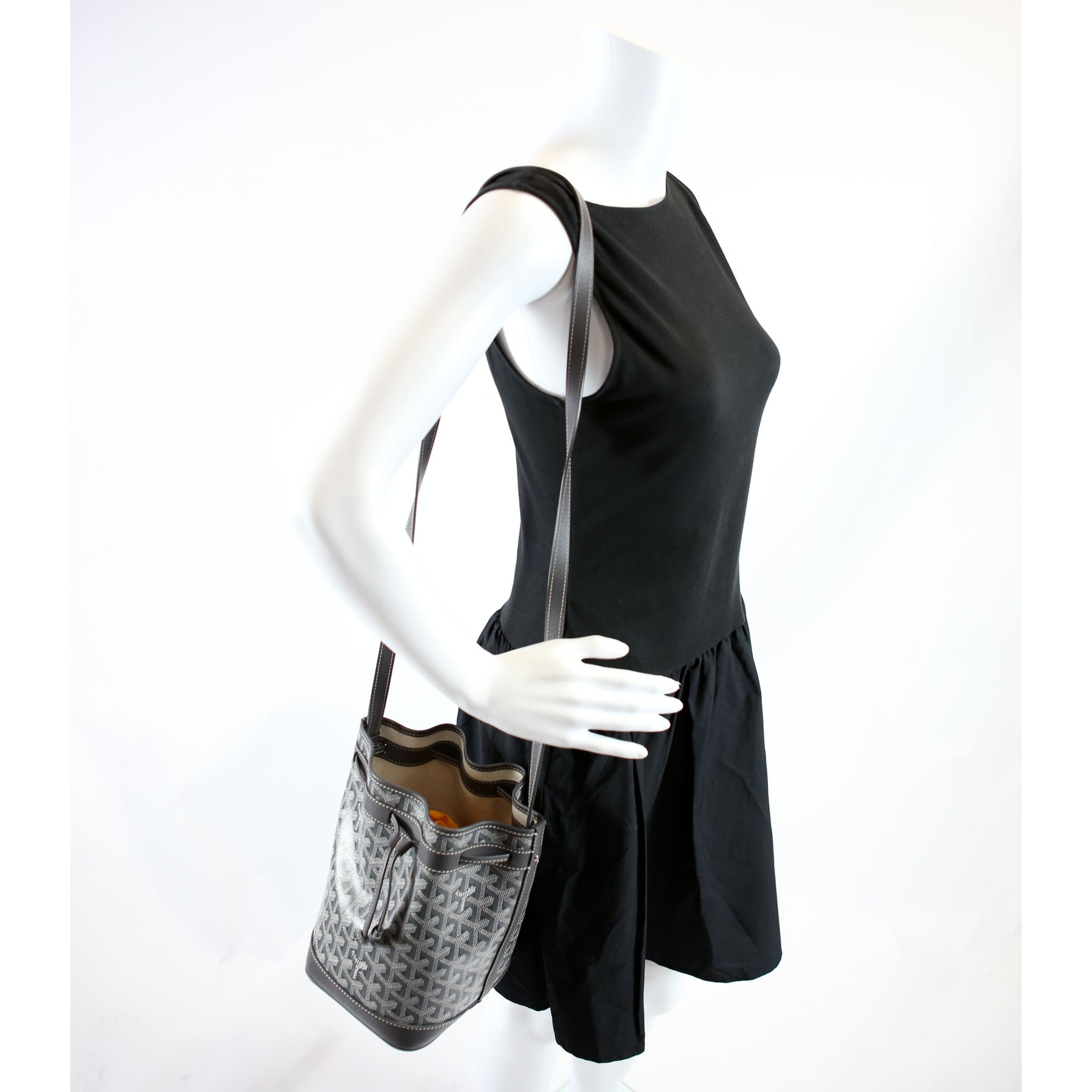 This pre-owned Goyard Petit Flot PM Goyardine is guaranteed 100% authentic. The exterior is in the classic Goyard Goyardine Canvas.