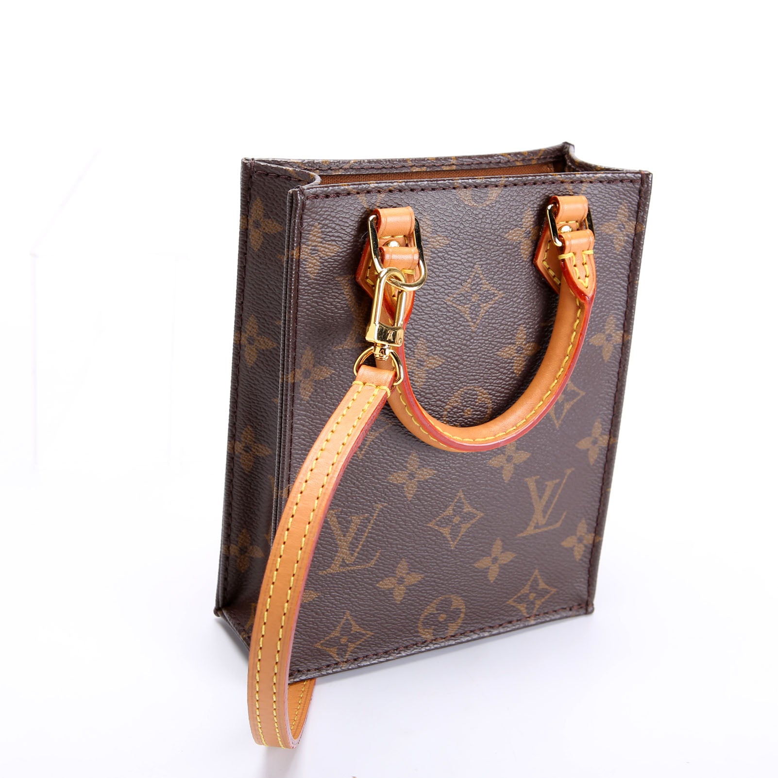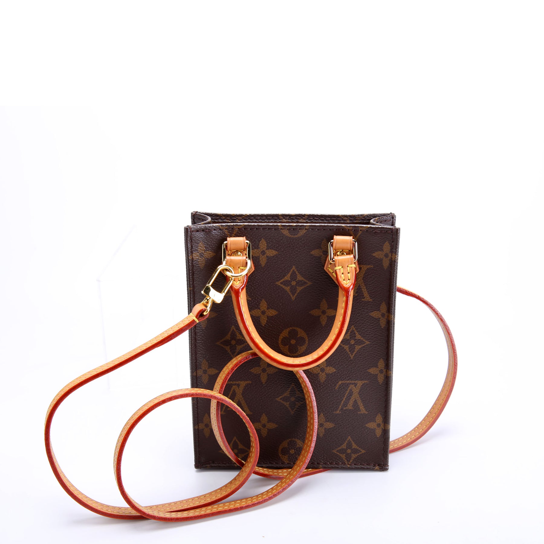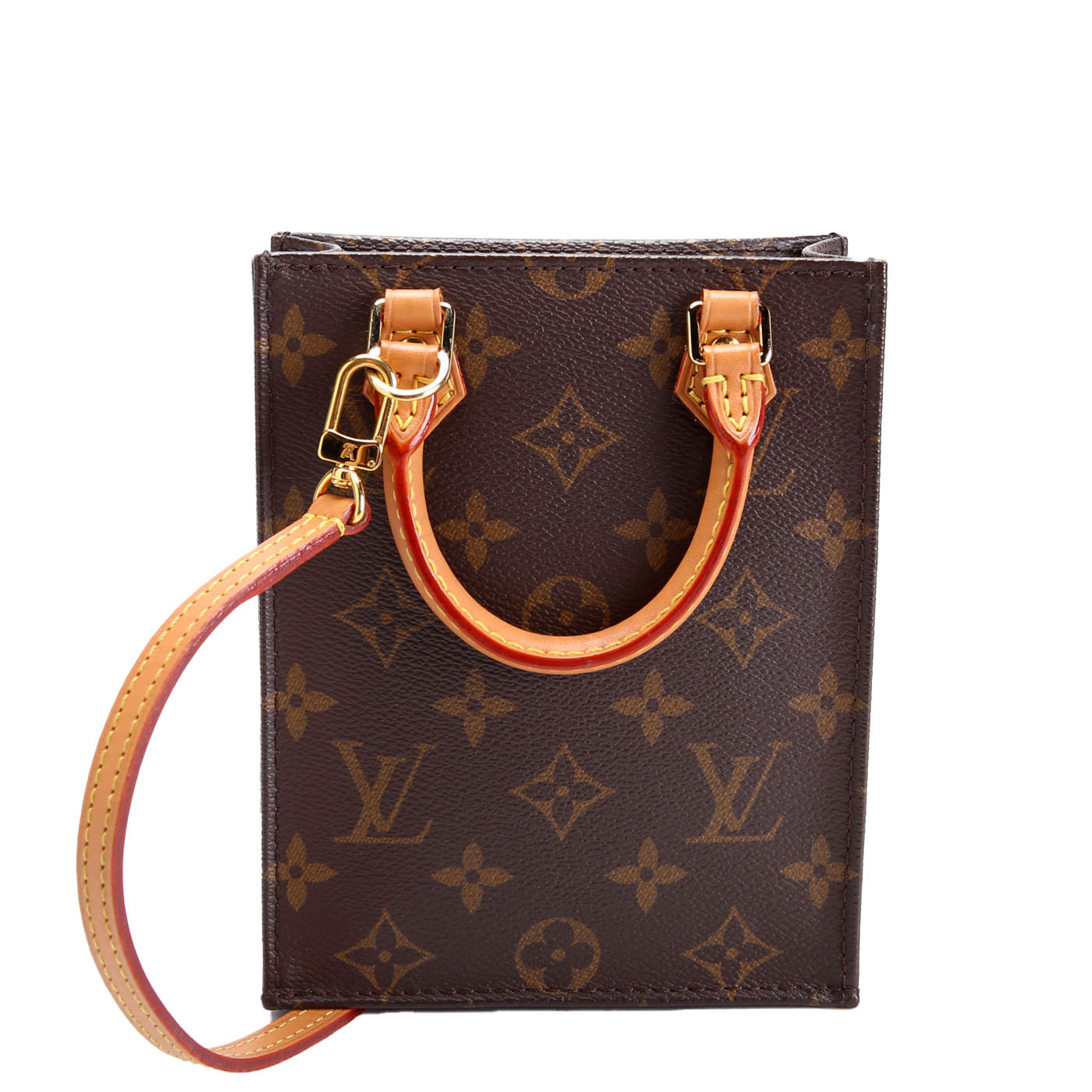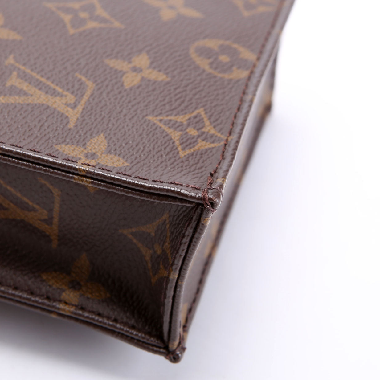 This pre-owned Louis Vuitton Petit Sac Plat is guaranteed 100% authentic. The exterior is in the classic Louis Vuitton Monogram coated canvas.