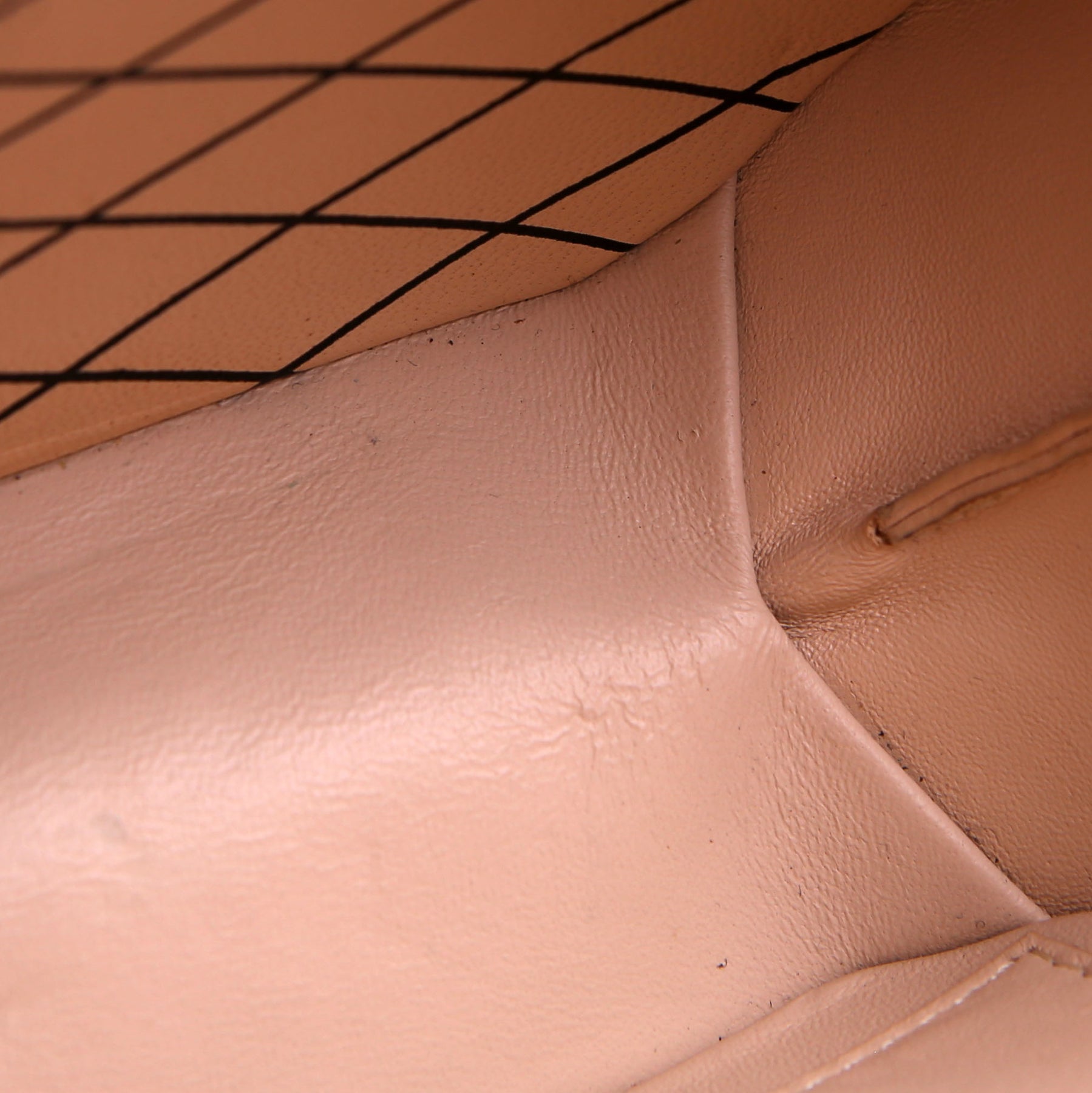 Interior: The interior leather has minor scuffs throughout. It includes one open pocket.
