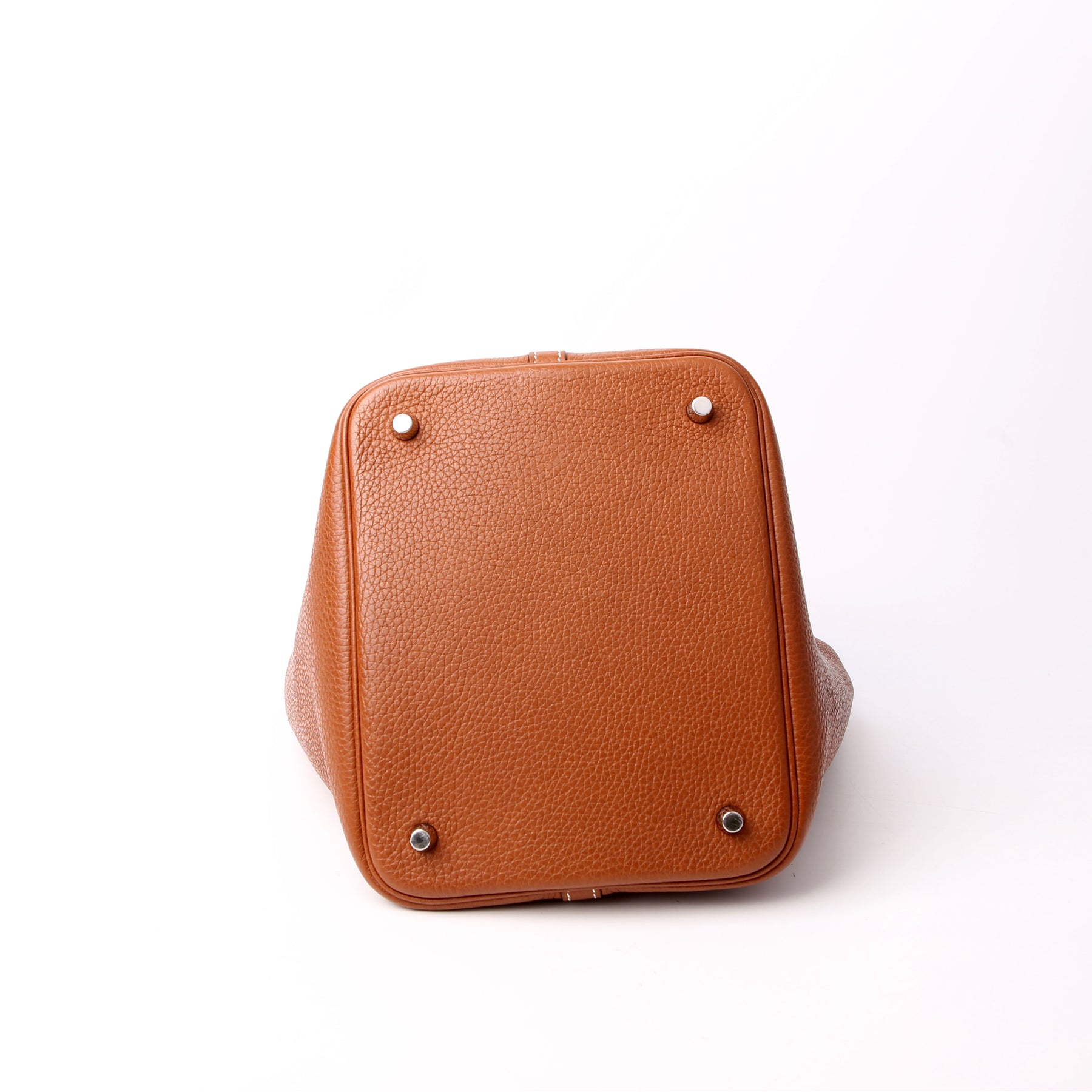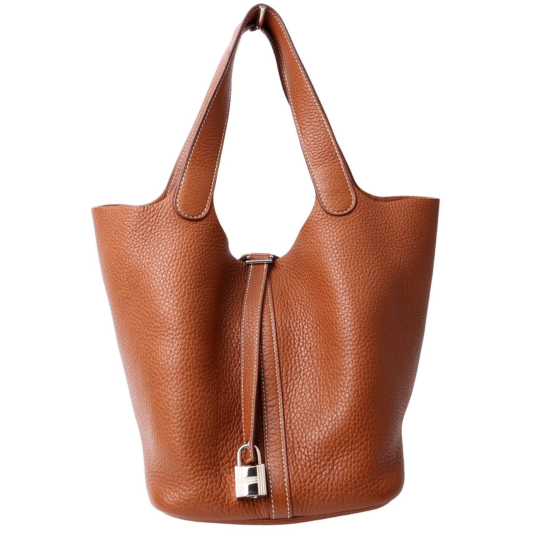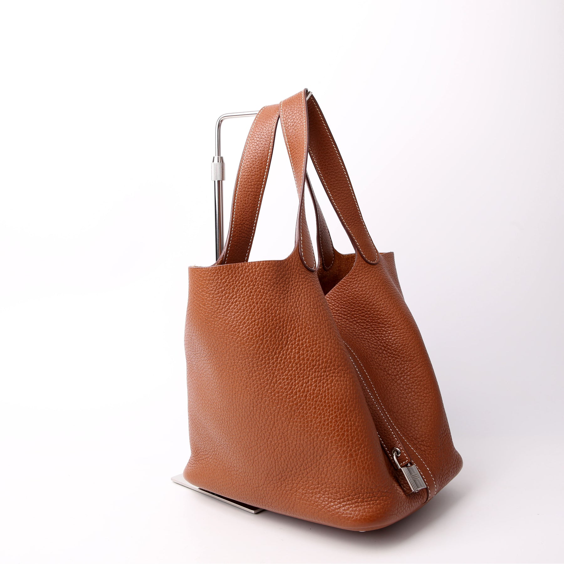 This pre-owned Hermes Picotin 18 is guaranteed 100% authentic. The exterior is in the classic Hermes Clemence leather.
