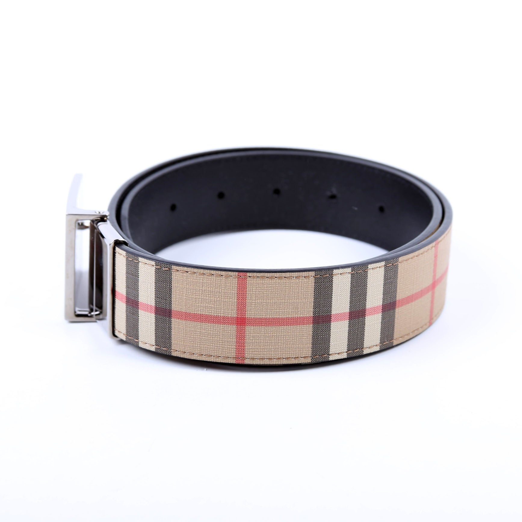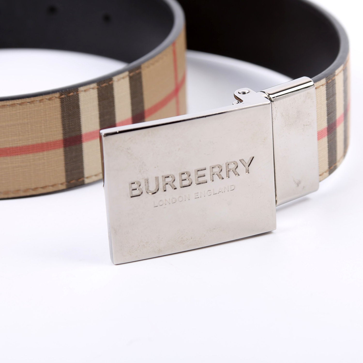 This pre-owned Burberry Plaque Buckle Vintage Check/Leather Reversible Belt is guaranteed 100% authentic.