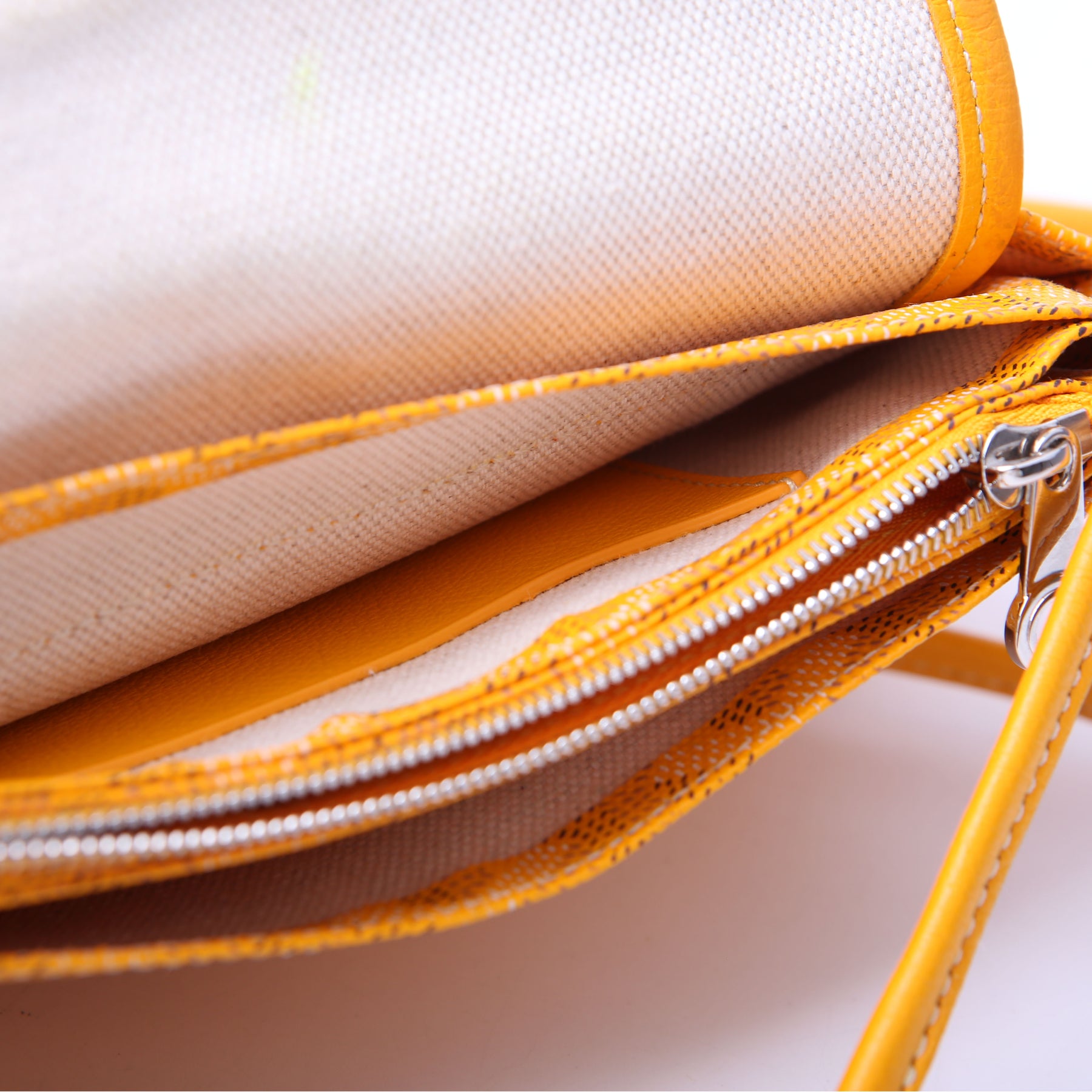 This pre-owned Goyard Plumet Pocket Wallet is guaranteed 100% authentic. The exterior is in the classic Goyard Goyardine coated canvas.