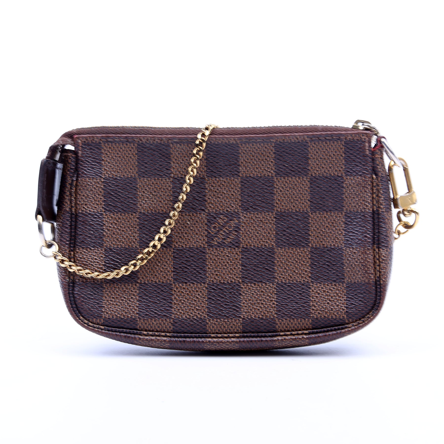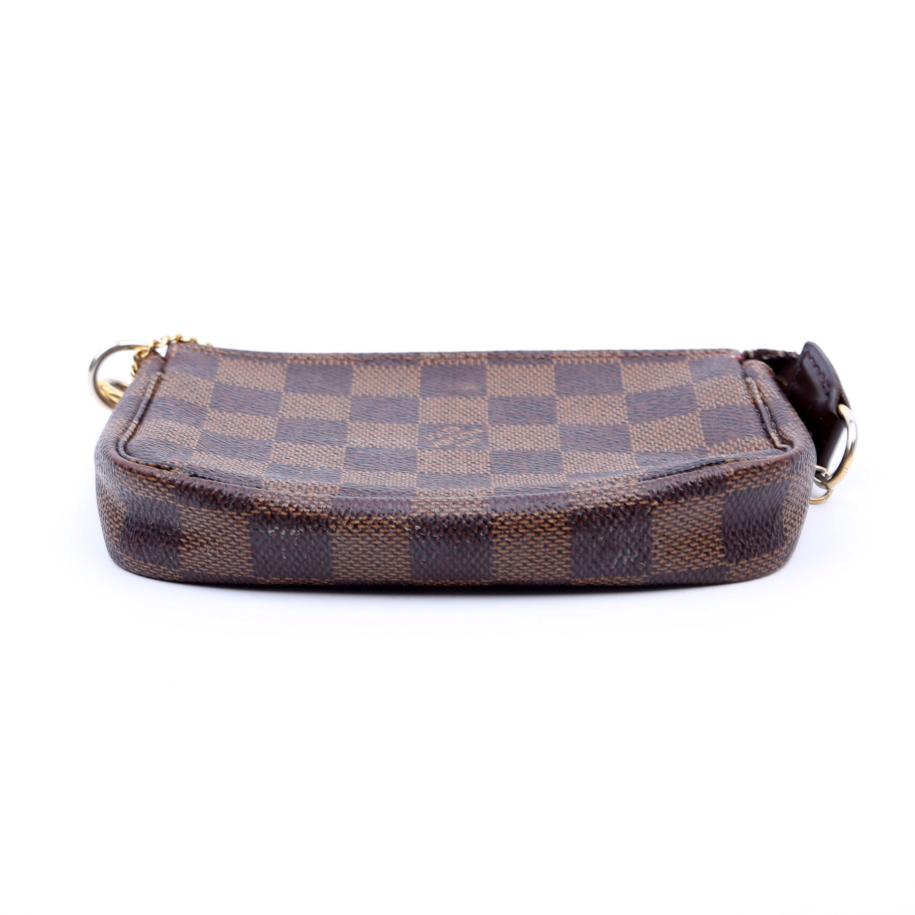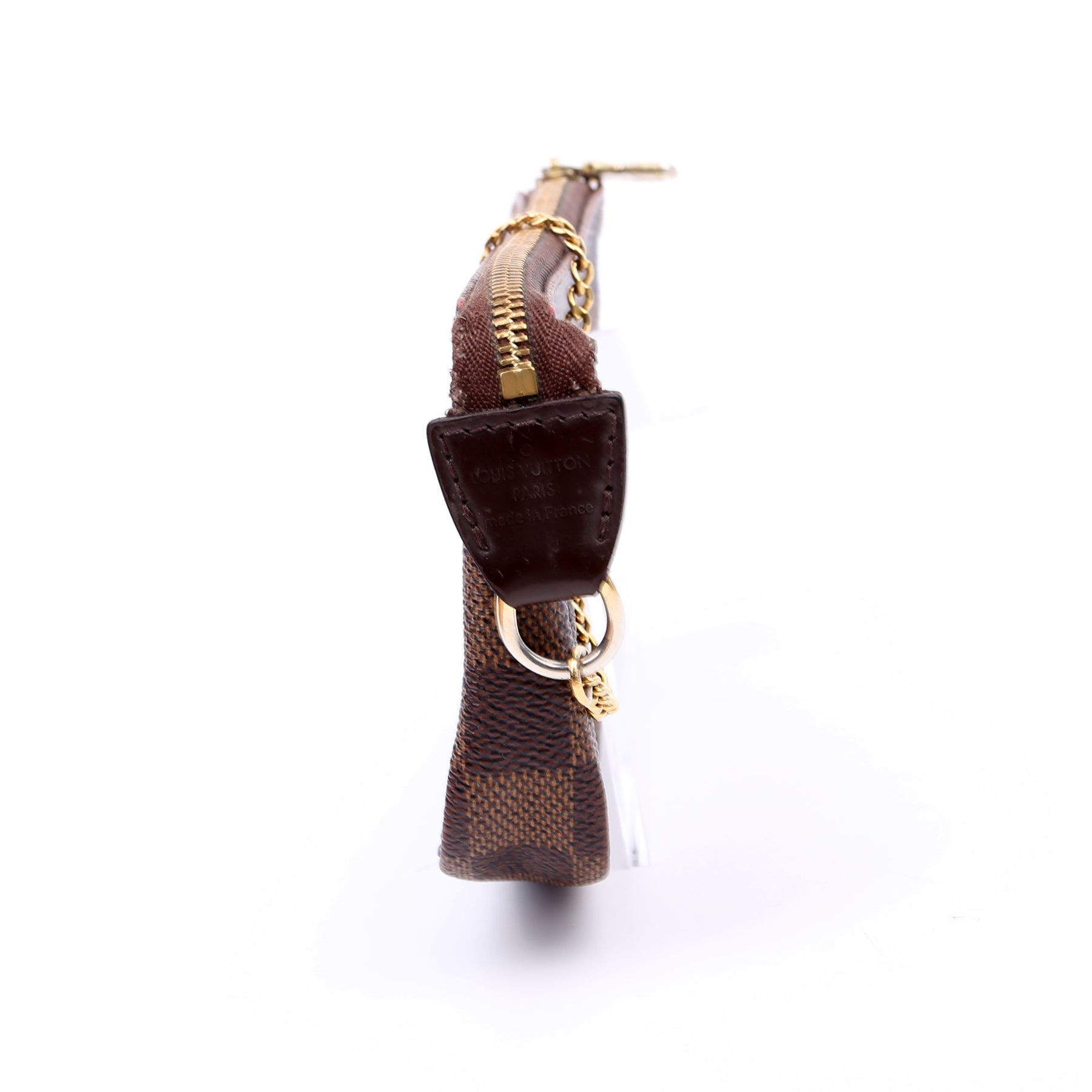 This pre-owned Louis Vuitton Pochette Accessories Mini is guaranteed 100% authentic. The exterior is in the classic Louis Vuitton Monogram coated canvas.