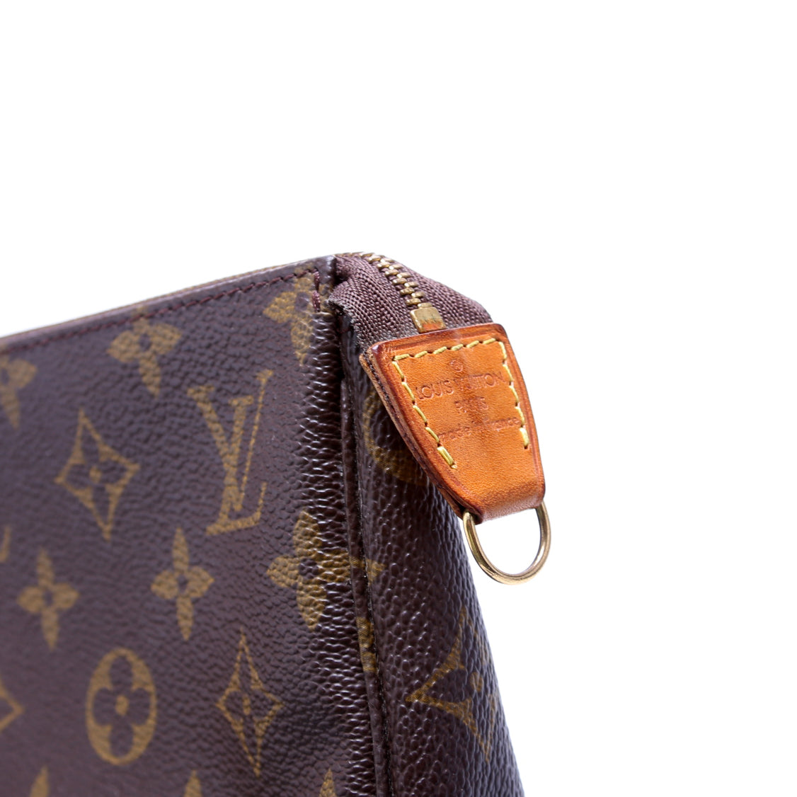 This pre-owned Louis Vuitton Pochette Accessories is guaranteed 100% authentic. The exterior is in the classic Louis Vuitton Monogram coated canvas.