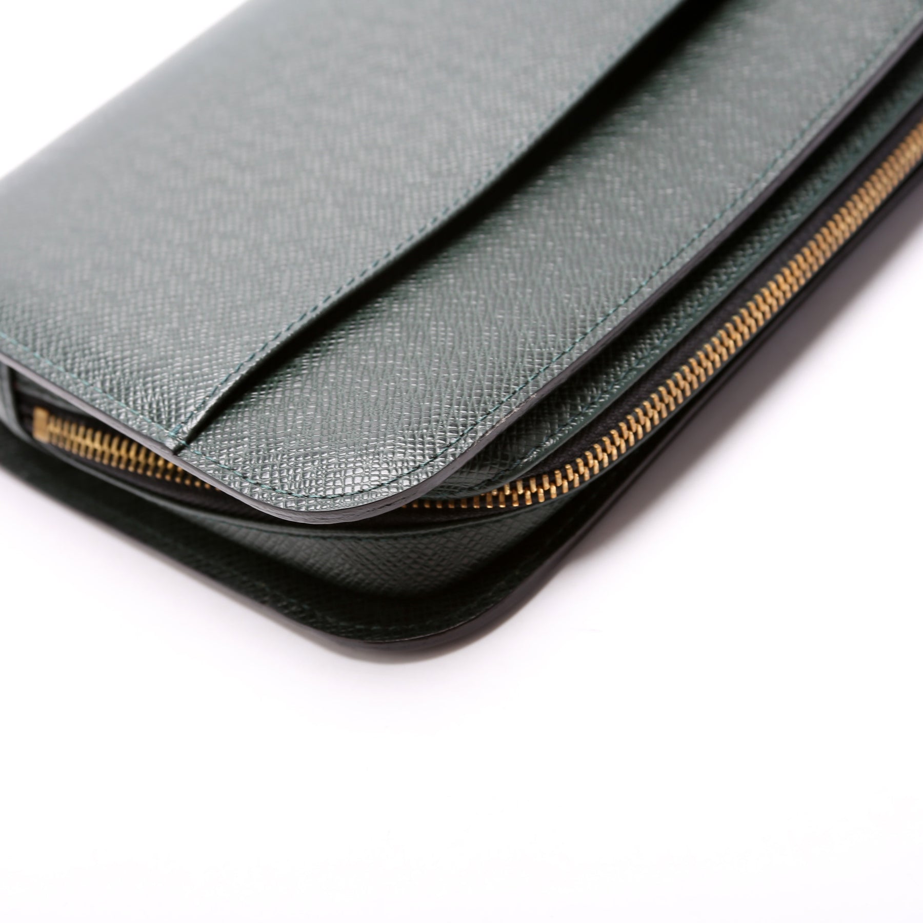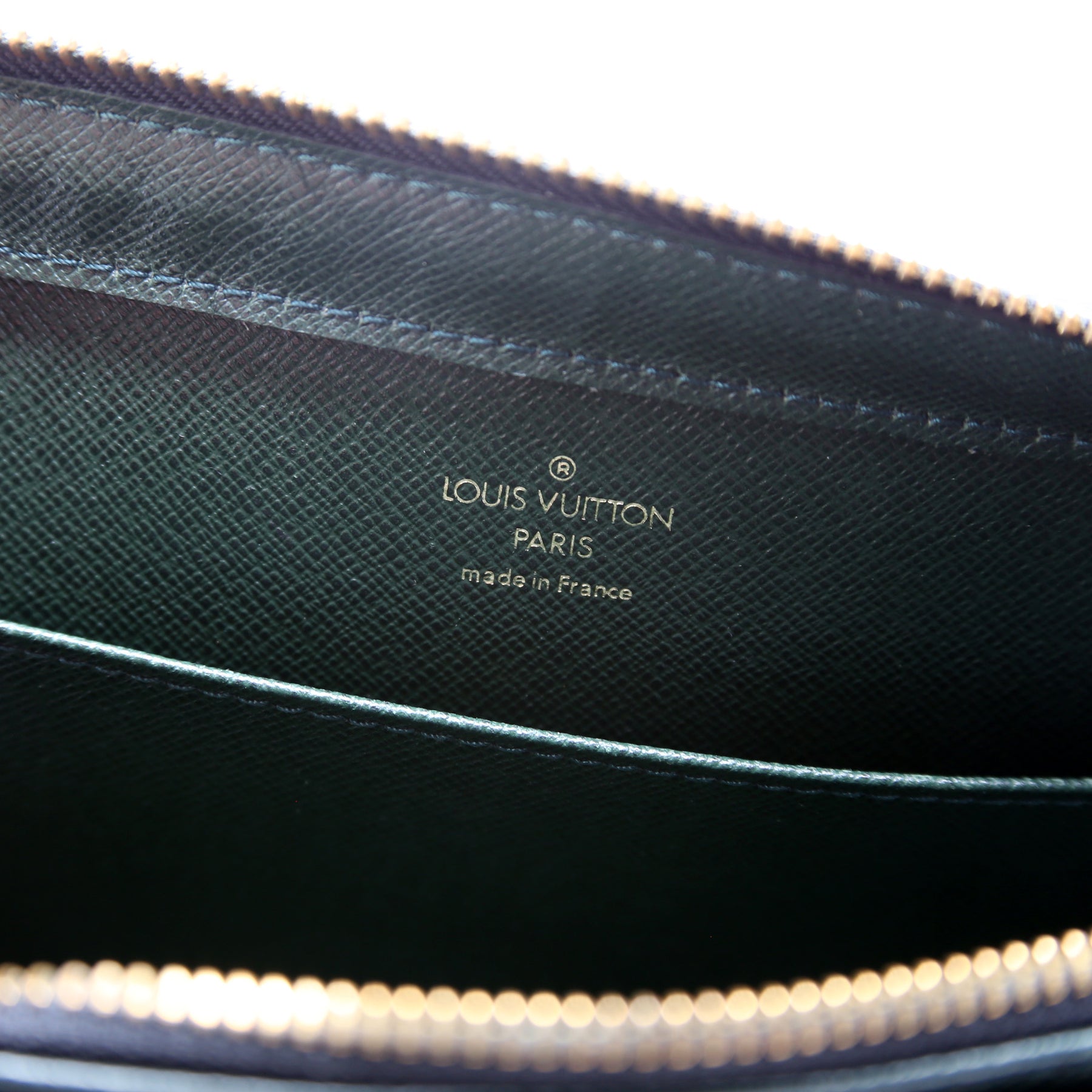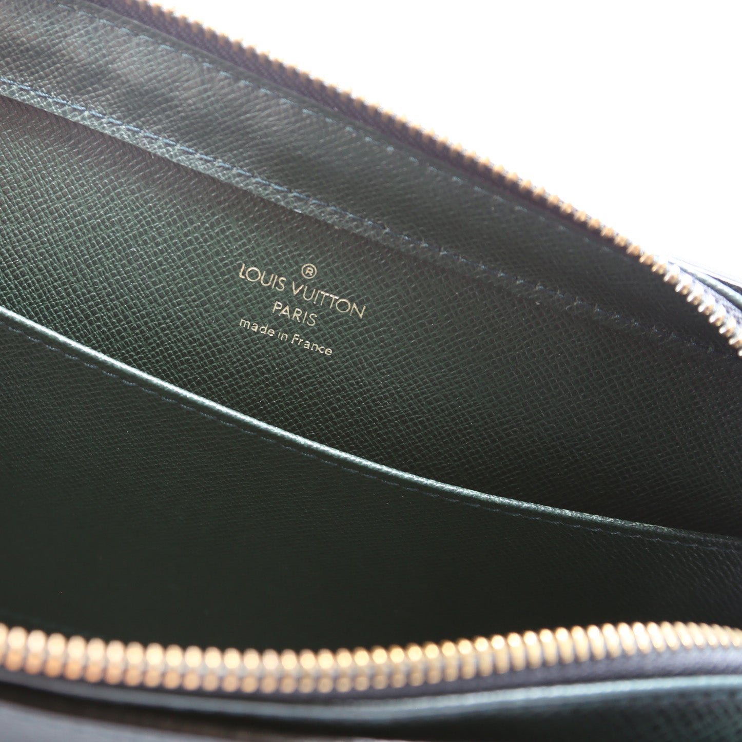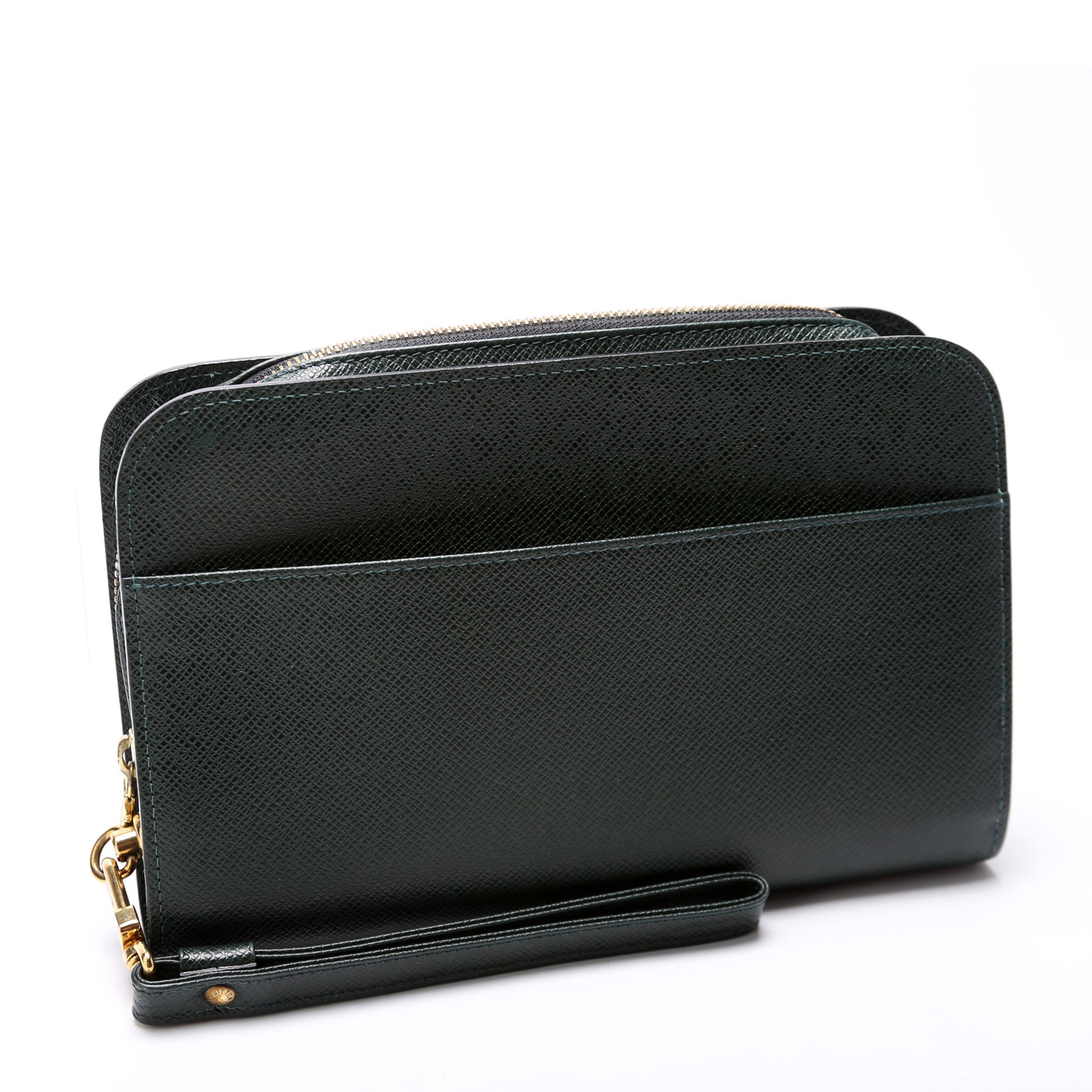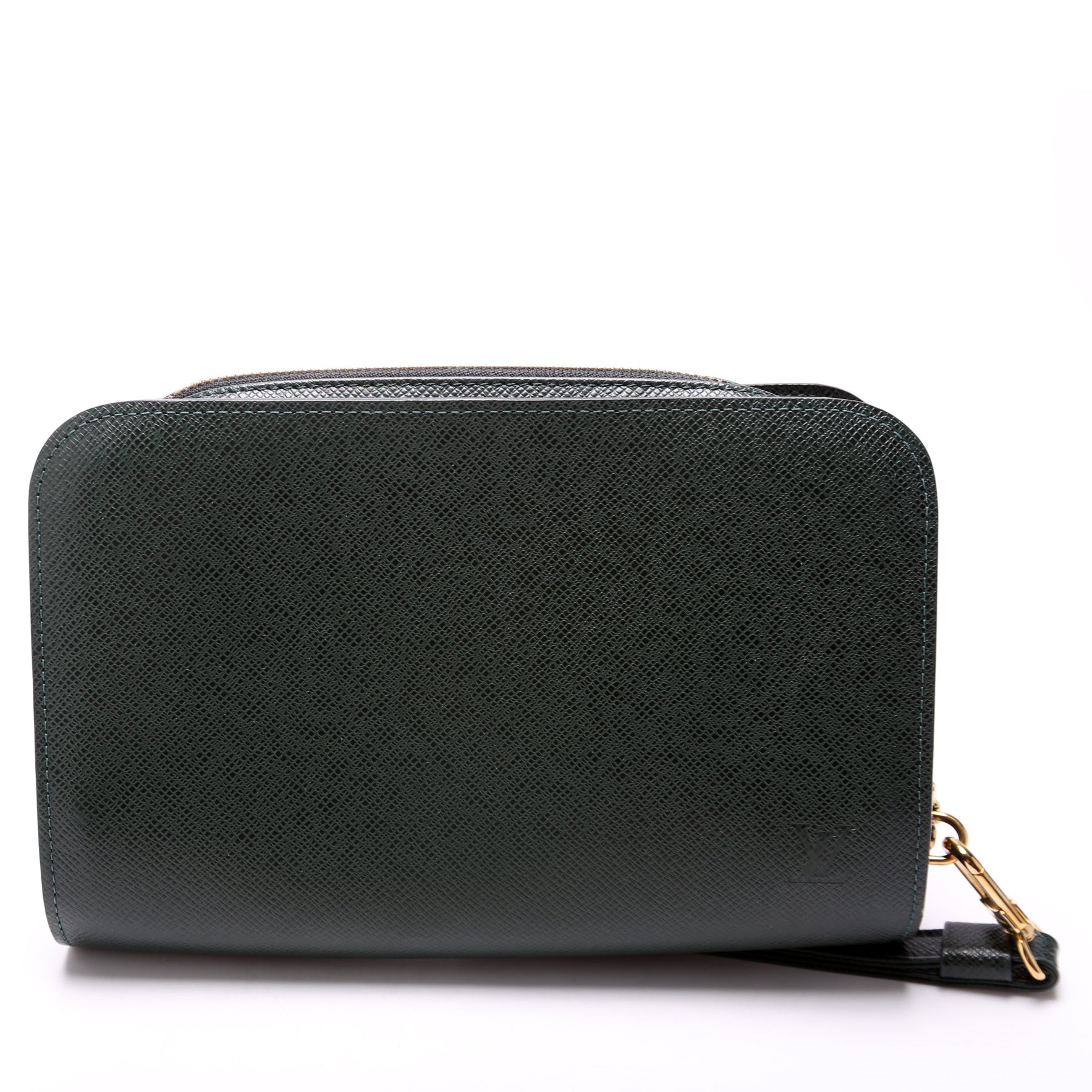 This pre-owned Louis Vuitton Pochette Baikal is guaranteed 100% authentic. The exterior is in the classic Louis Vuitton Taiga leather.
