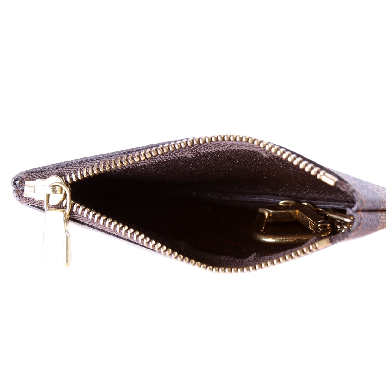 This pre-owned Louis Vuitton Pochette Cles is guaranteed 100% authentic. The exterior is in the classic Louis Vuitton Damier Ebene coated canvas.