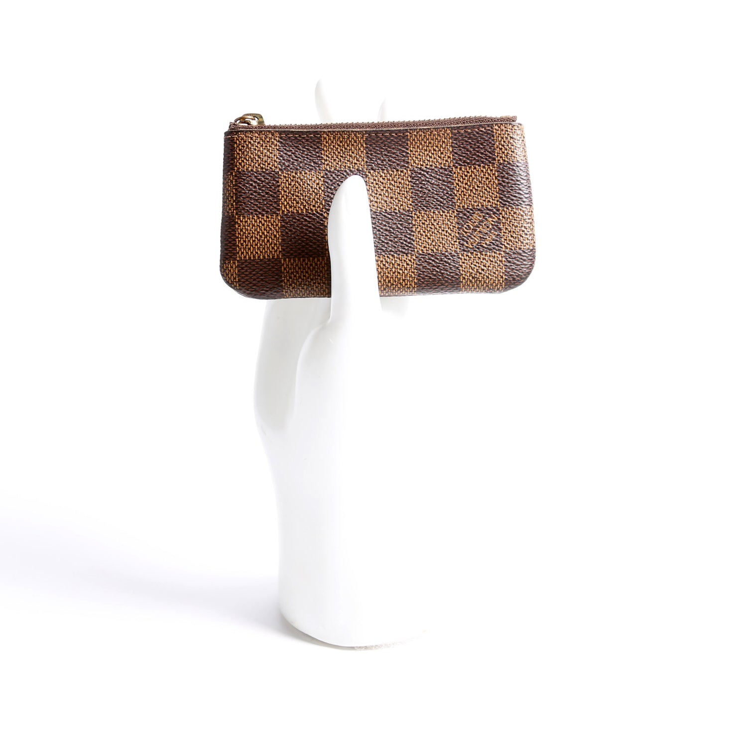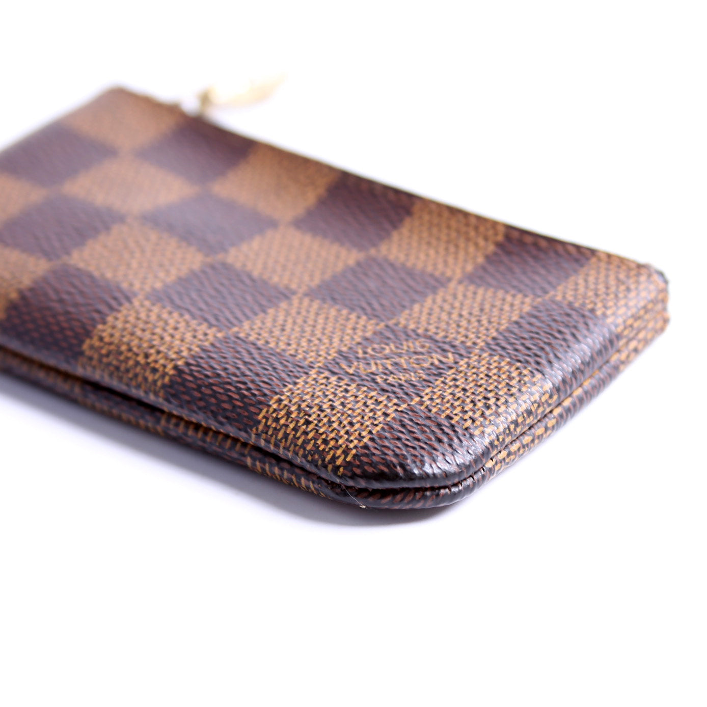 This pre-owned Louis Vuitton Pochette Cles is guaranteed 100% authentic. The exterior is in the classic Louis Vuitton Damier Ebene coated canvas.