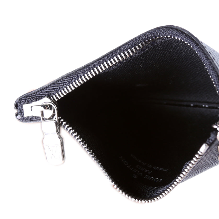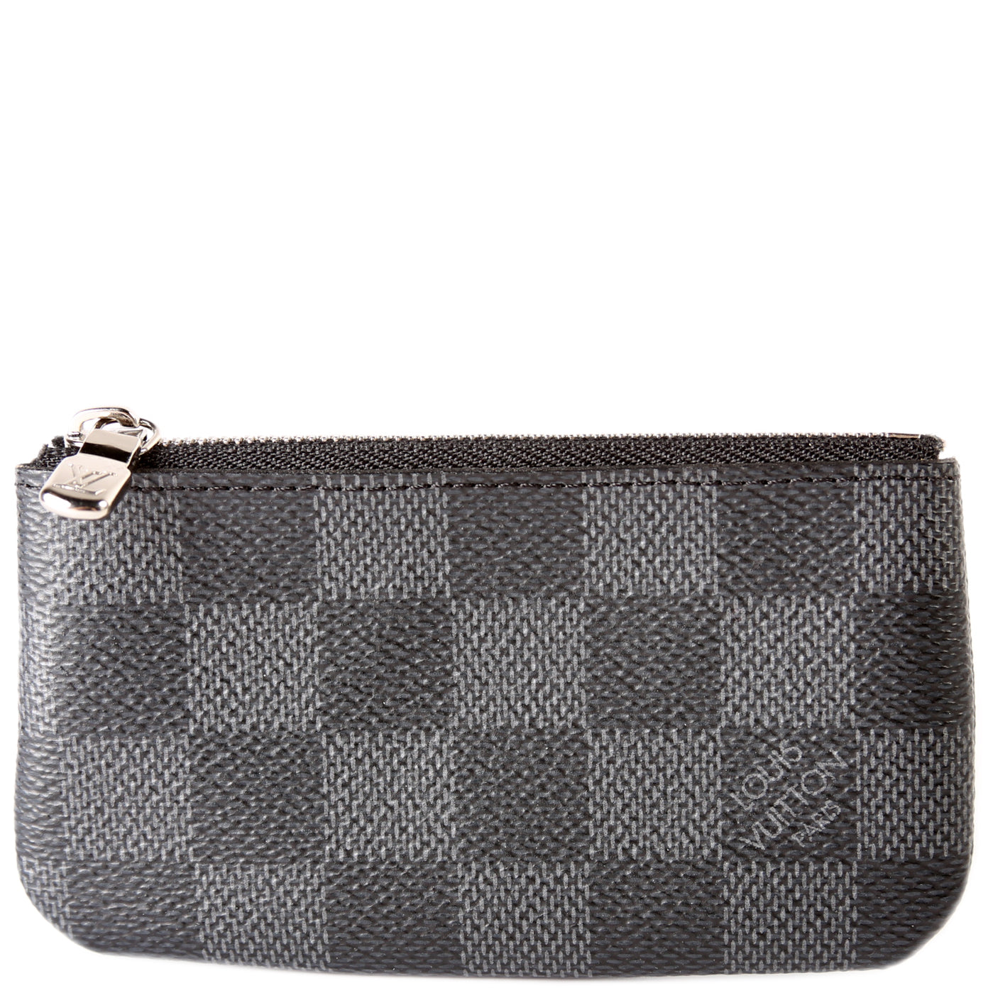 This pre-owned Louis Vuitton Pochette Cles is guaranteed 100% authentic. The exterior is in the classic Louis Vuitton Damier Graphite coated canvas.