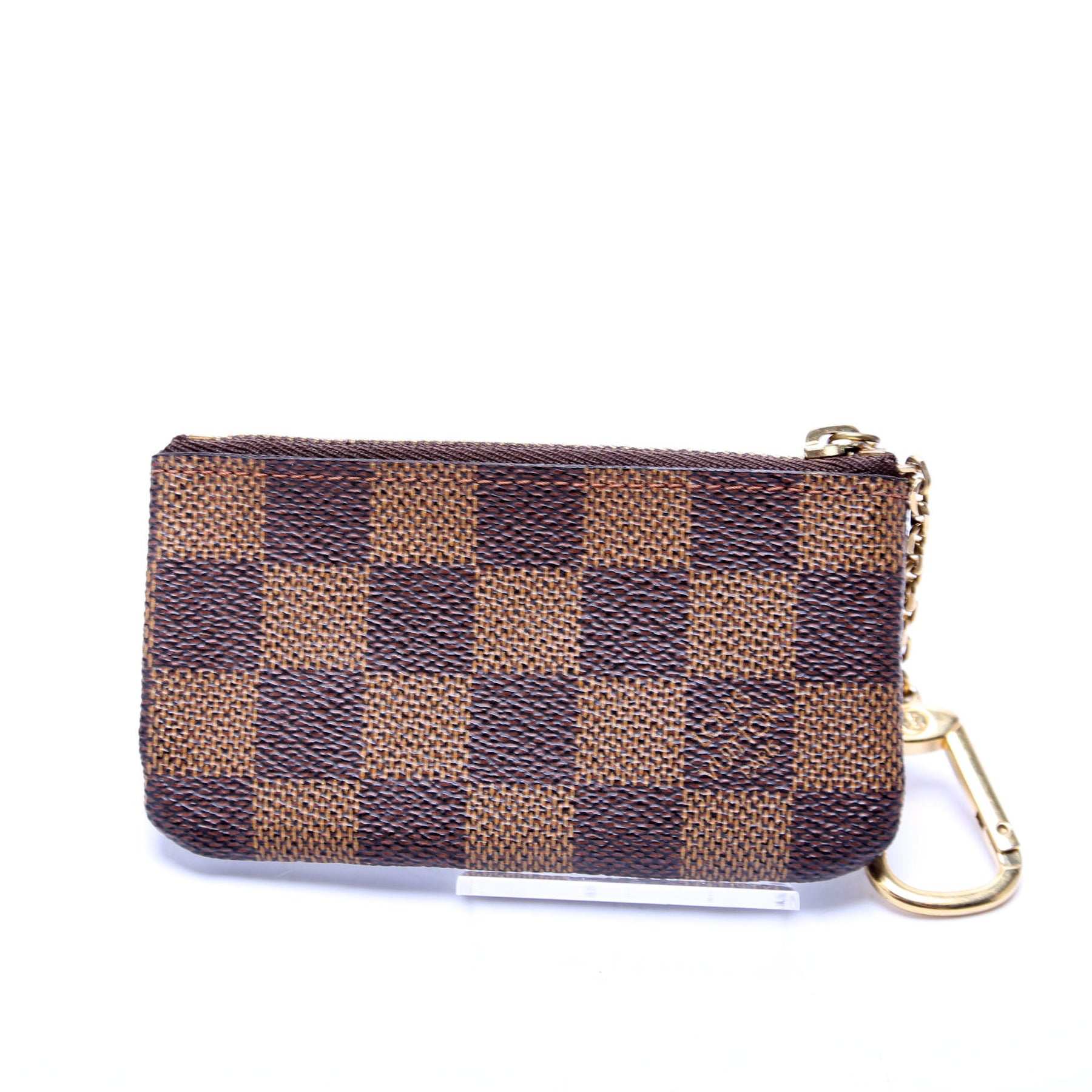 This pre-owned Louis Vuitton Pochette Cles is guaranteed 100% authentic. The exterior is in the classic Louis Vuitton Damier Ebene leather.