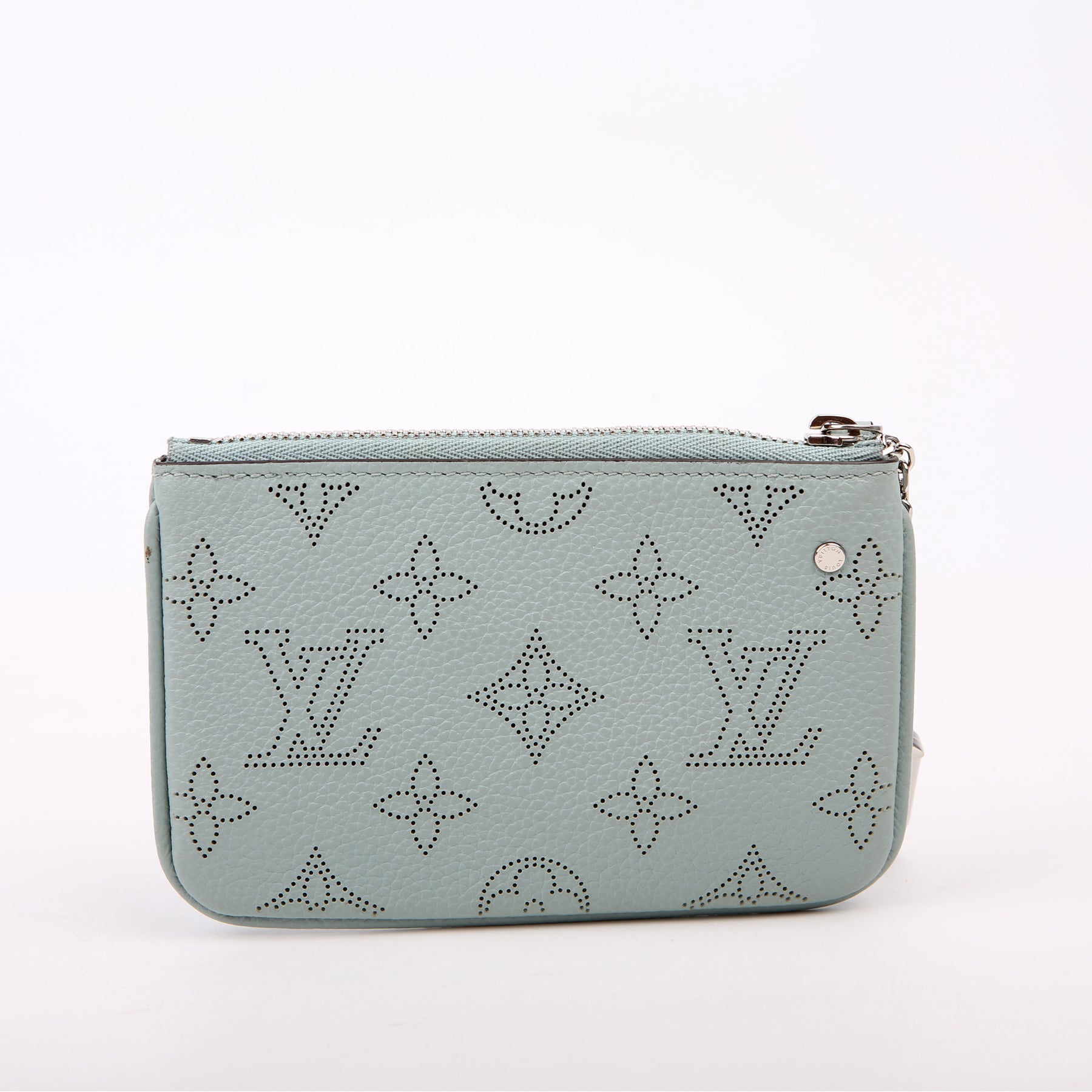 This pre-owned Louis Vuitton Pochette Cles is guaranteed 100% authentic. The exterior is in the classic Louis Vuitton Mahina leather.